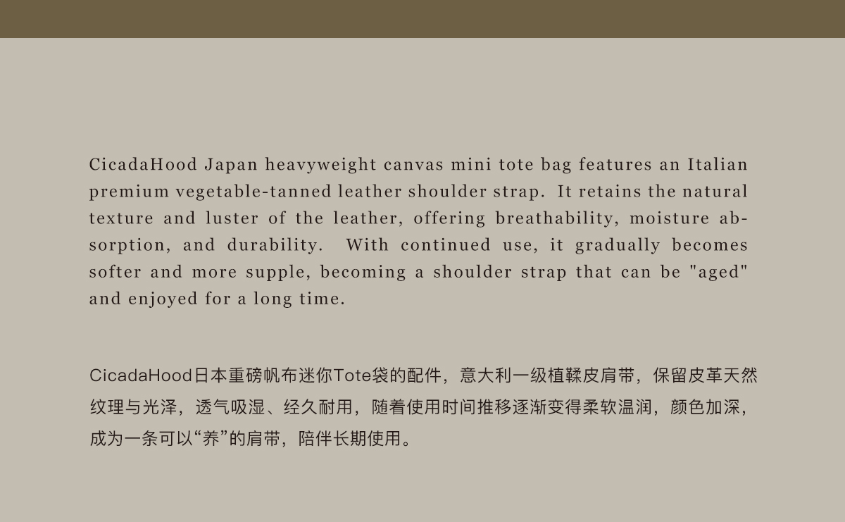 意大利植鞣皮肩带(Cicadahood 日本重磅帆布迷你托特袋配件)