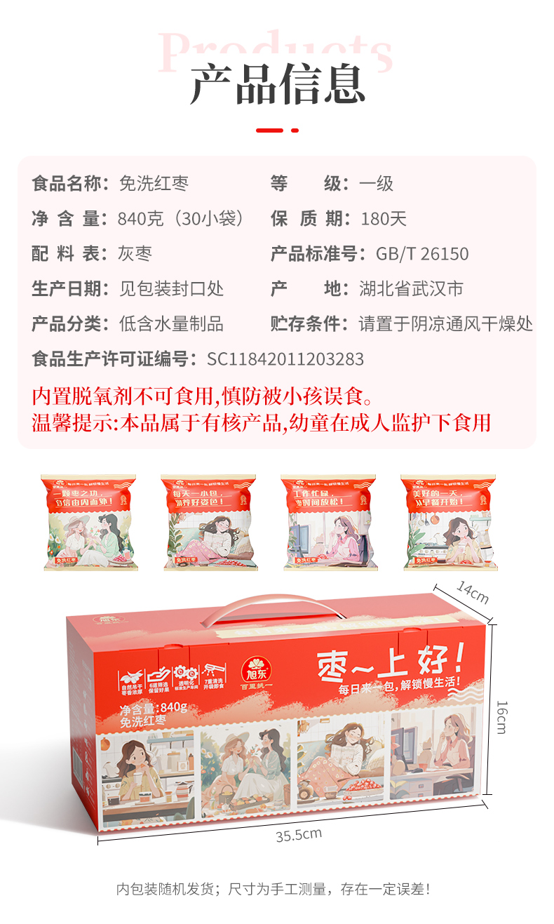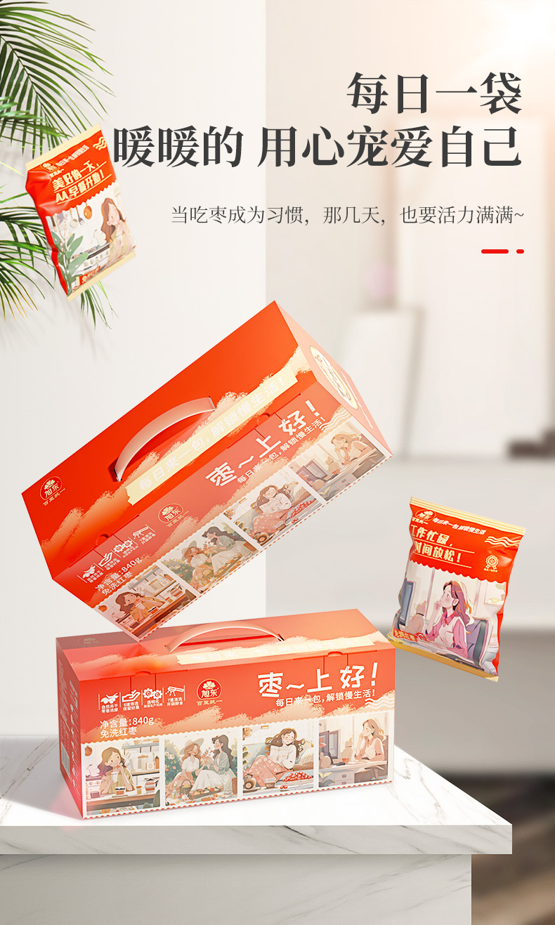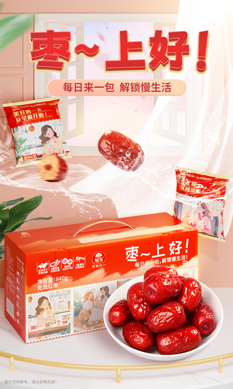 旭东新疆免洗红枣新疆特产若羌灰枣红枣干货枣零食840g礼盒装