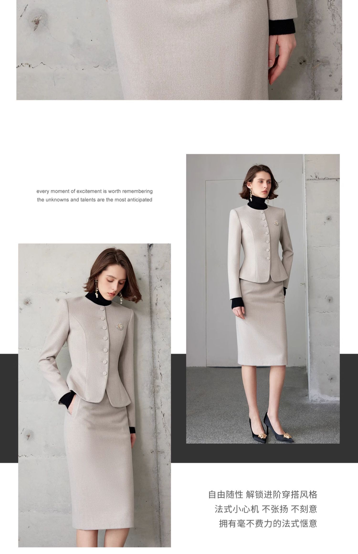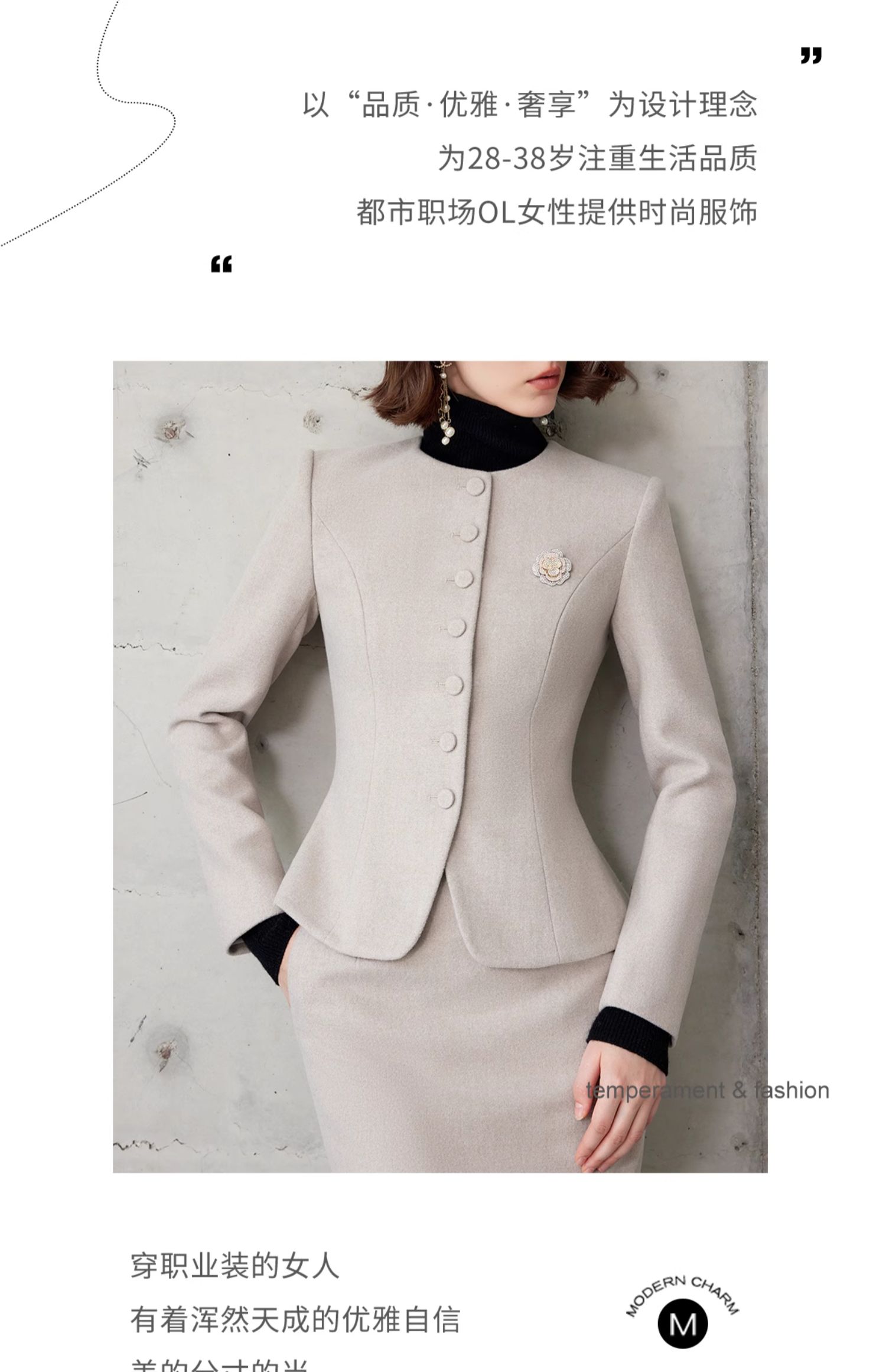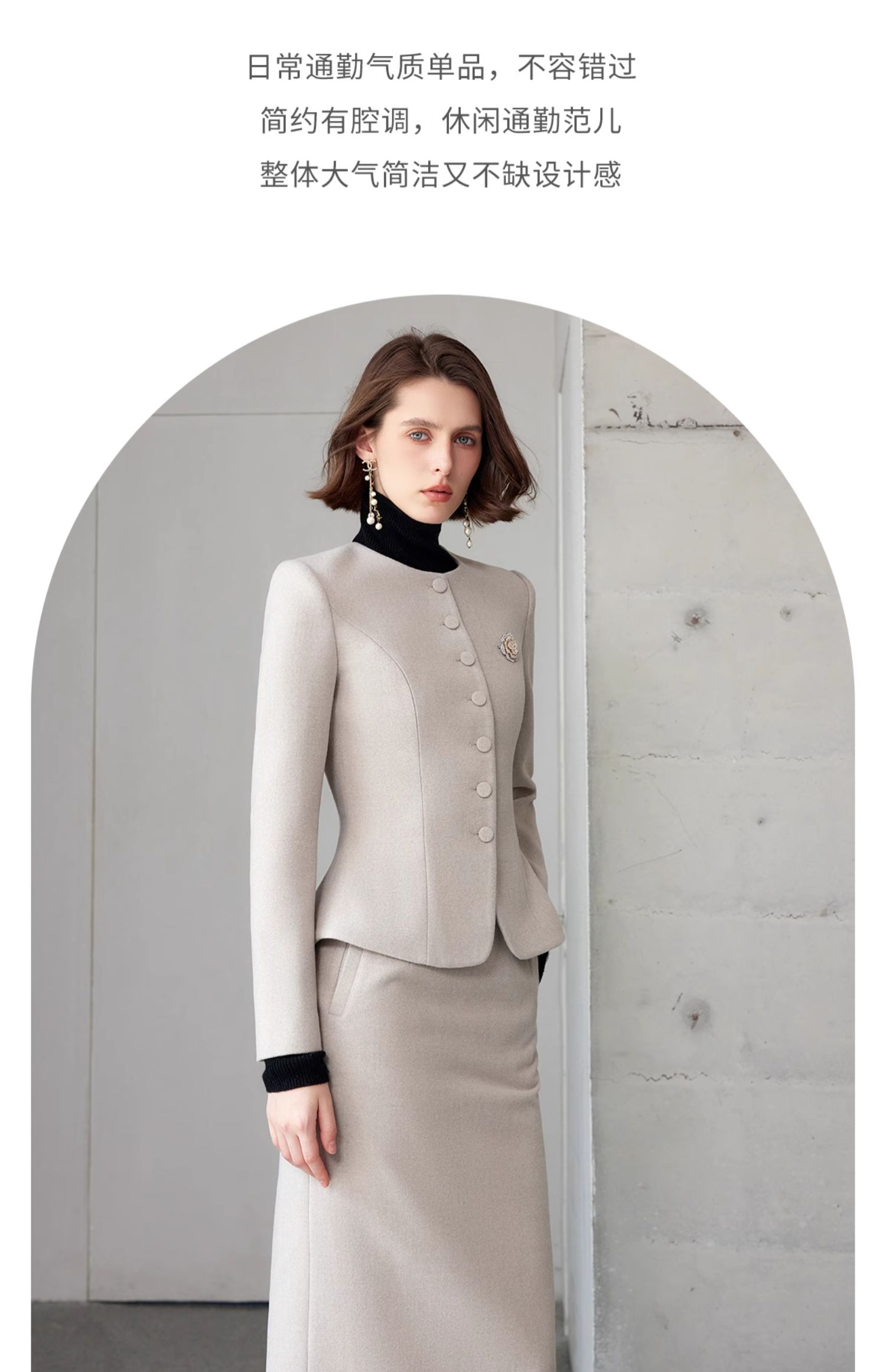 AD法式高级感套装女端庄大气两件套2024春秋燕麦色正式场合短外套