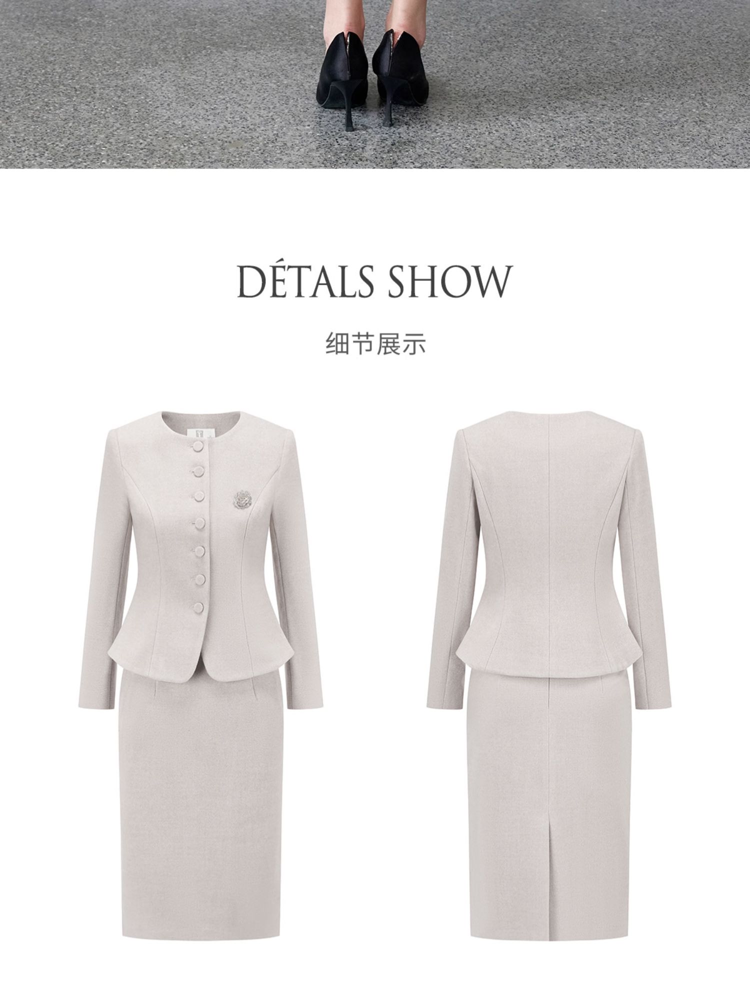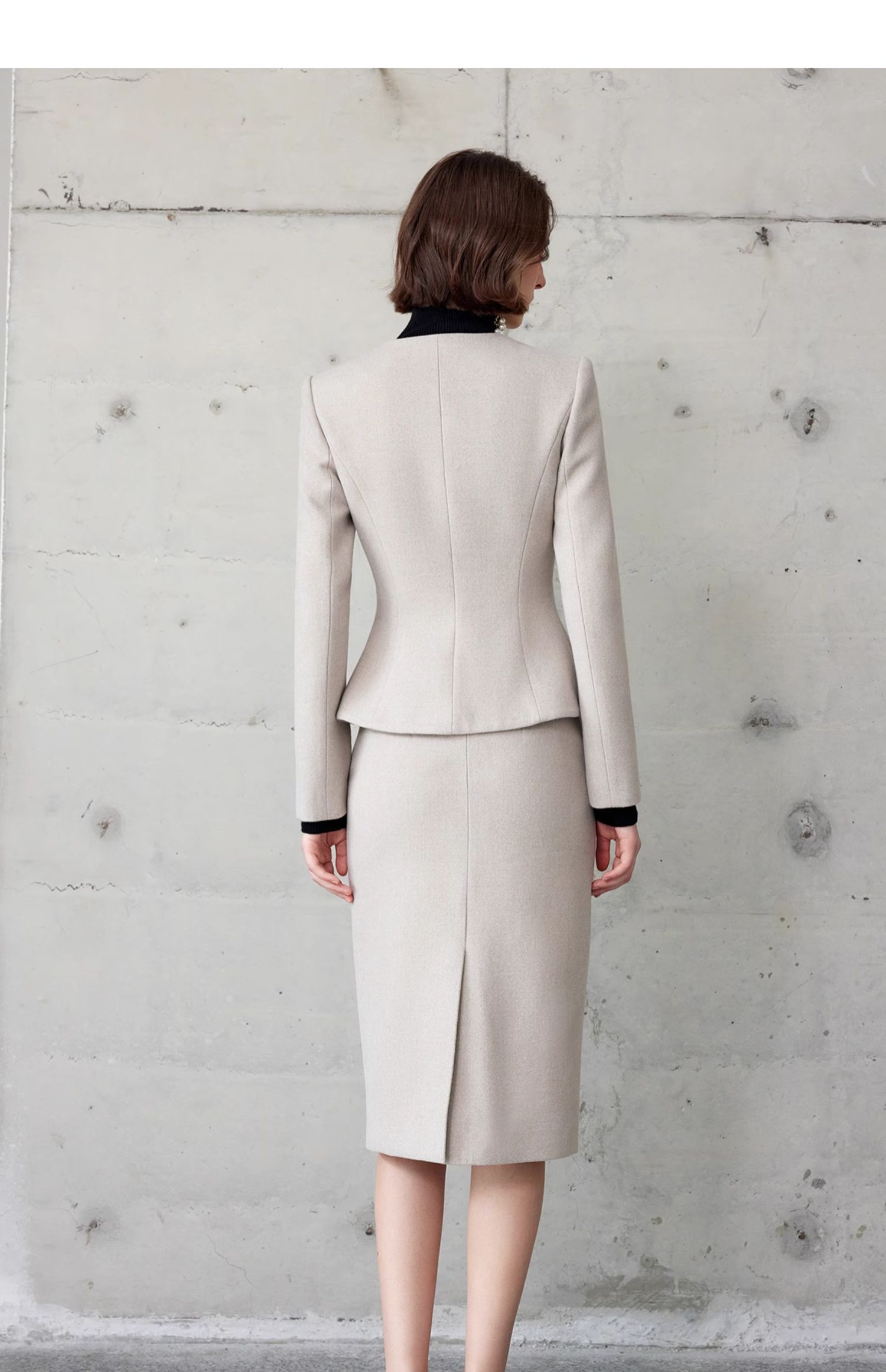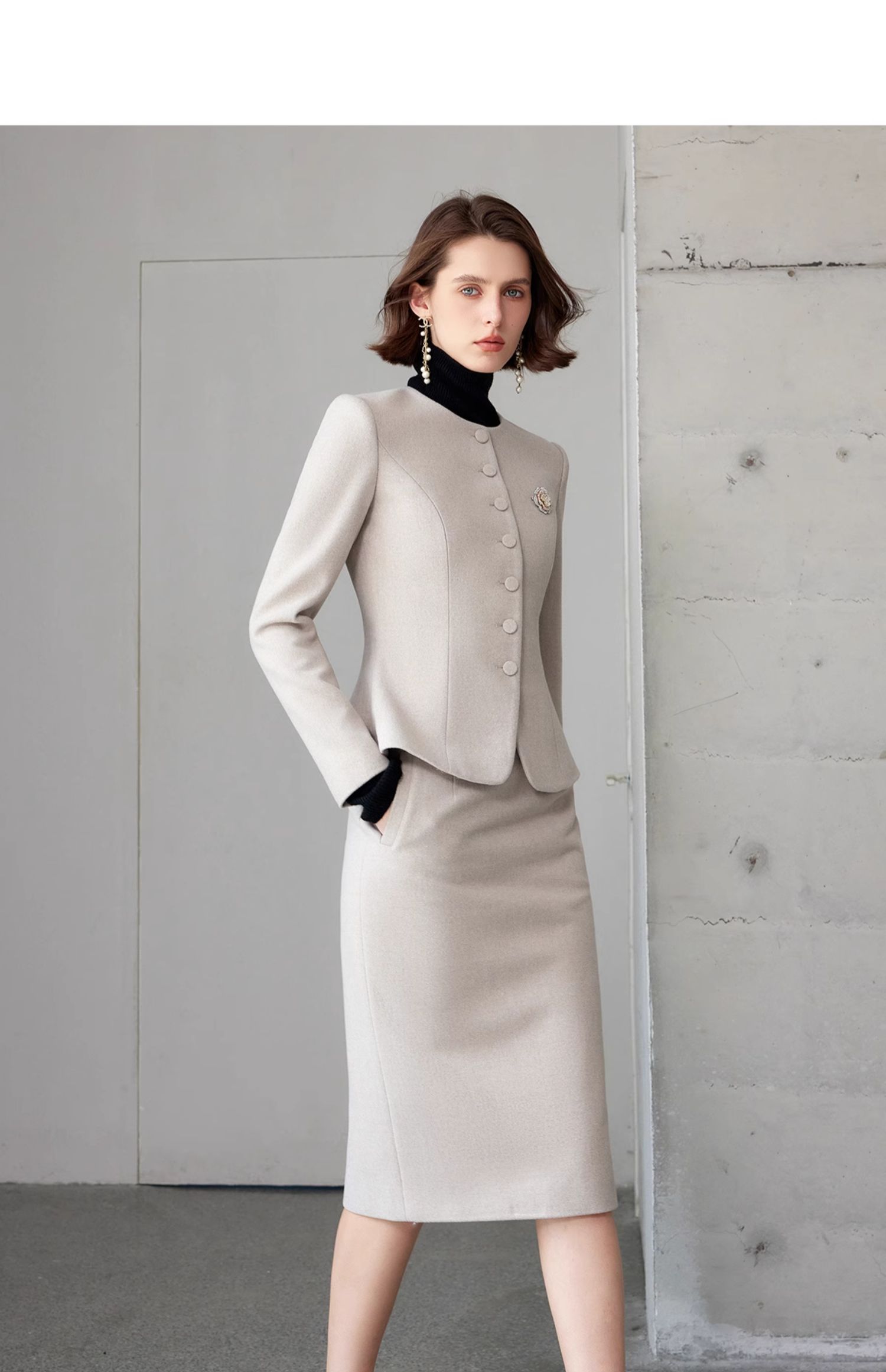 AD法式高级感套装女端庄大气两件套2024春秋燕麦色正式场合短外套