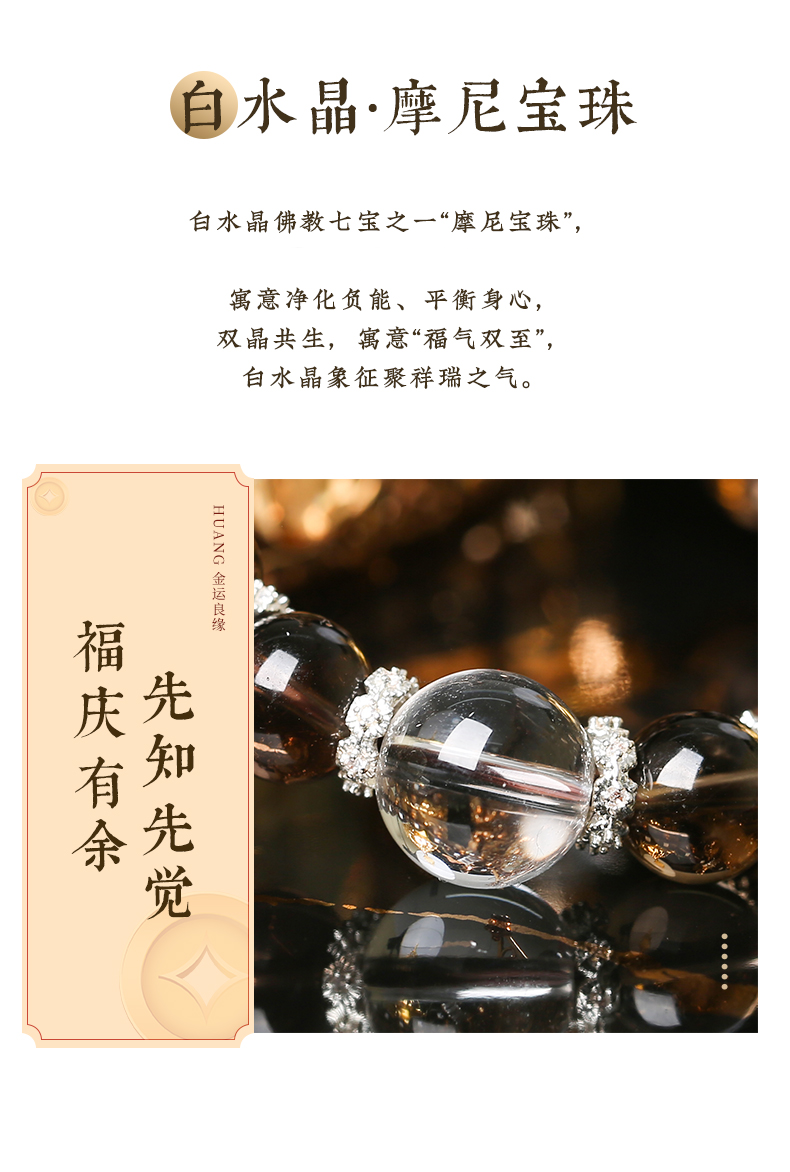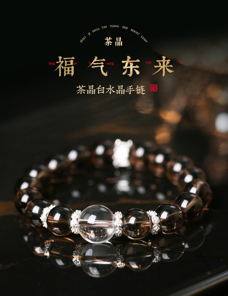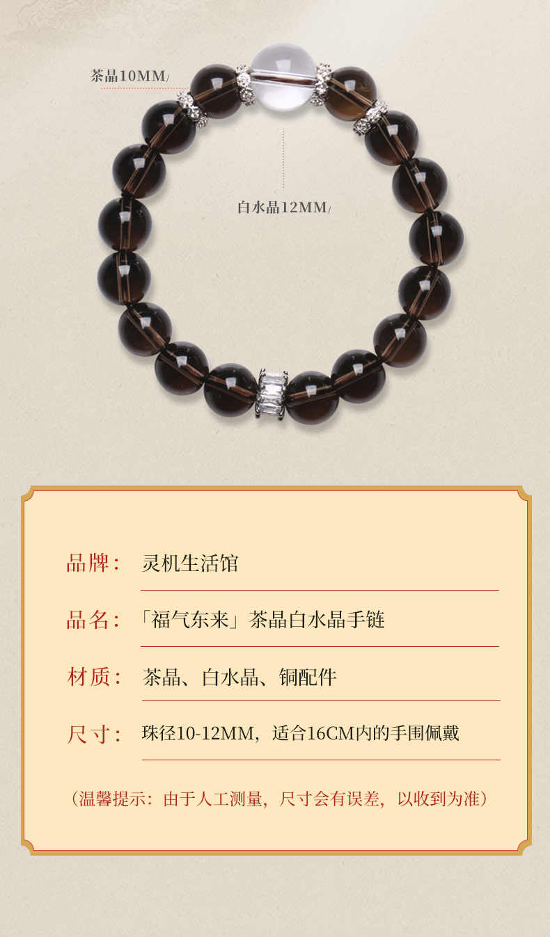 【新品】灵机生活馆茶晶白水晶手链