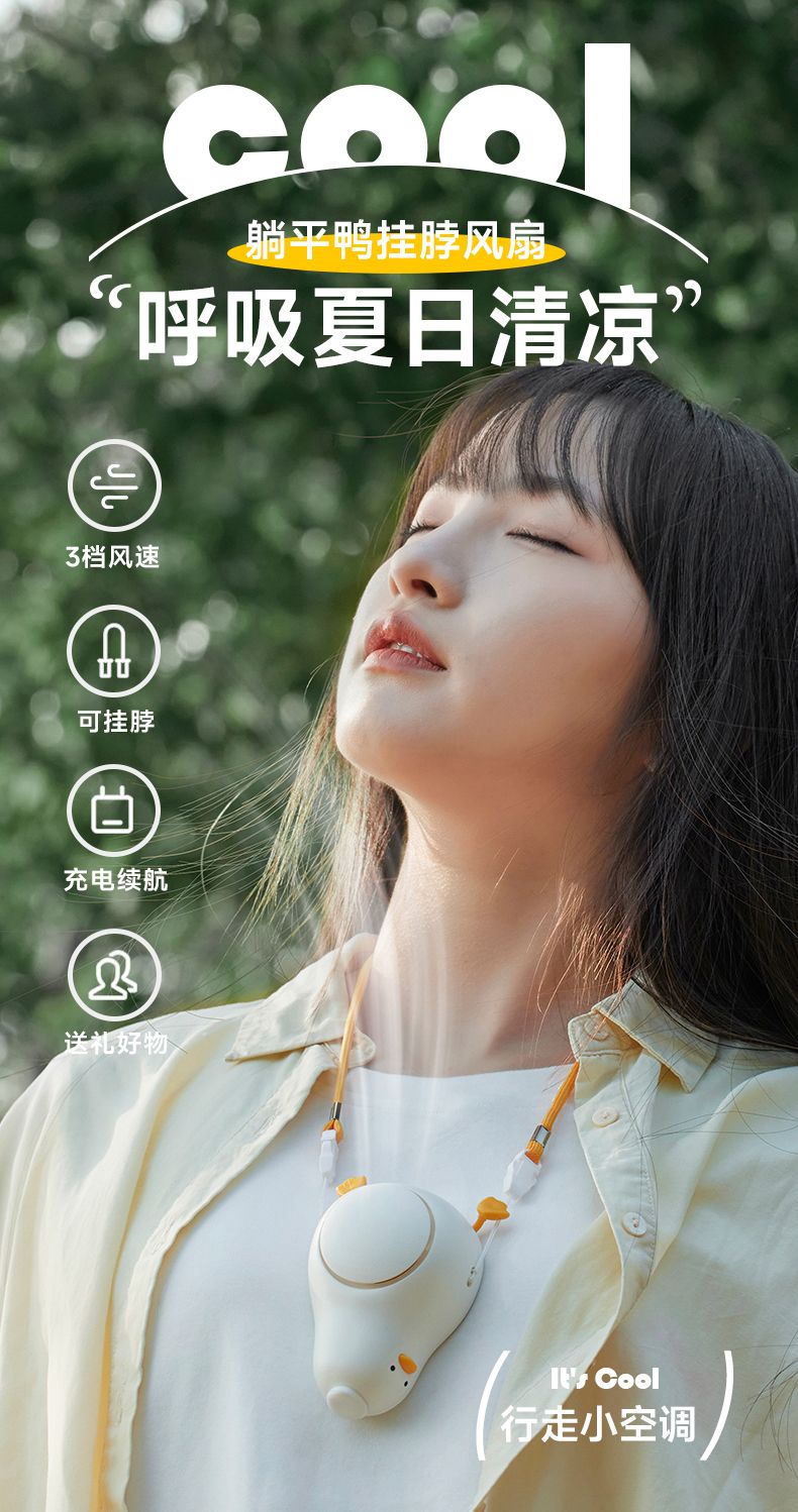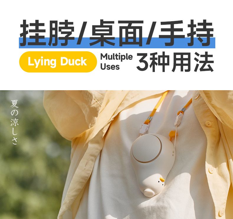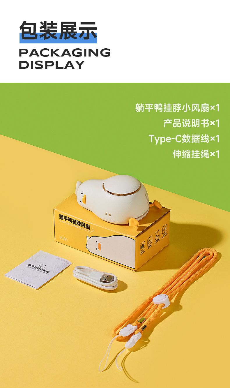 创意躺平鸭挂脖小风扇便携式usb充电小型随身 迷你手持风扇