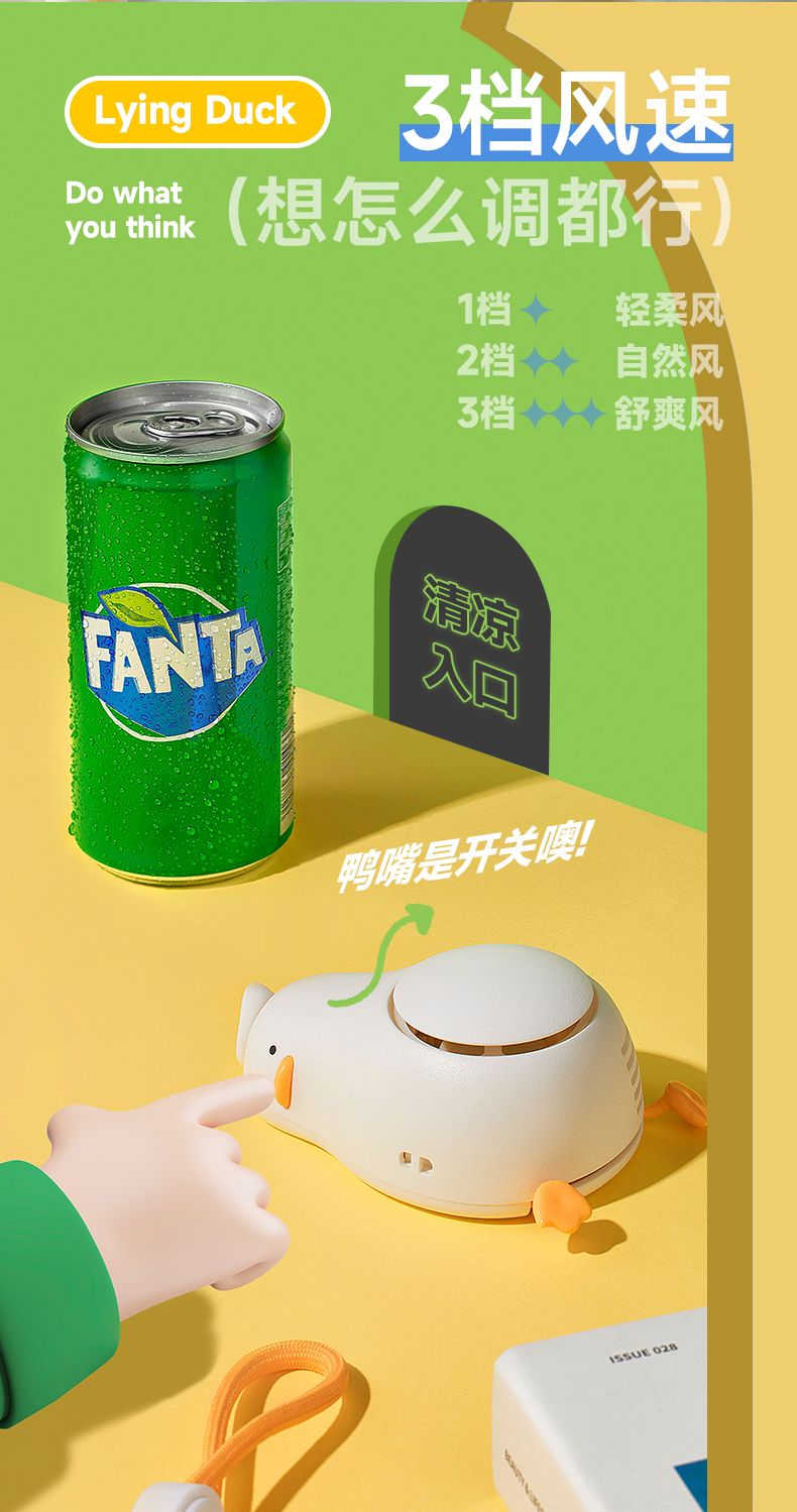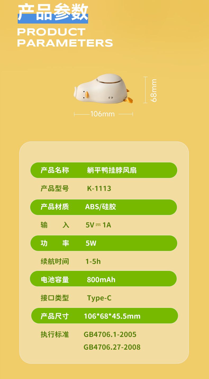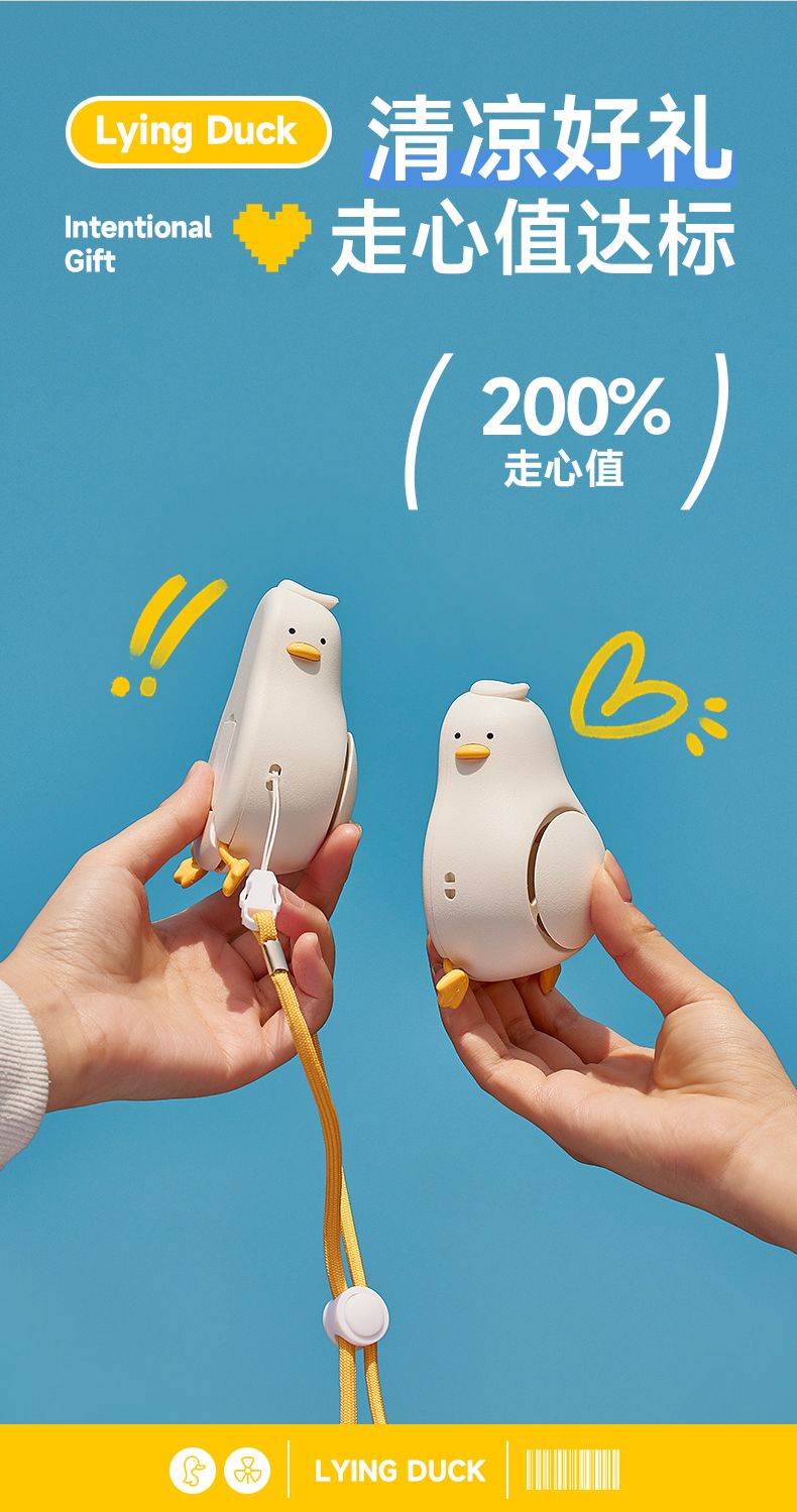 创意躺平鸭挂脖小风扇便携式usb充电小型随身 迷你手持风扇