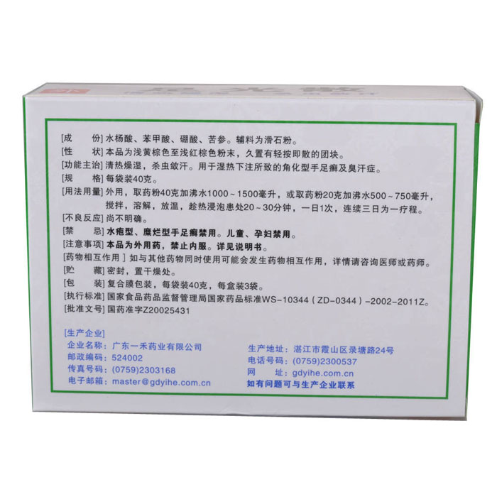 【成份】水杨酸、苯甲酸、硼酸、苦参。辅料:滑石粉。