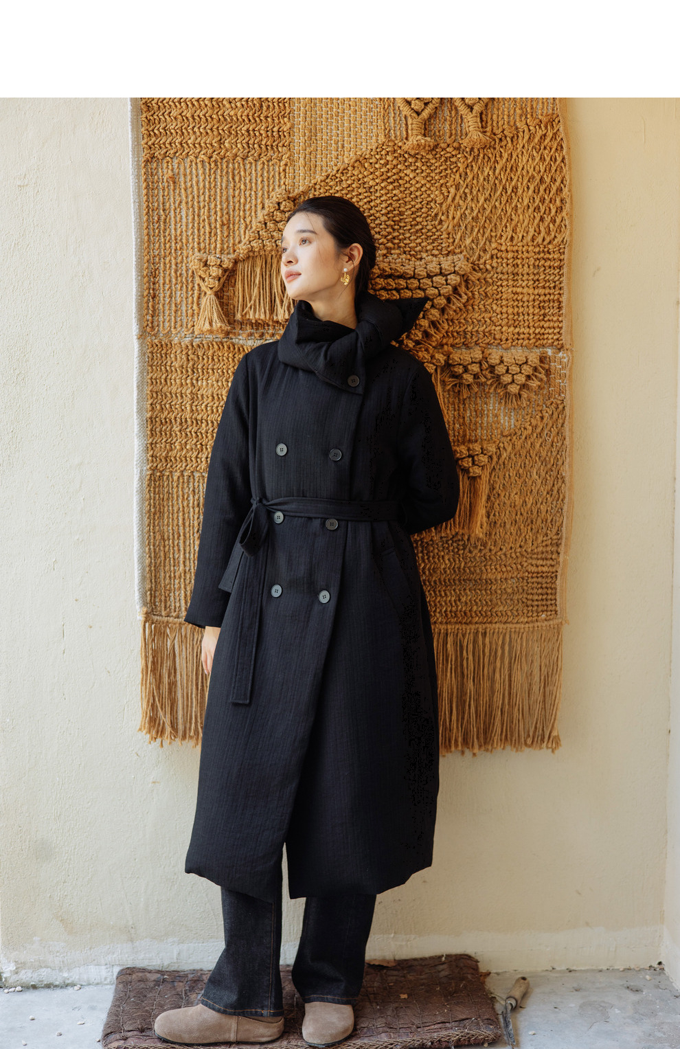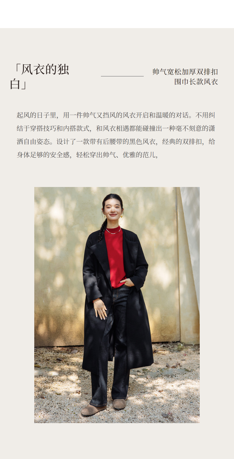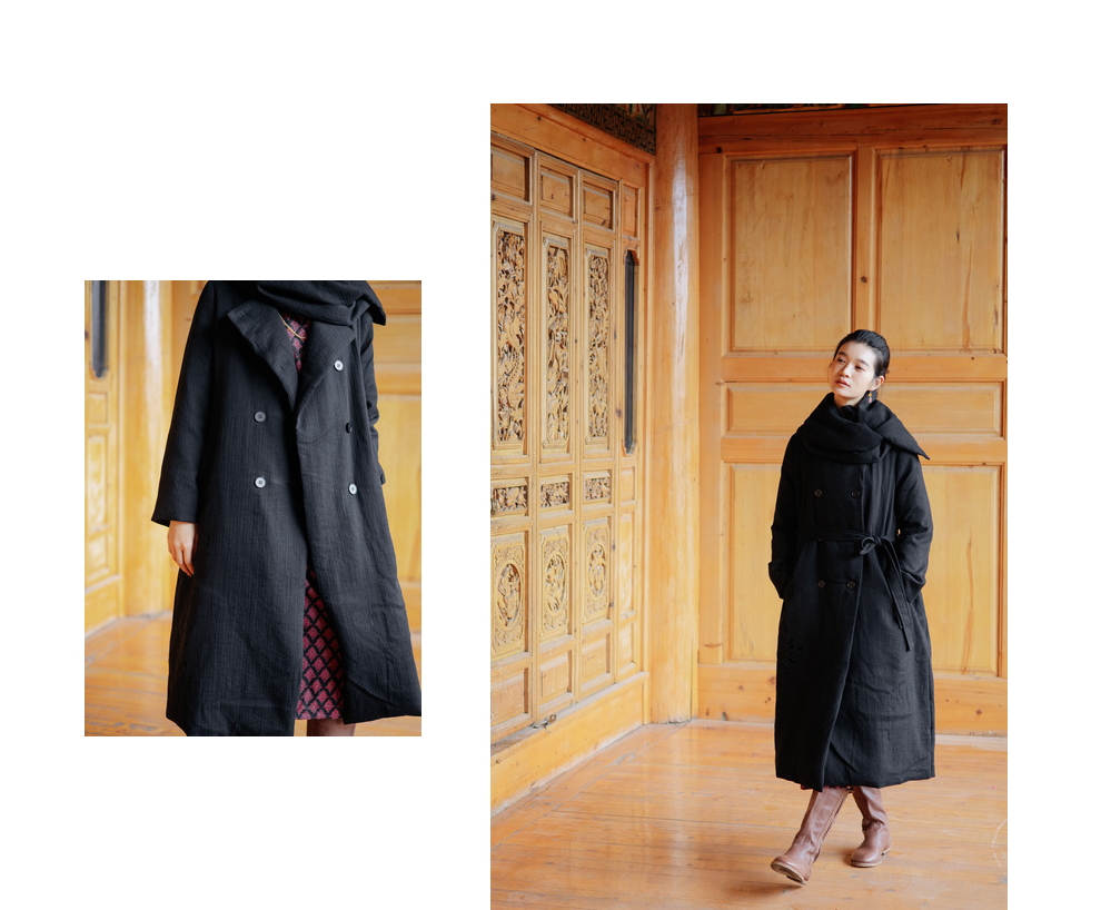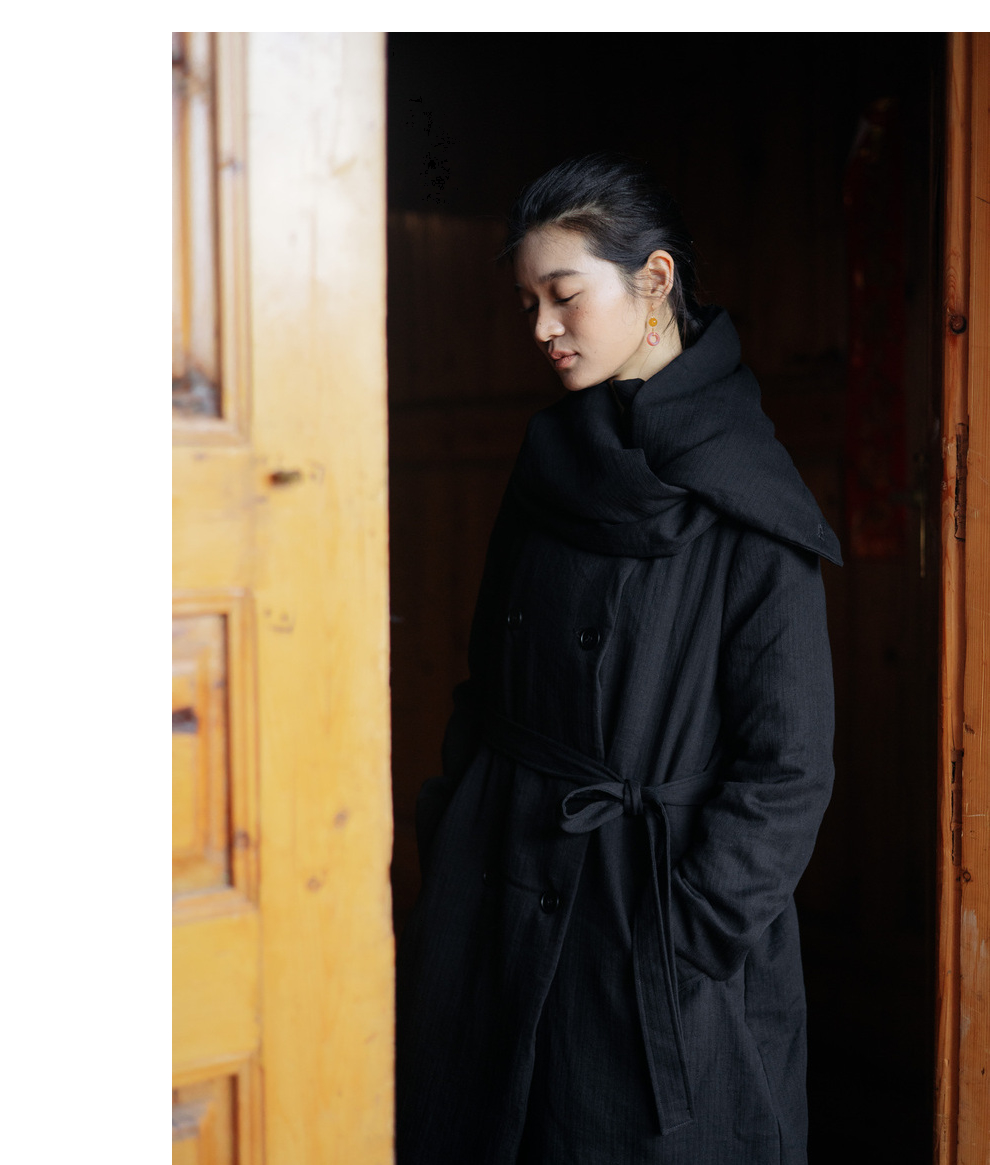 绽放546朵/冬季加厚帅气廓形搭配*双排扣围巾白鹅绒长款风衣