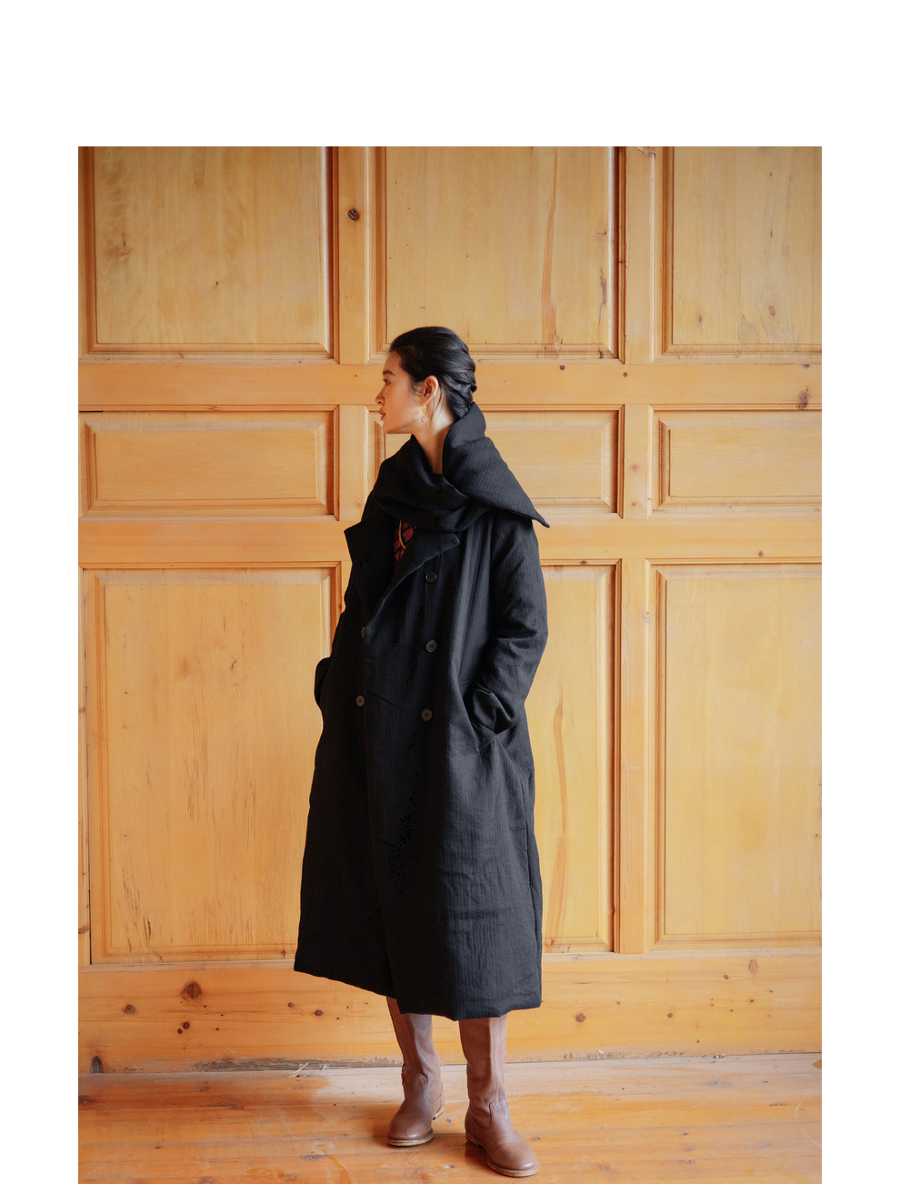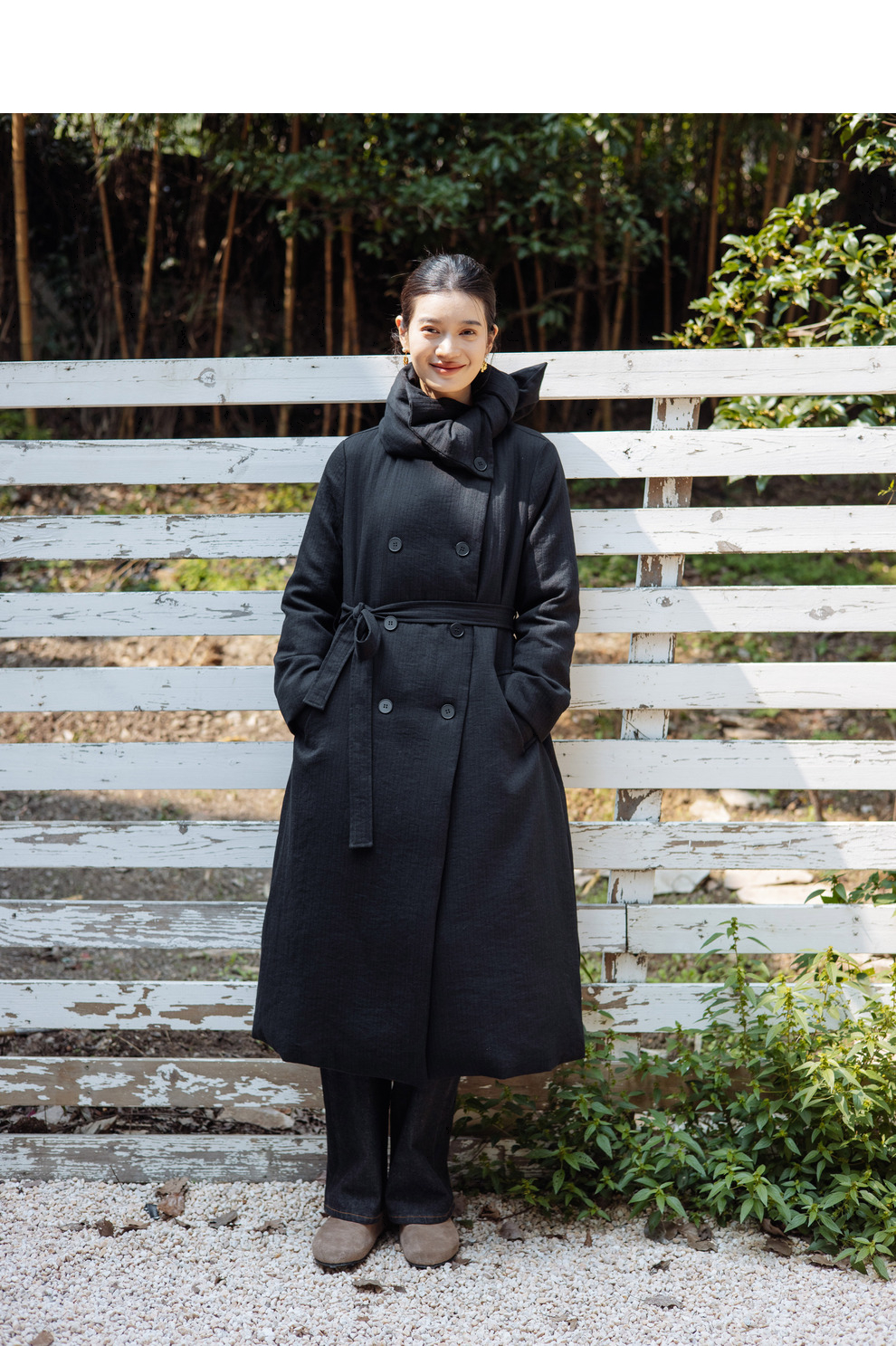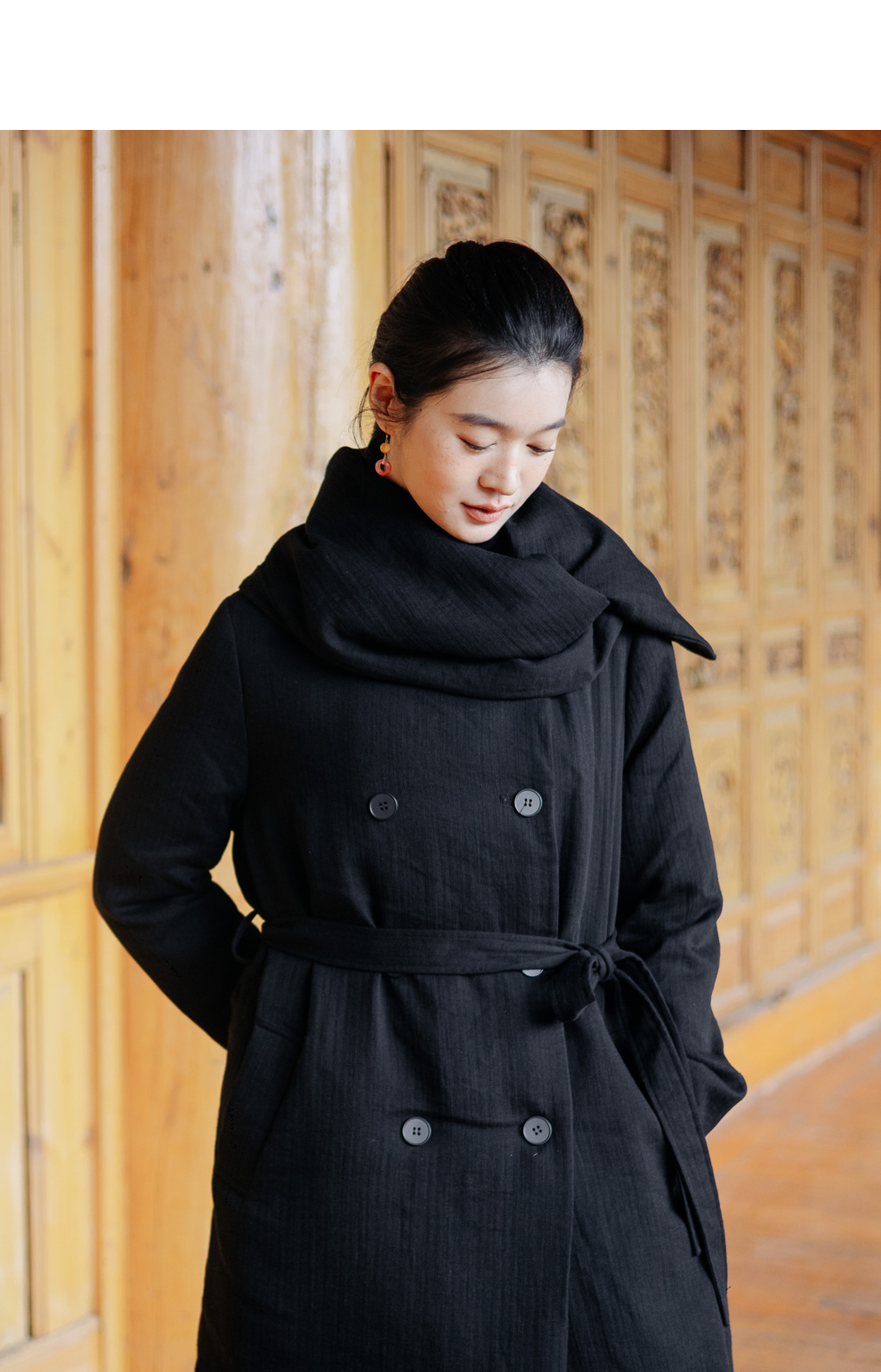 绽放546朵/冬季加厚帅气廓形搭配*双排扣围巾白鹅绒长款风衣