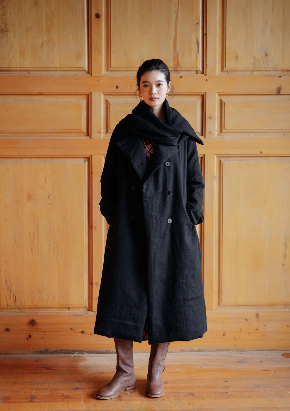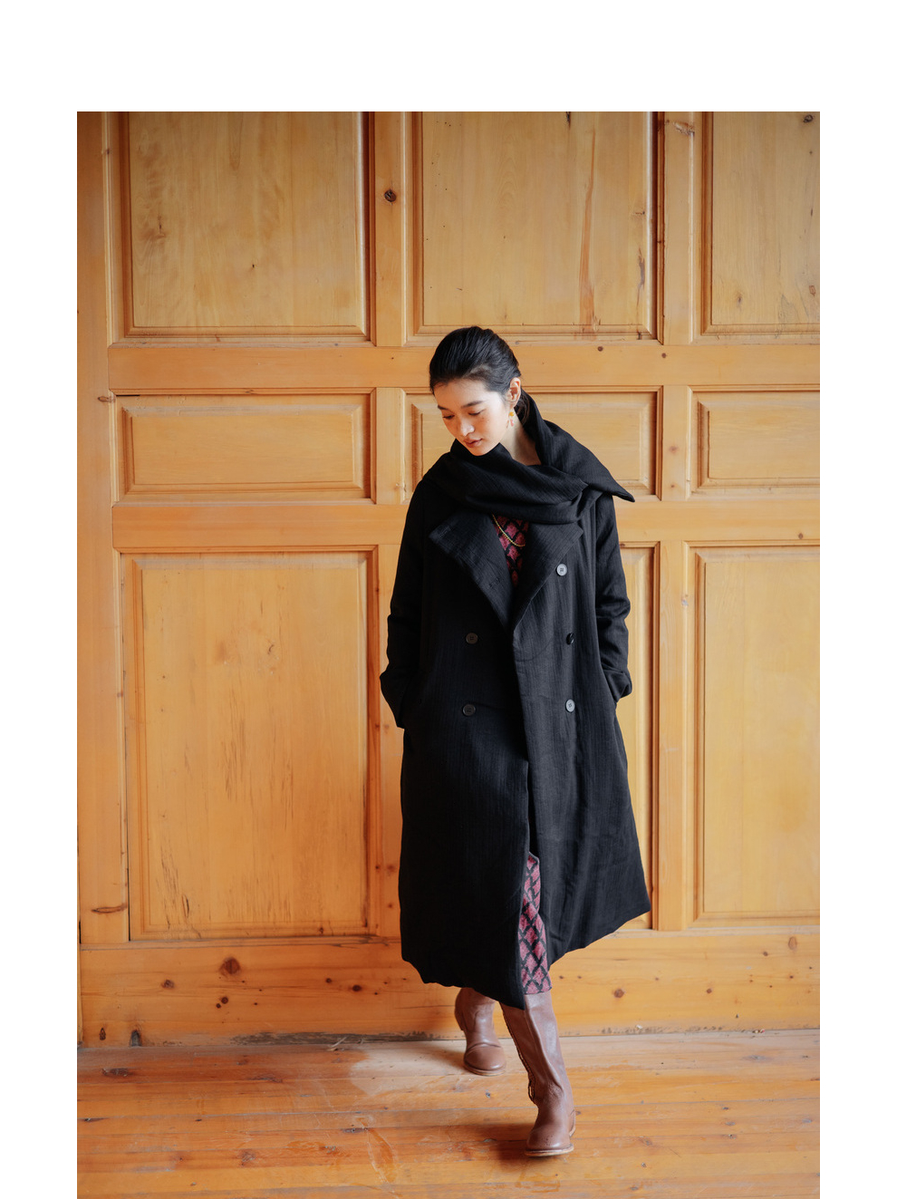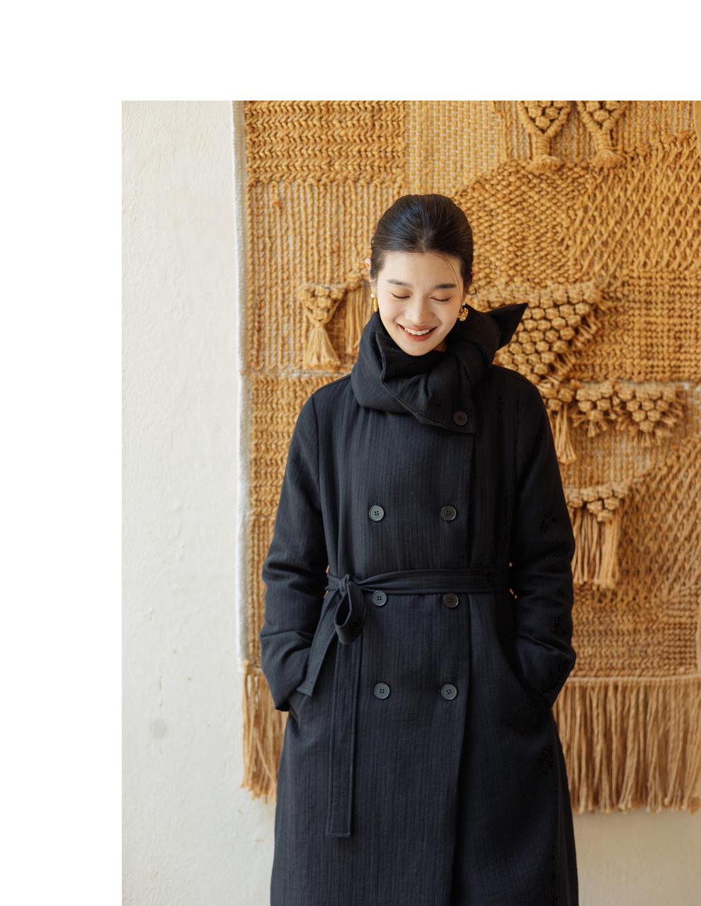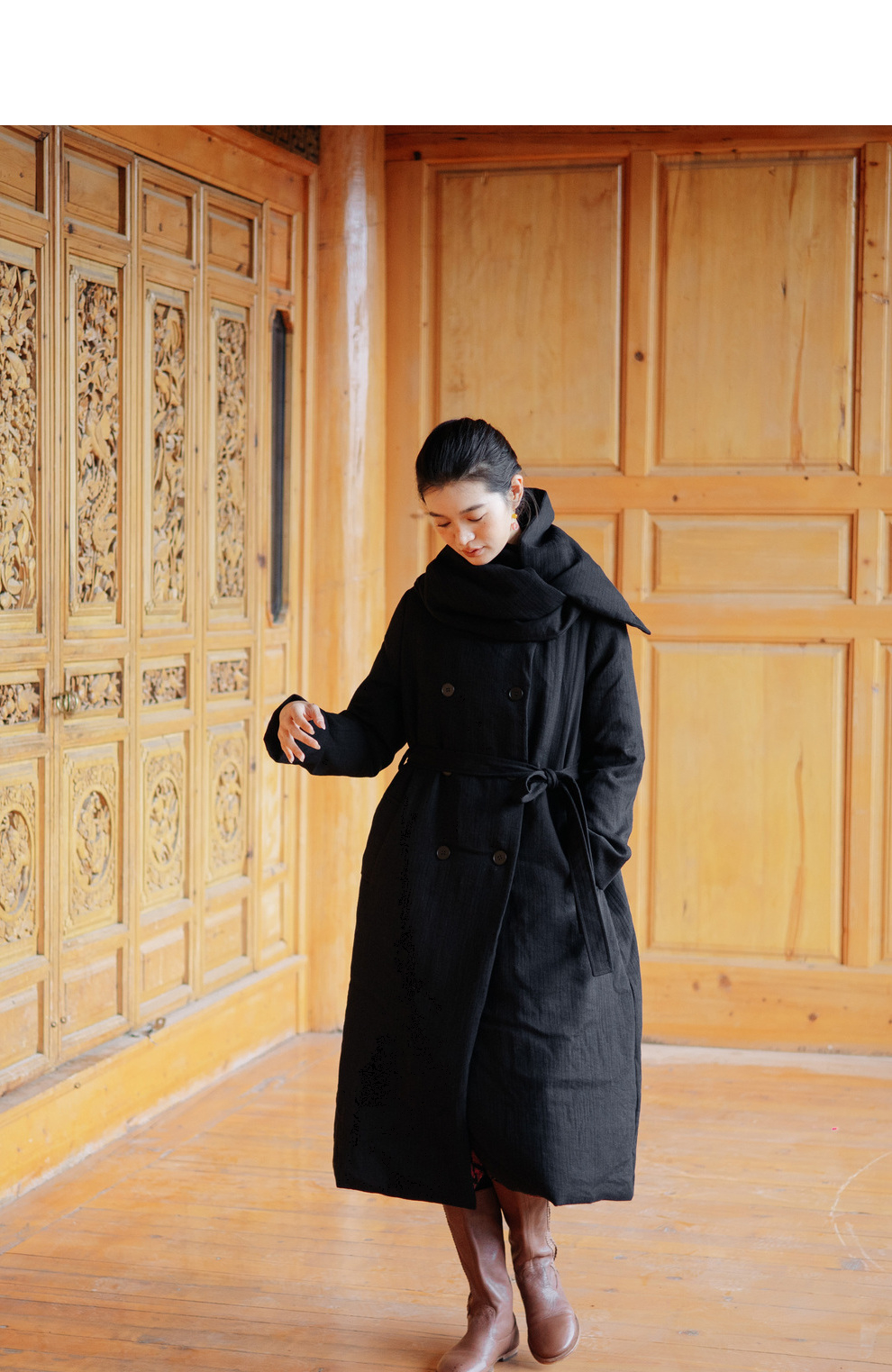 绽放546朵/冬季加厚帅气廓形搭配*双排扣围巾白鹅绒长款风衣