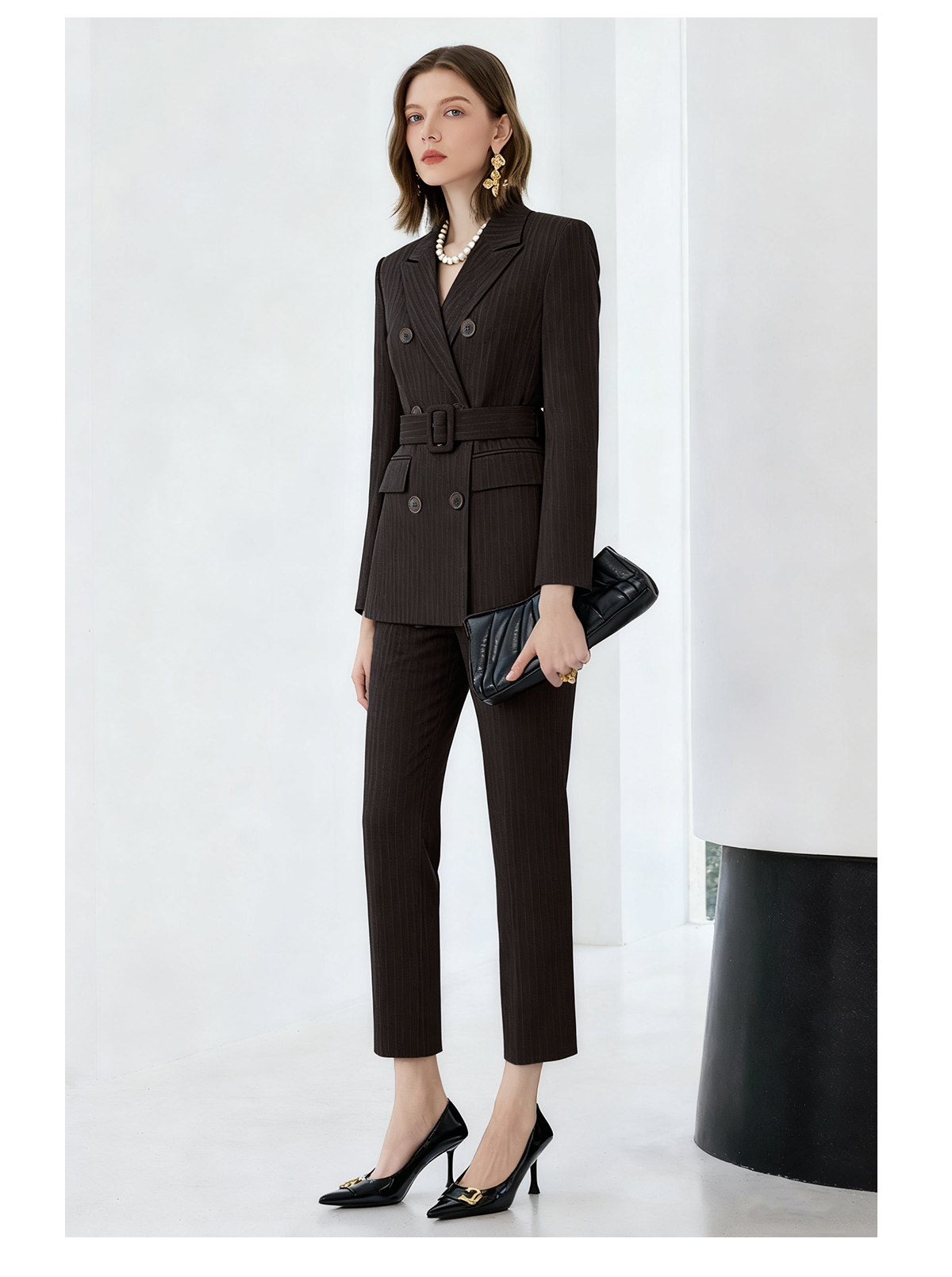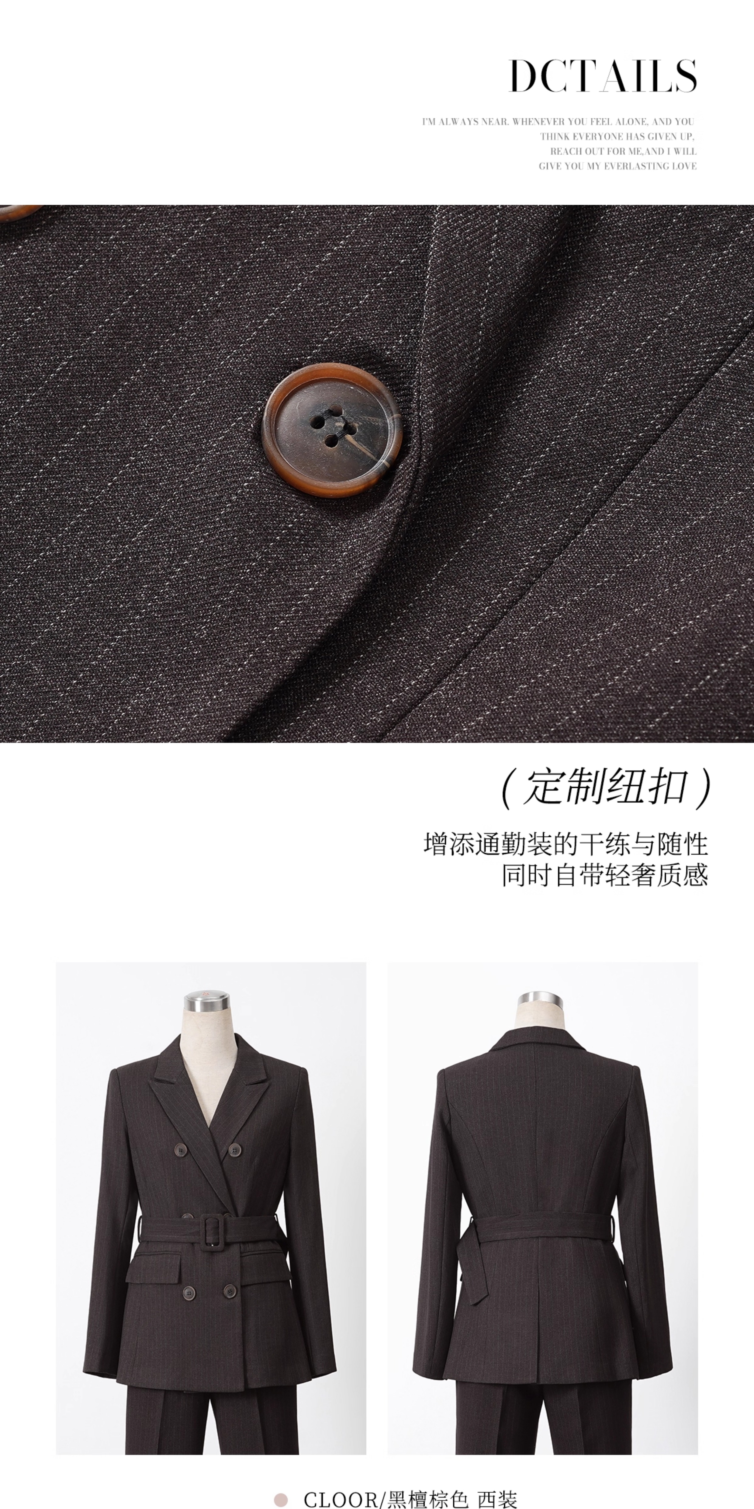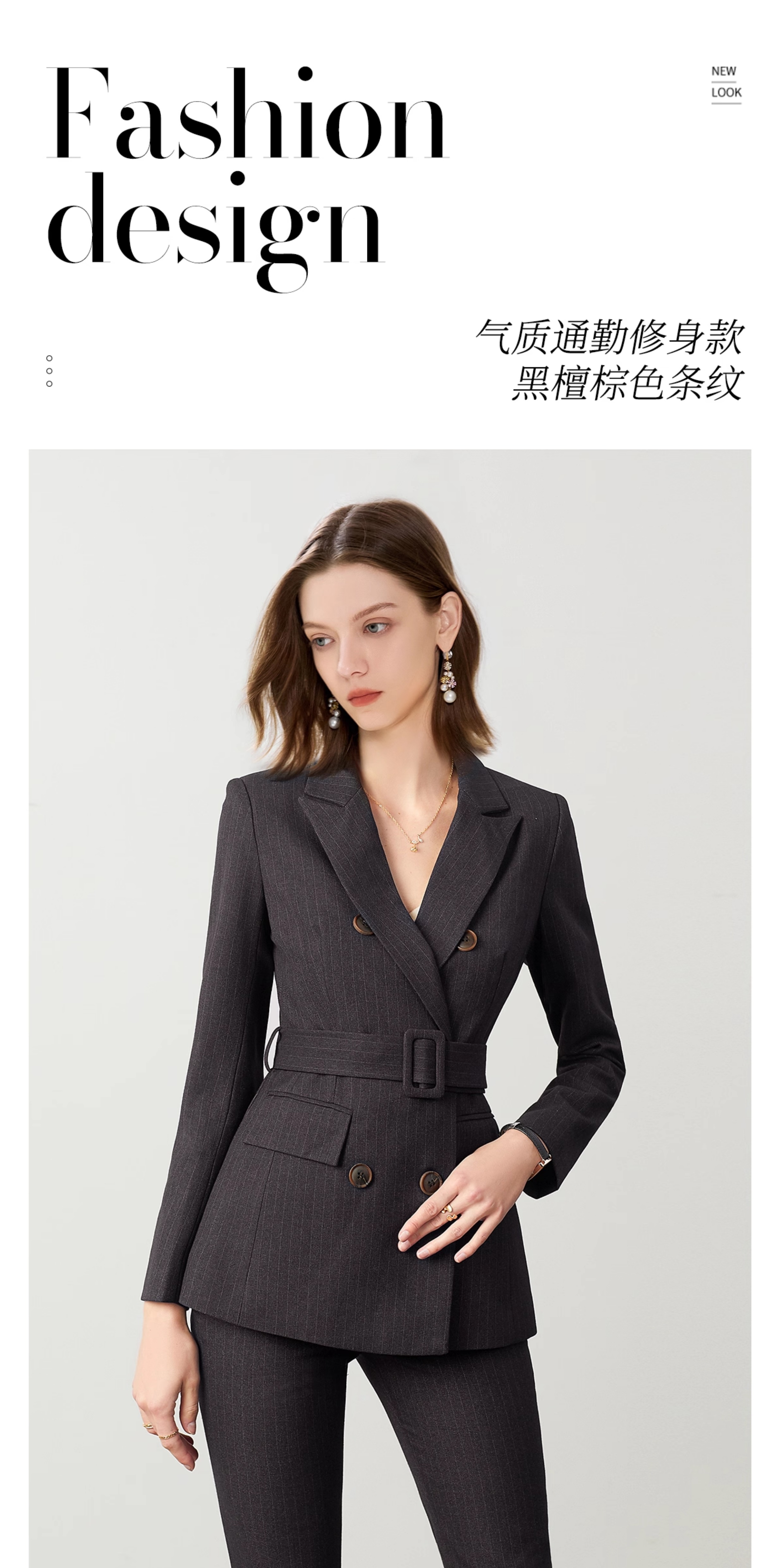 艾尚臣复古棕色西装套装女秋冬高级感通勤条纹职业装管理层工作服