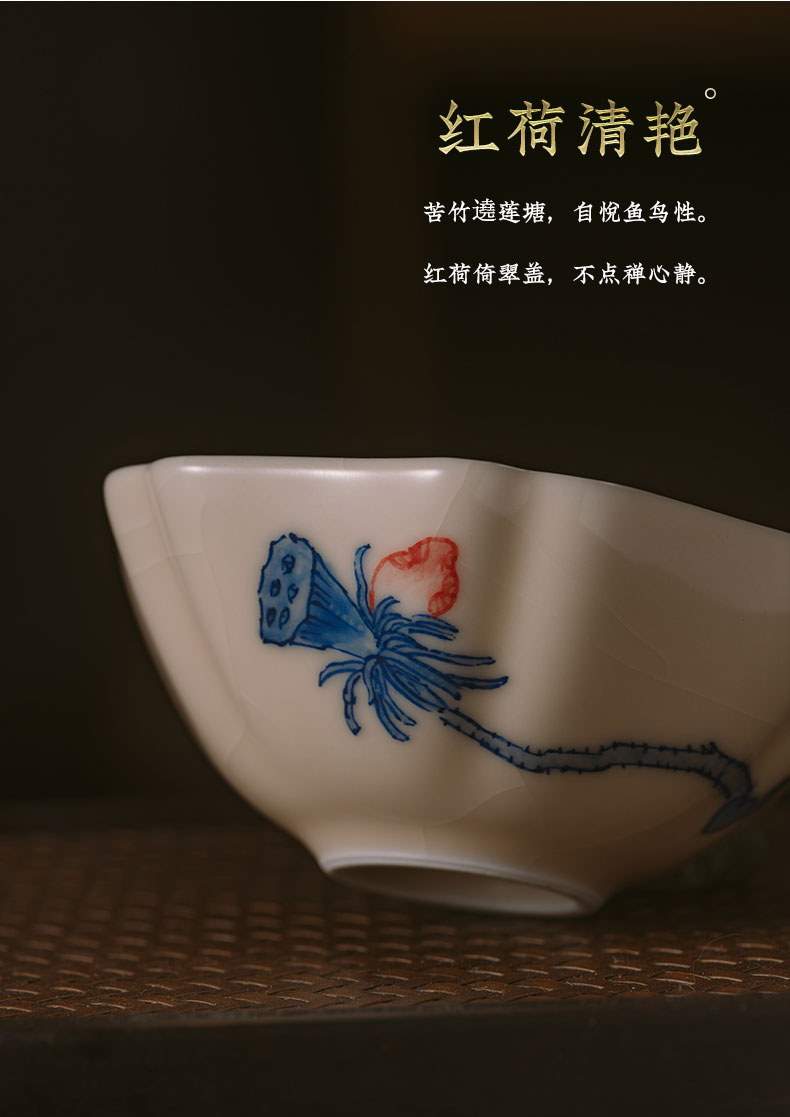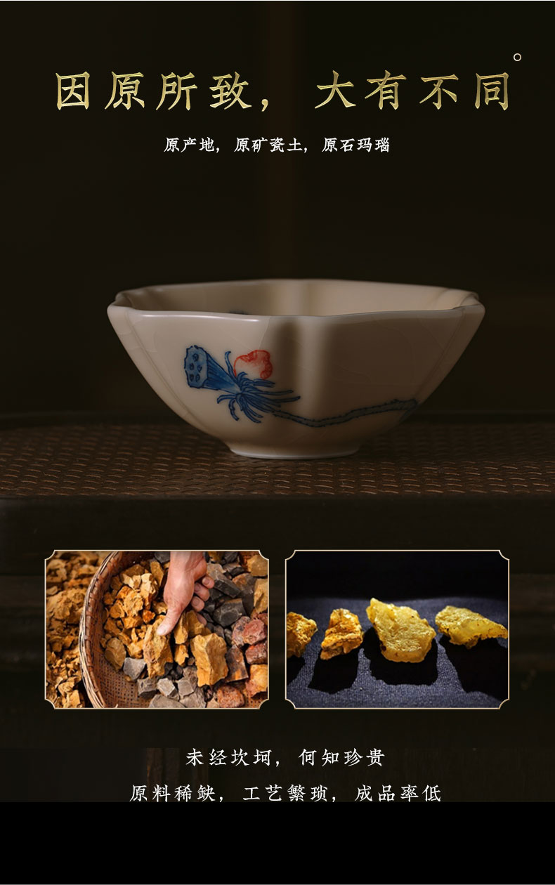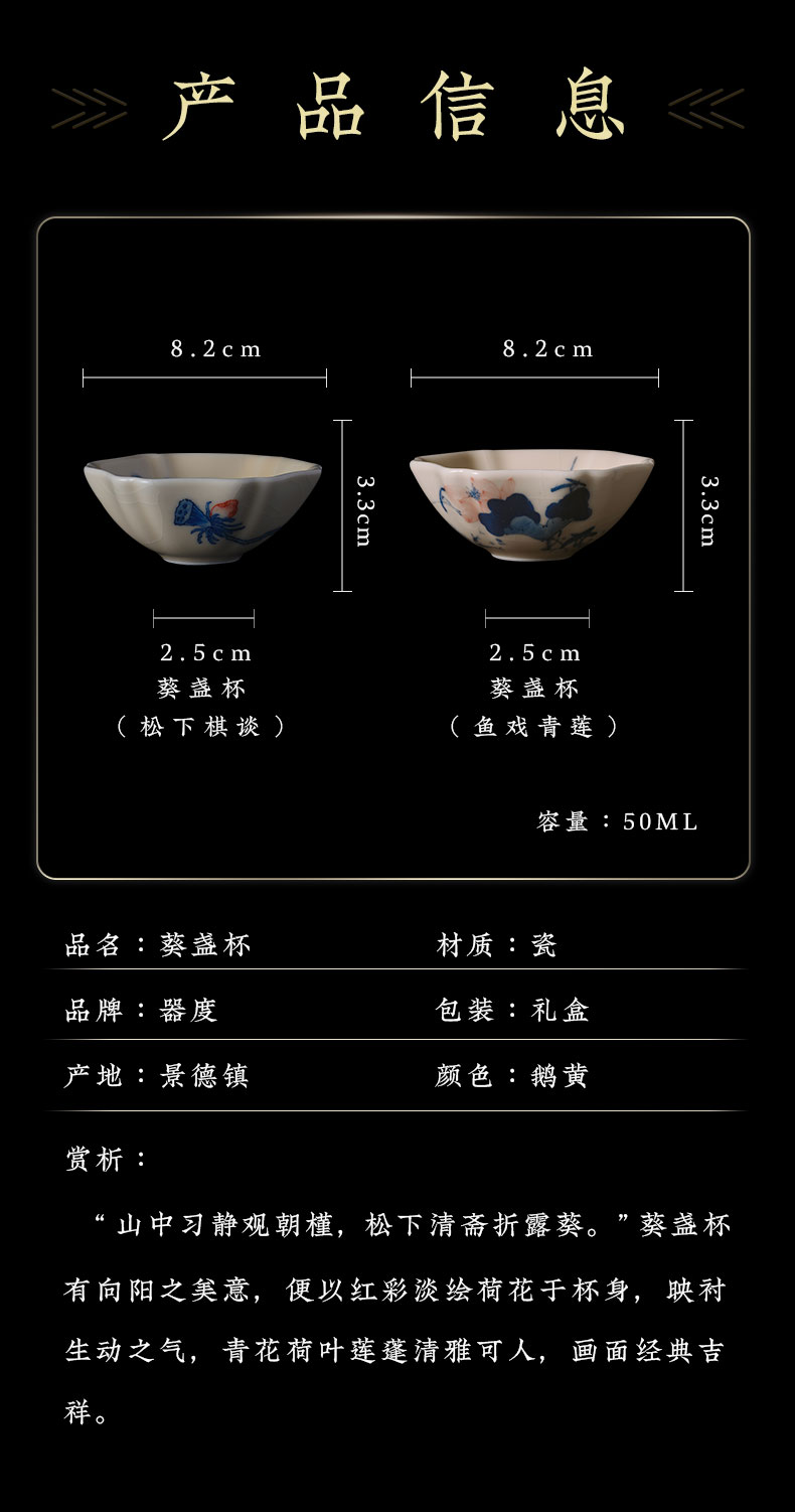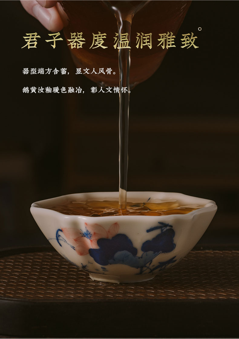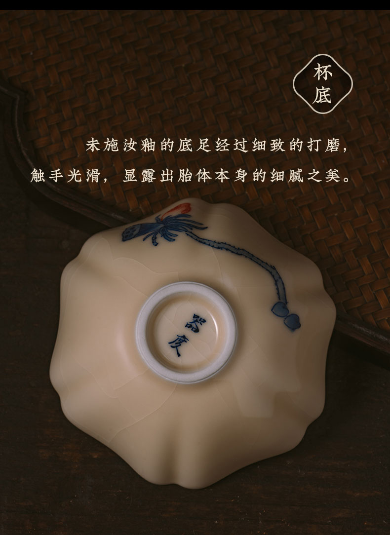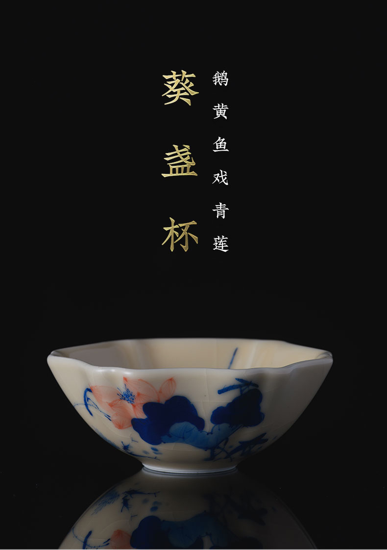 问鼎器度汝窑鹅黄青花葵盏杯(竹鸟)(松下棋谈)(缺货)(鱼戏青莲)(缺货)