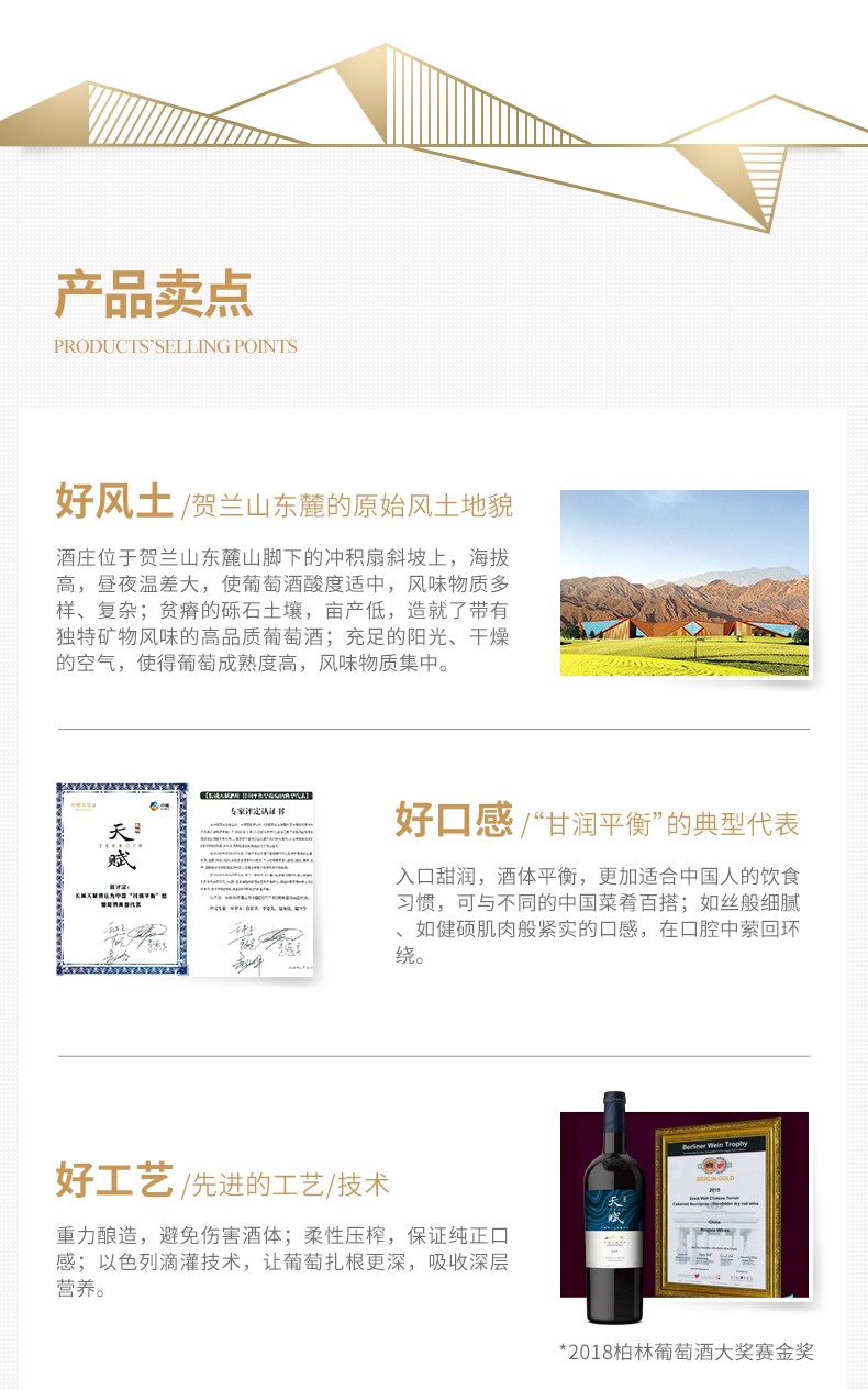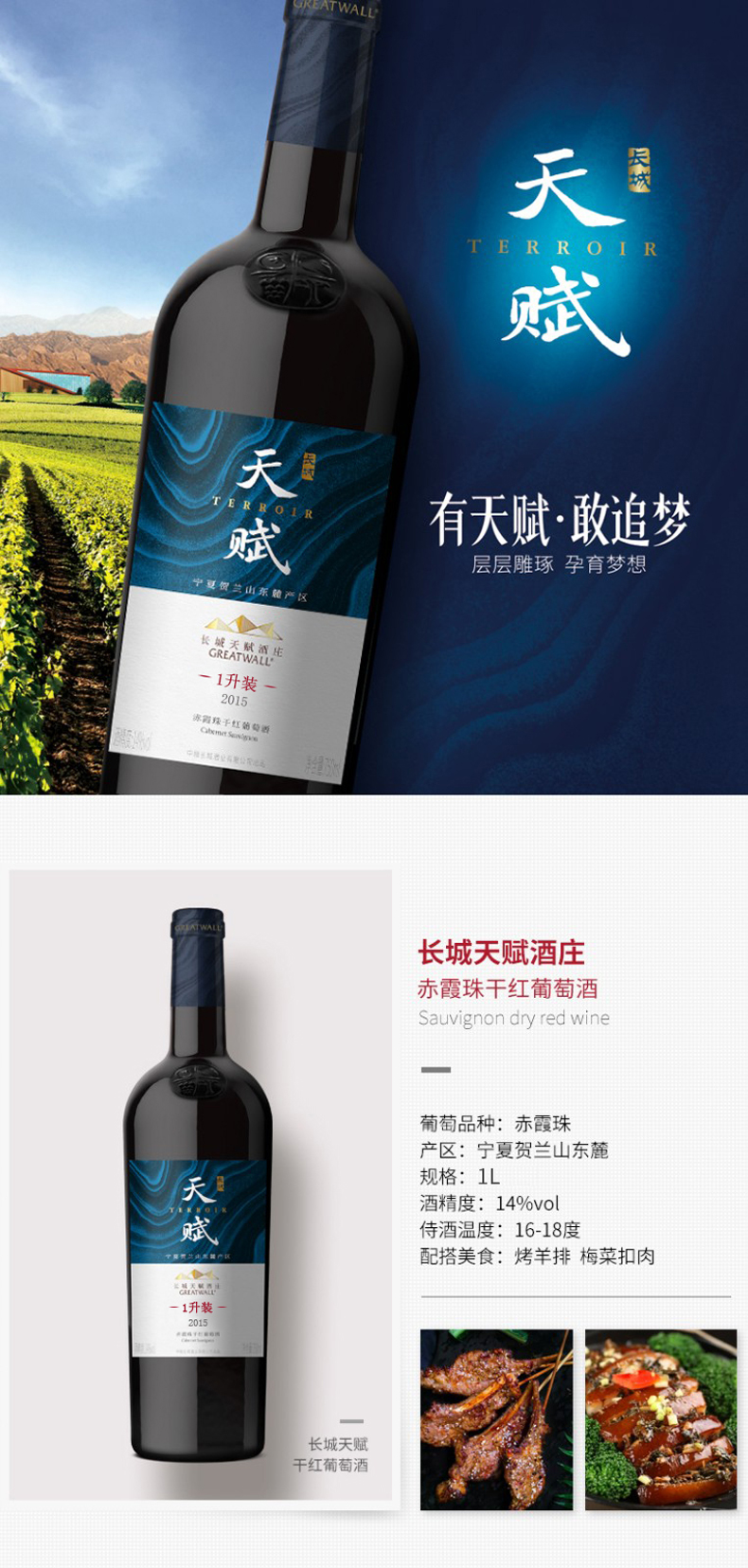 长城天赋酒庄赤霞珠干红葡萄酒 14度 1L装干型葡萄酒 大瓶装葡萄酒