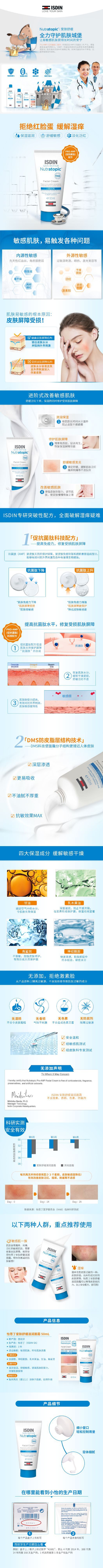 【特惠】西班牙怡思丁ISDIN爱肤舒缓滋润面霜婴童特护面霜50ml