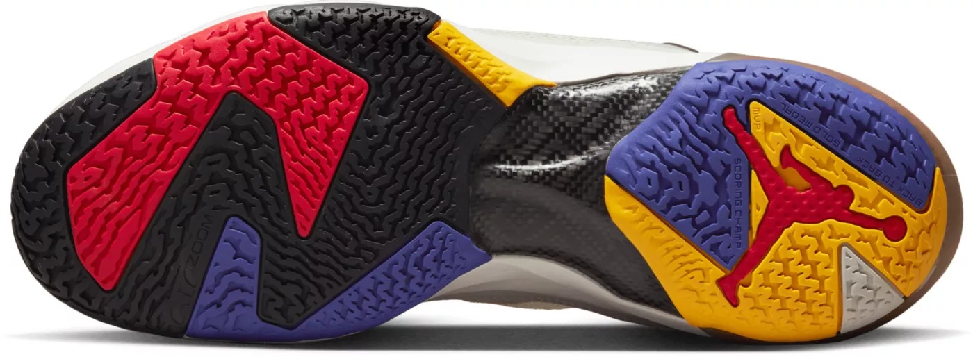 这款鞋子的鞋面采用了多层的leno-wave织物和强韧的塑料带,为脚提供了紧密的包裹感。鞋面的设计是回到了AJ7的外骨骼风格。鞋子的顶部线条和鞋舌上的Jordan® Air标志向AJ7标志性的设计致敬。