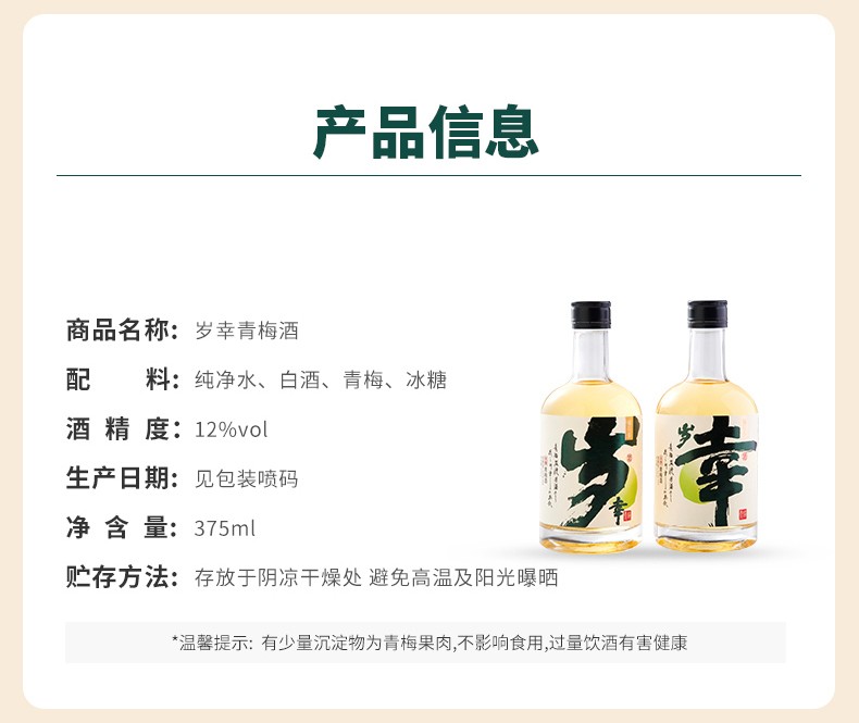 建发酒业 梅花乡微醺低度青梅酒 岁幸青梅酒 果香浓郁12度375ml 单瓶