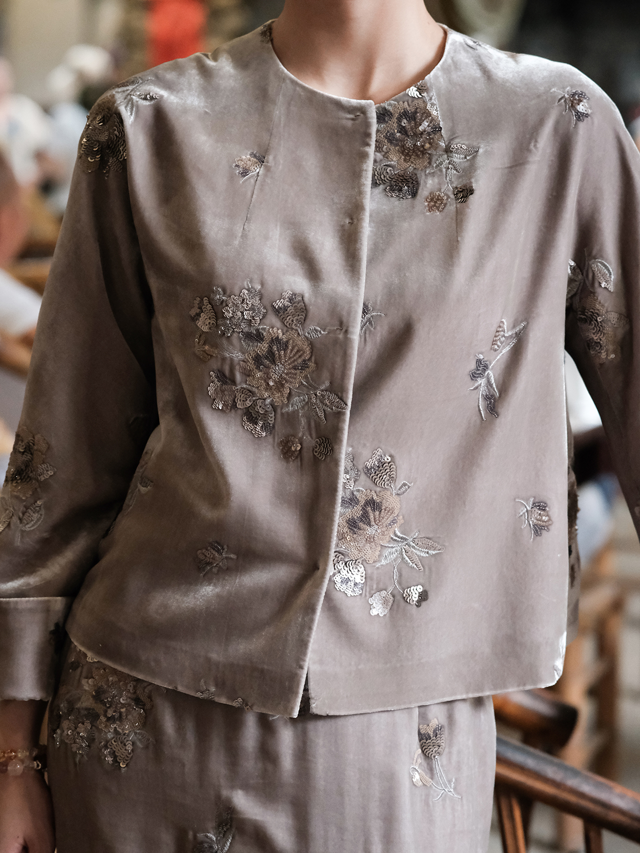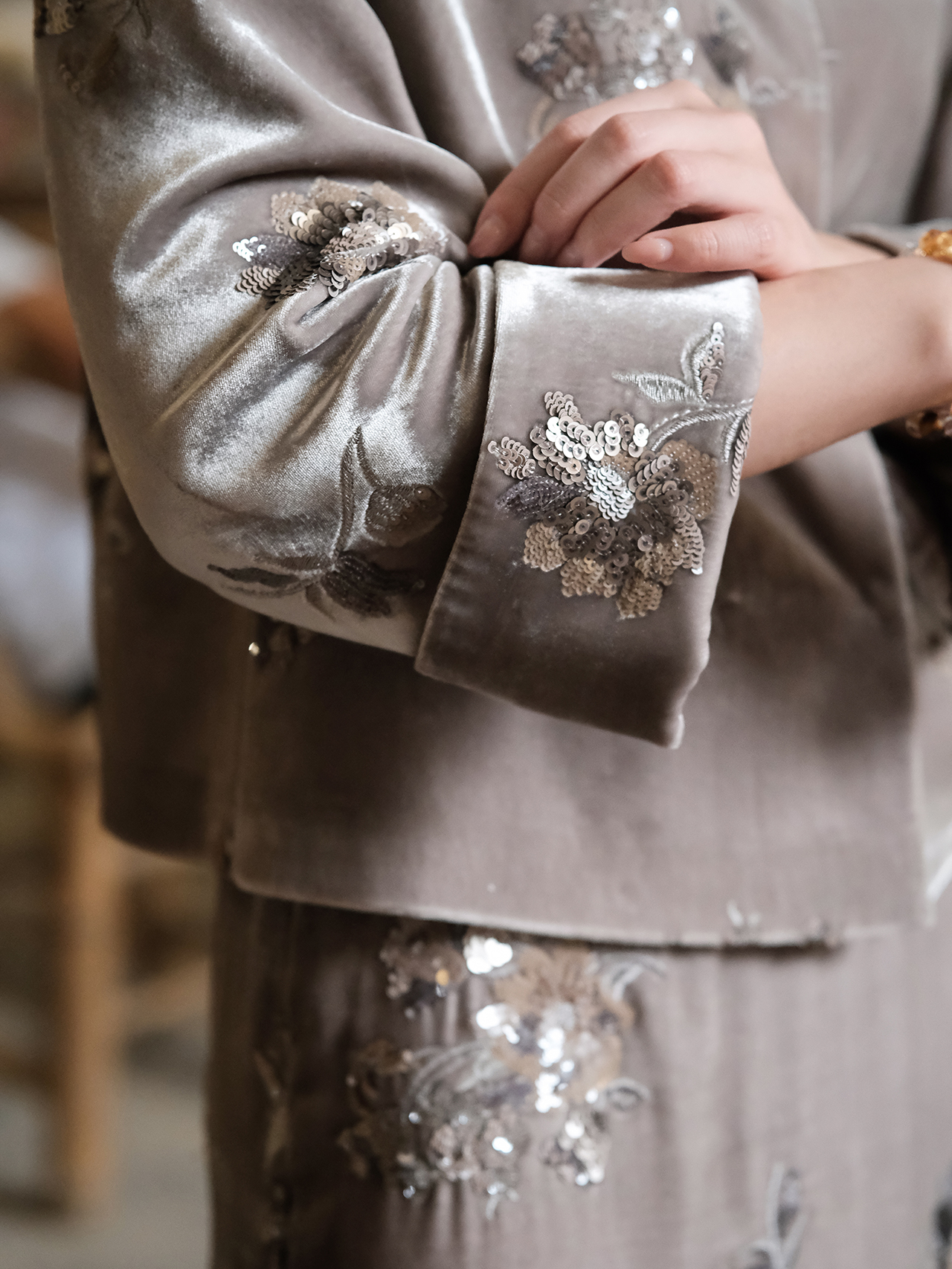 盛唐牡丹| 绍衣灰法式串珠丝绒外套