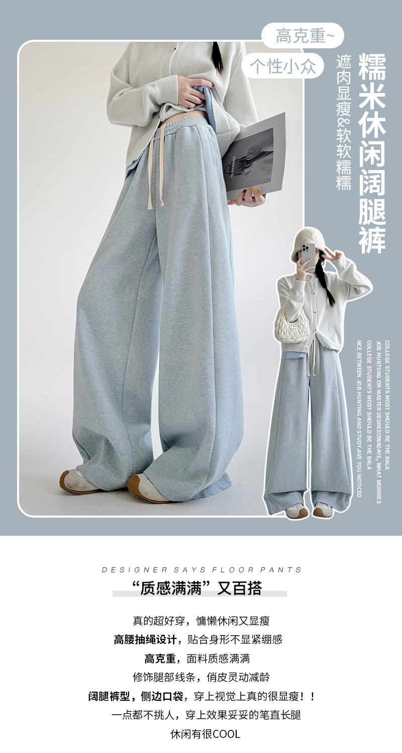 高克重糯米裤女秋冬新款慵懒风显瘦休闲直筒裤宽松高腰拖地阔腿裤