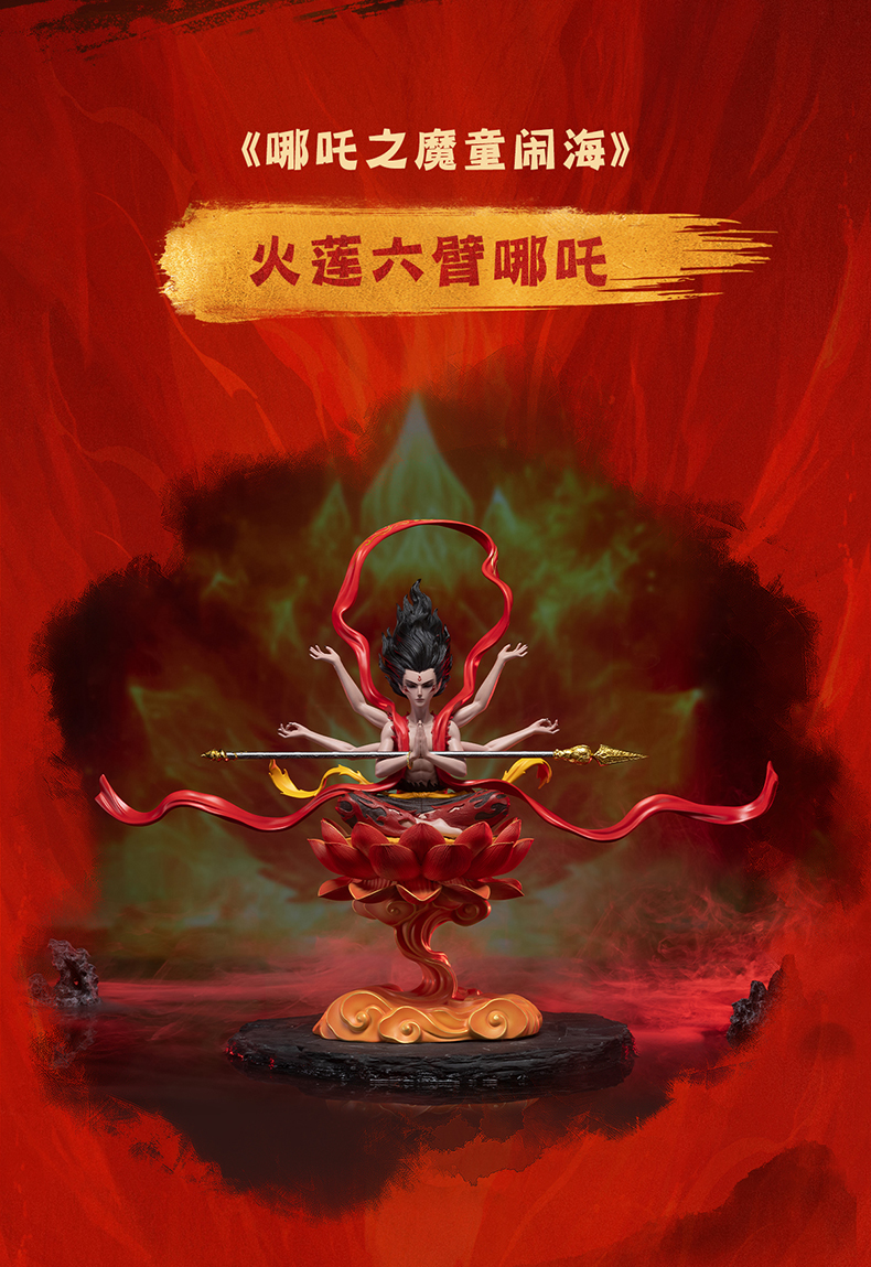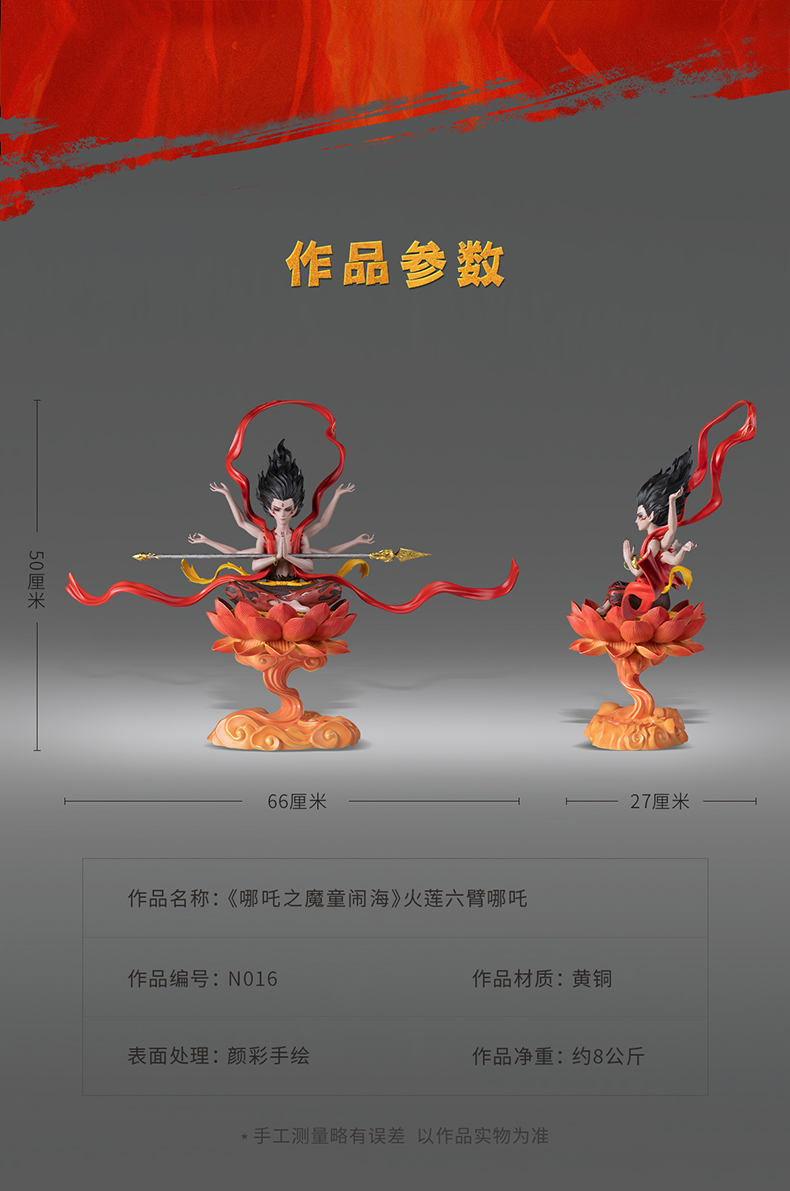 铜师傅《哪吒之魔童闹海》火莲六臂哪吒 潮玩铜摆件周边
