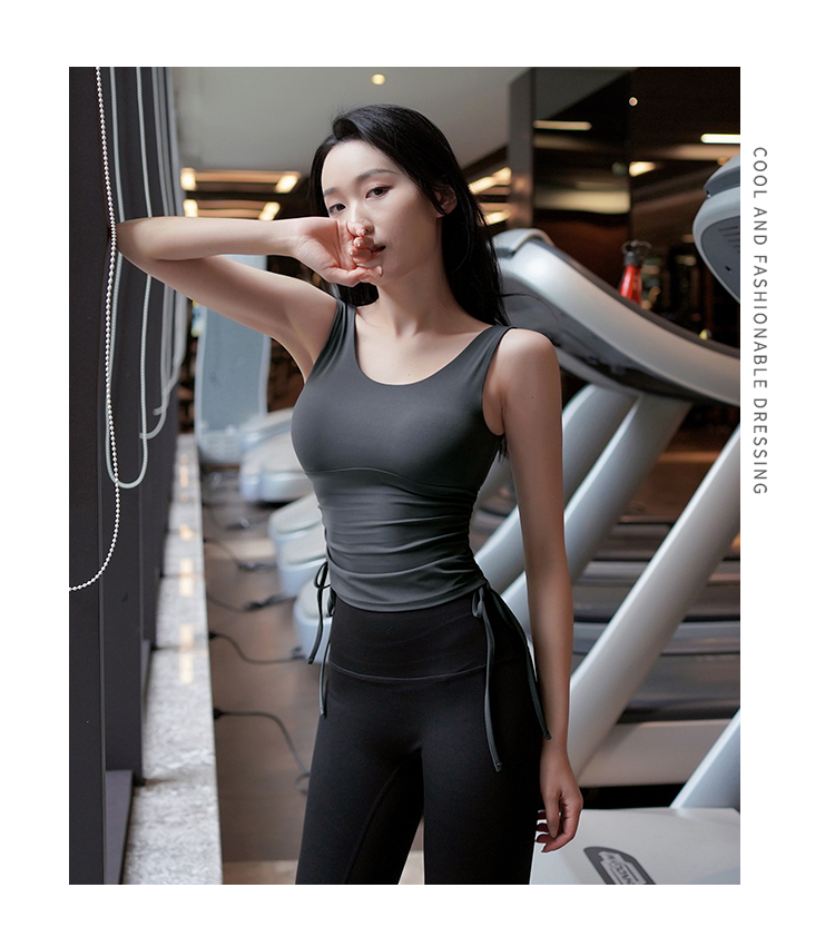 跃牌【健舞健美】系列一体式带胸垫无袖跑步训练健身瑜伽背心8309(可拆胸垫)