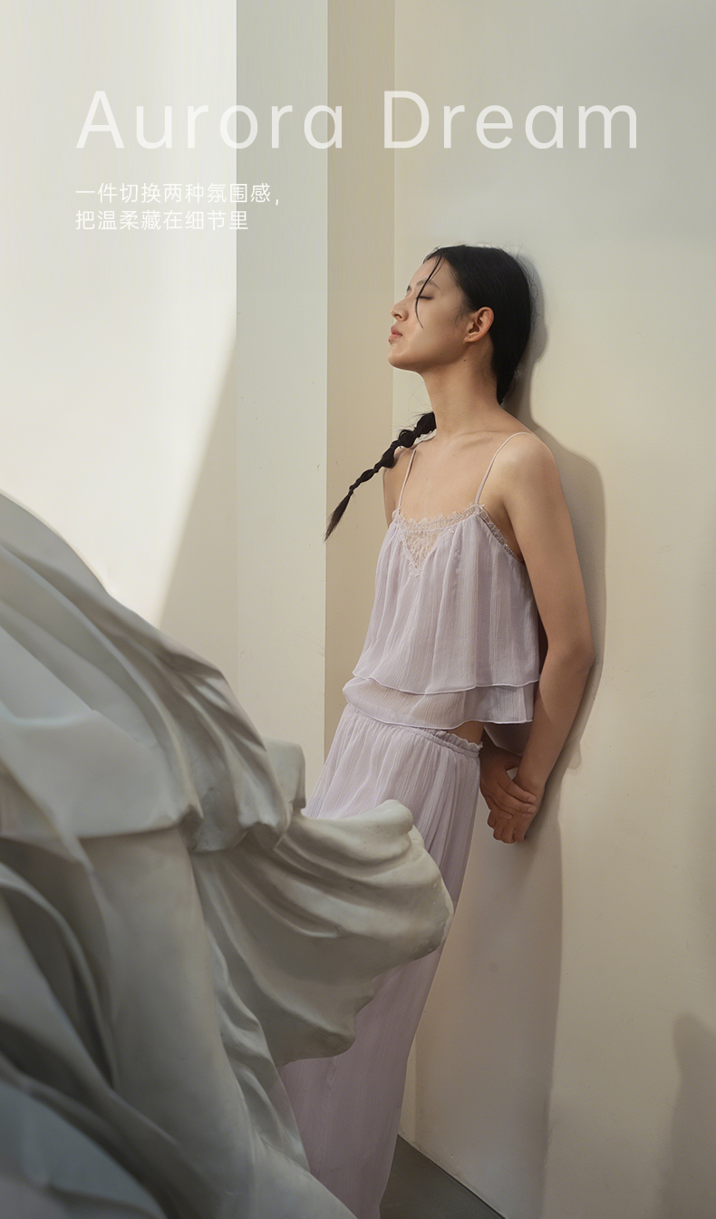 温柔性感』桑罗吊带长裤真丝睡衣套装100%桑蚕丝女家居服可外穿