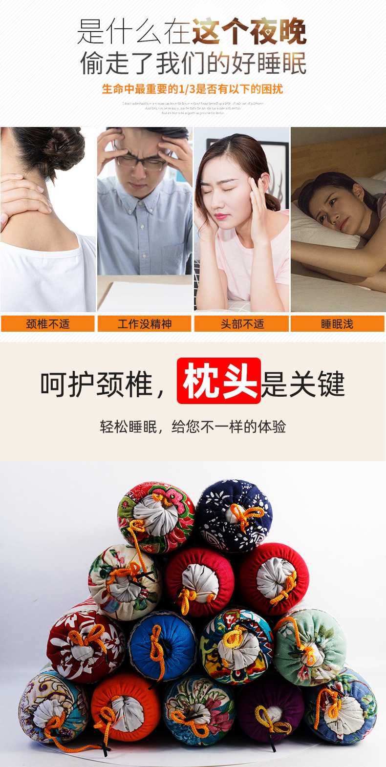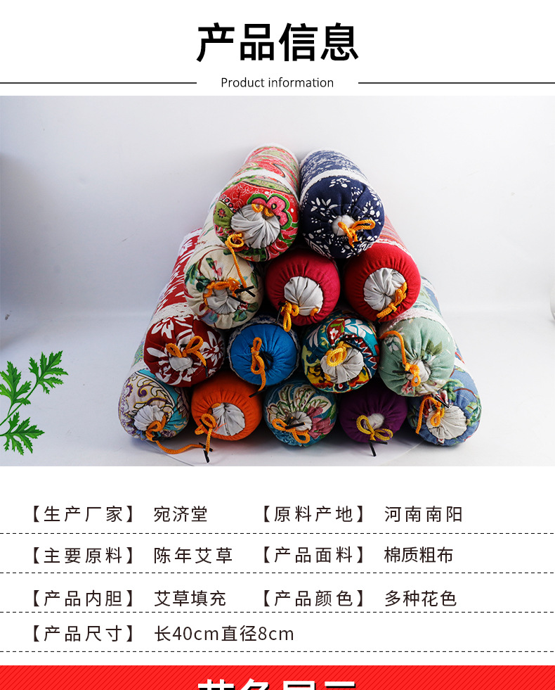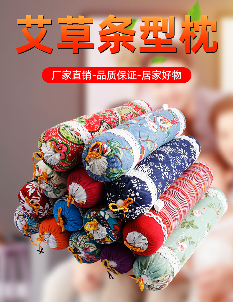 艾草条型枕颈椎枕家用护颈枕老粗布艾绒枕学生家用圆筒枕
