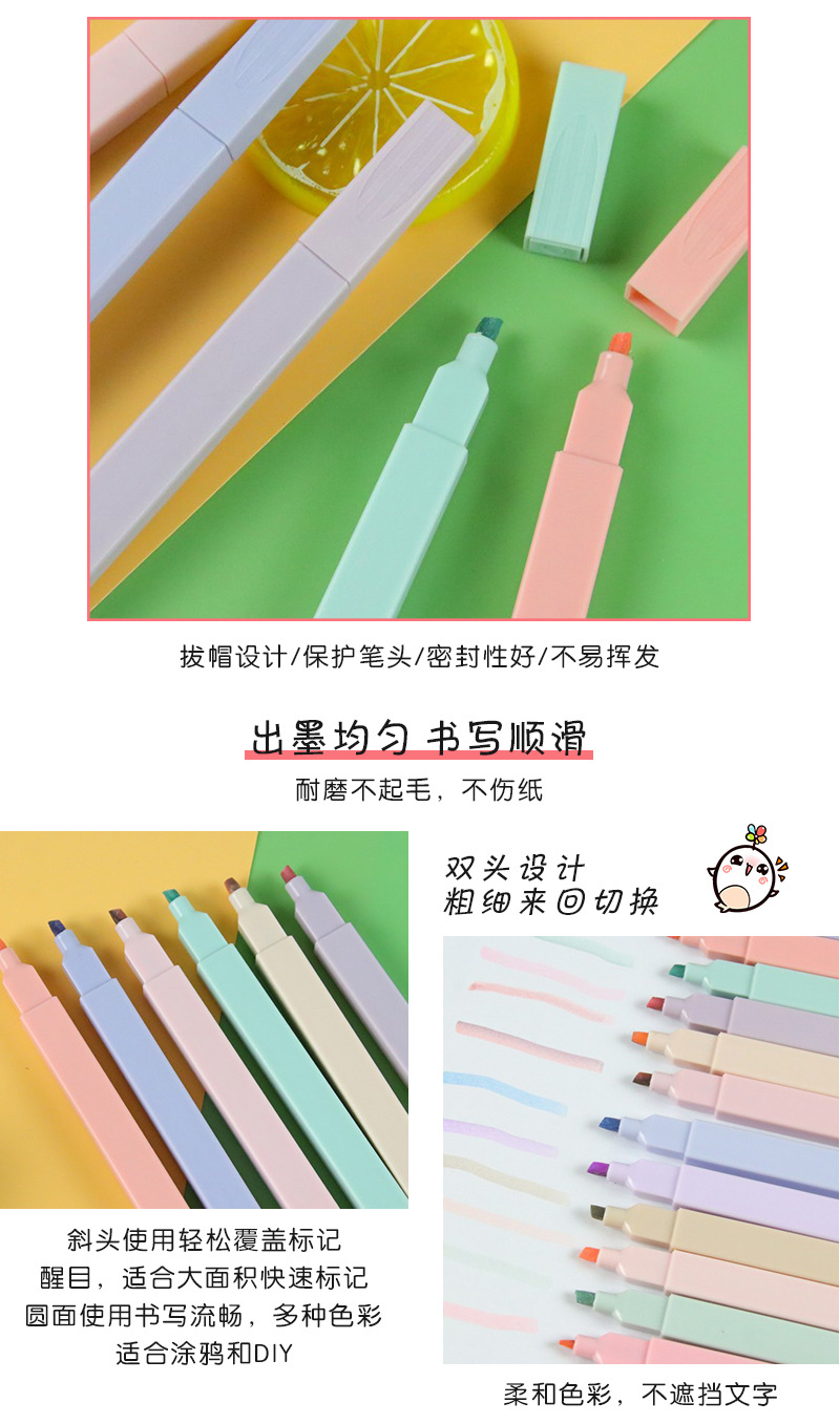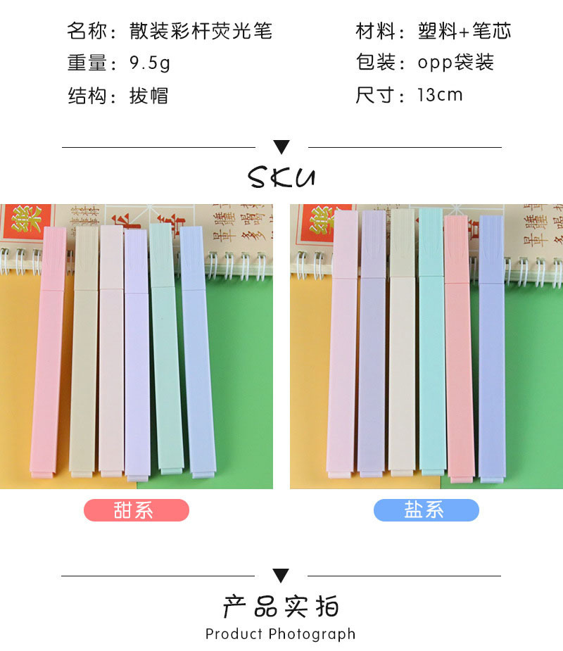 散装彩杆莫兰迪英光笔马卡龙护眼色莹光笔彩色手账笔划标记笔 1支