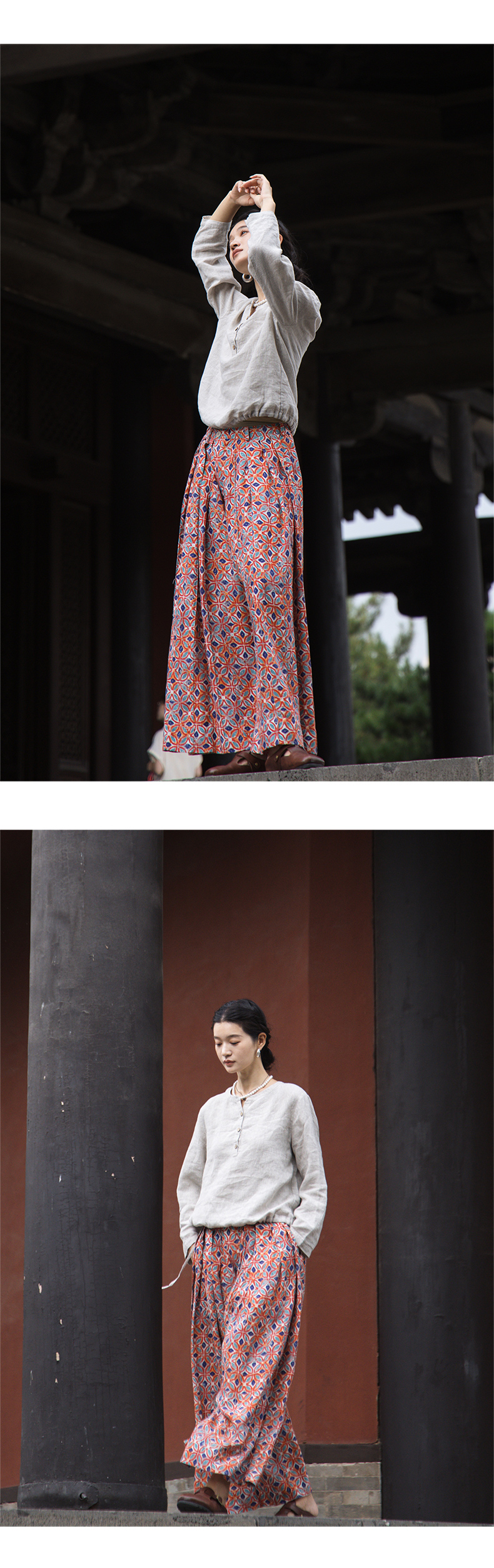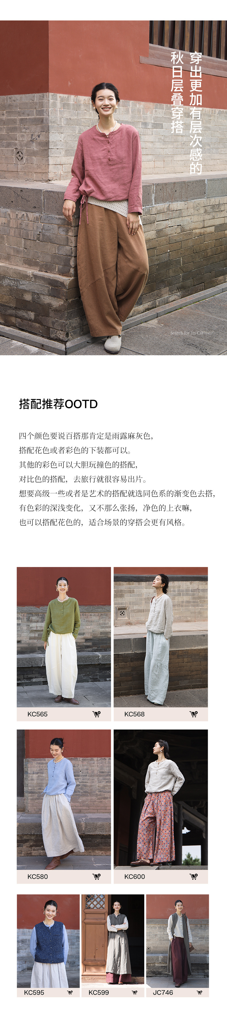 以天然亚麻为载体,融合热烈色彩与自在剪裁为身在城市、心怀远方的女性提供兼具美学与舒适的旅行着装