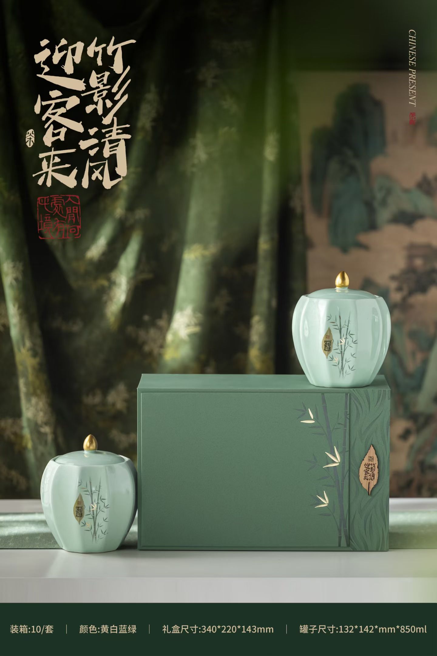 35元一套 / 一箱10套 竹影清风【 双瓷罐 绿色】