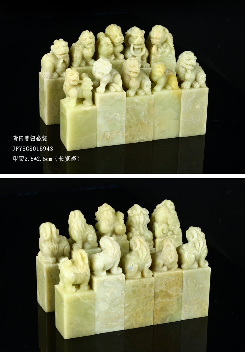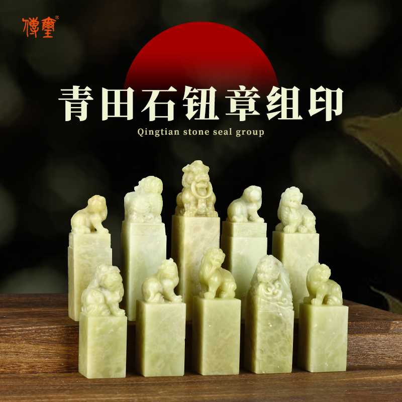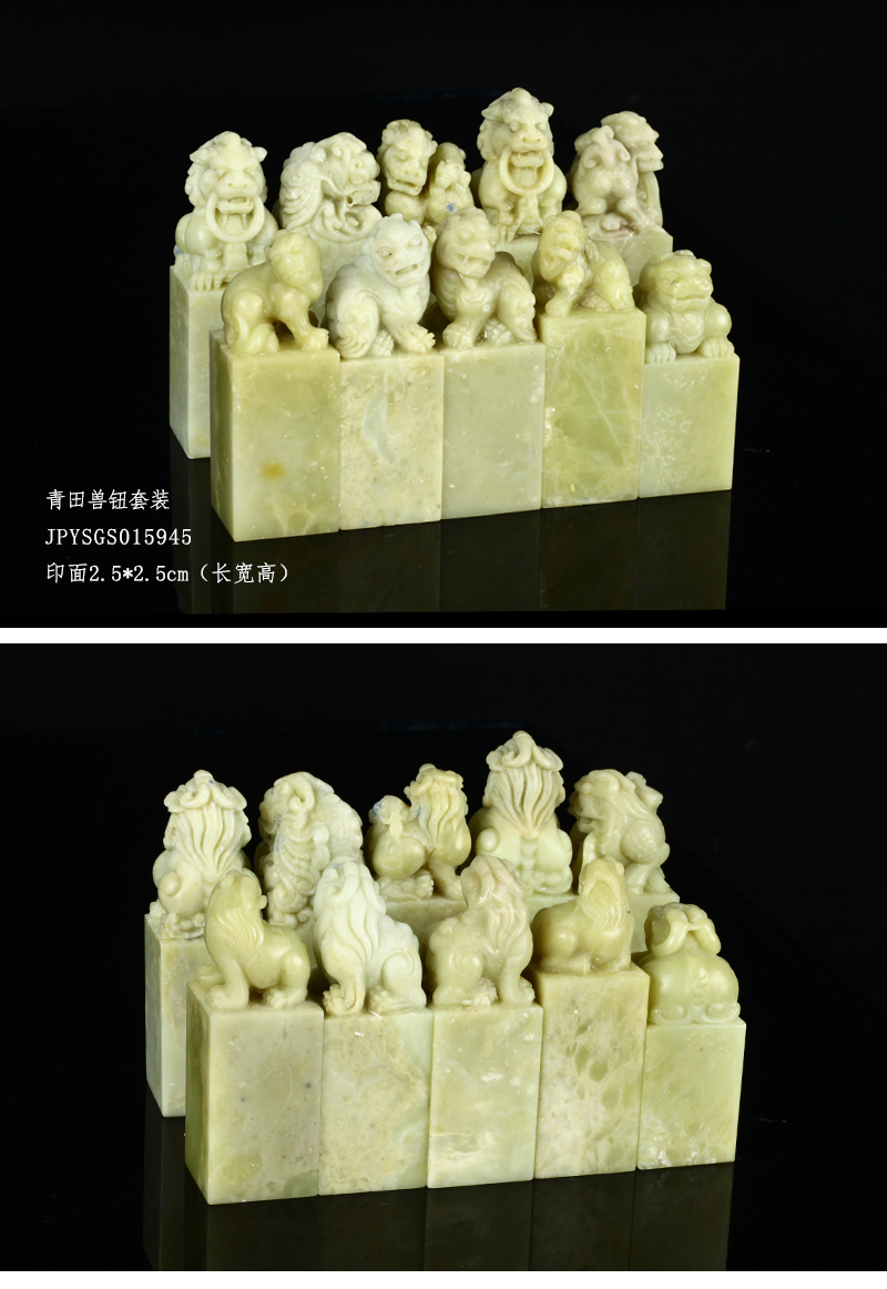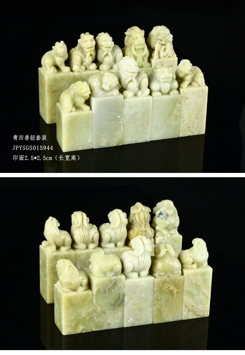 金石印坊孤品印章青田石兽钮方章篆刻精品章料一组(配多宝盒)