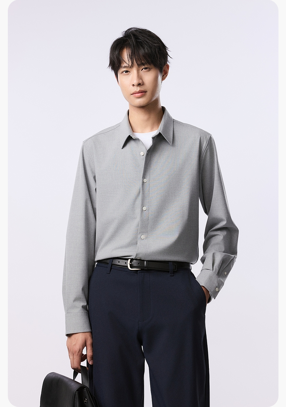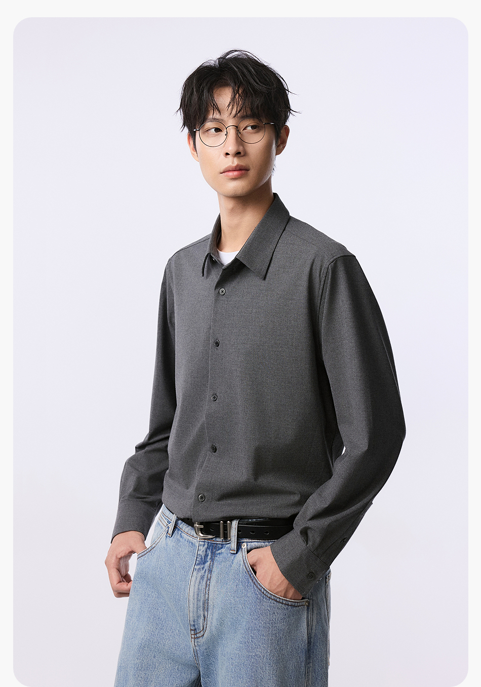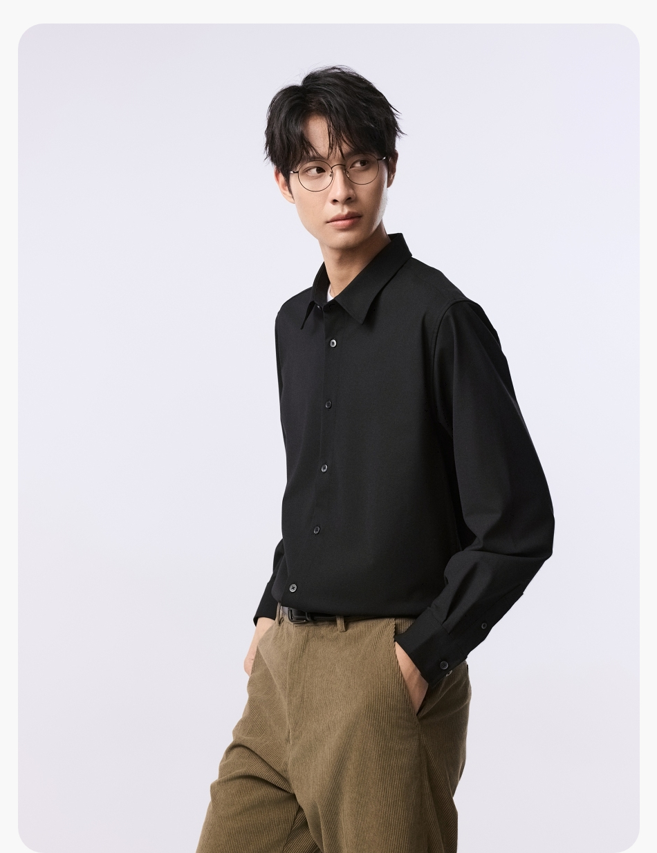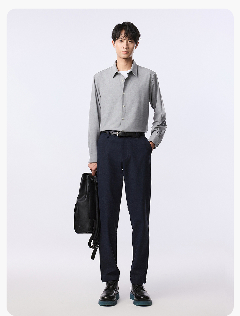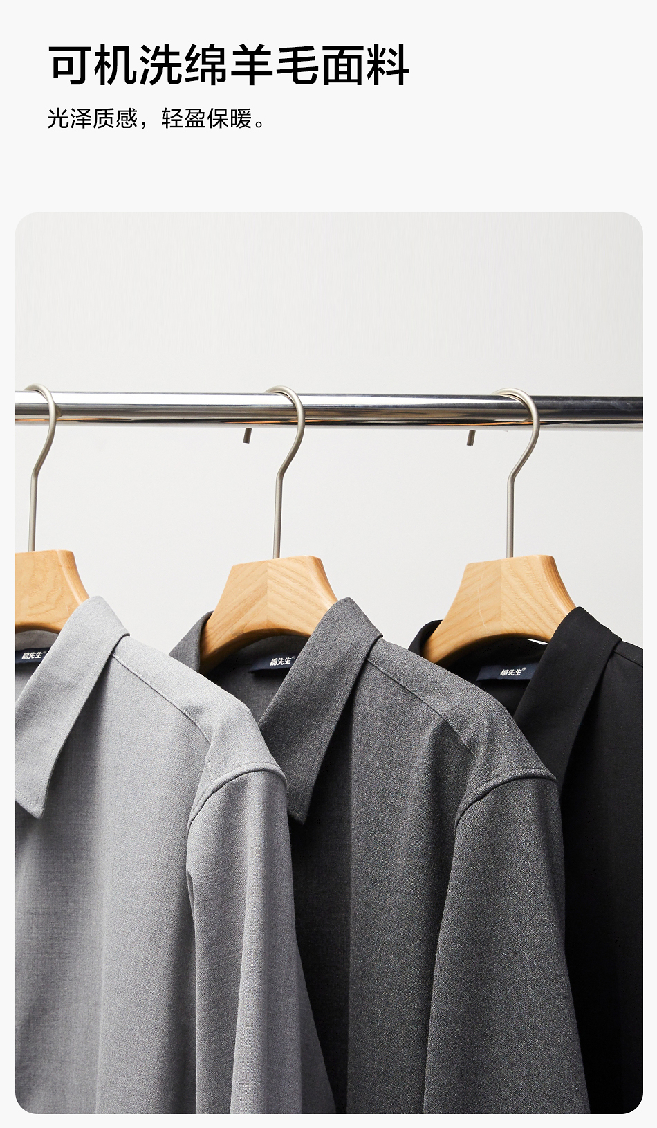 棉仓356804001-合体正肩版含羊毛TR弹翻领长袖衬衫