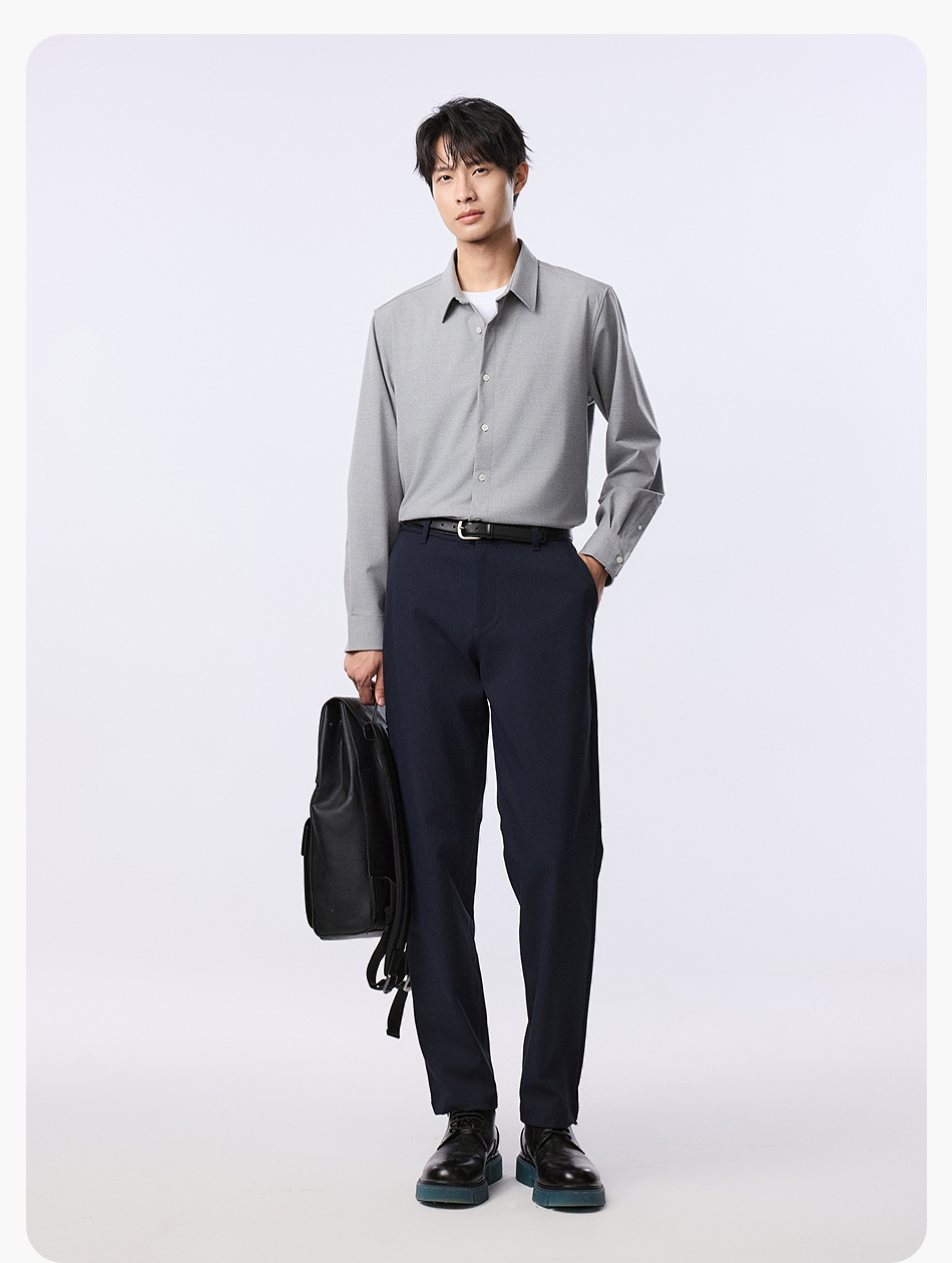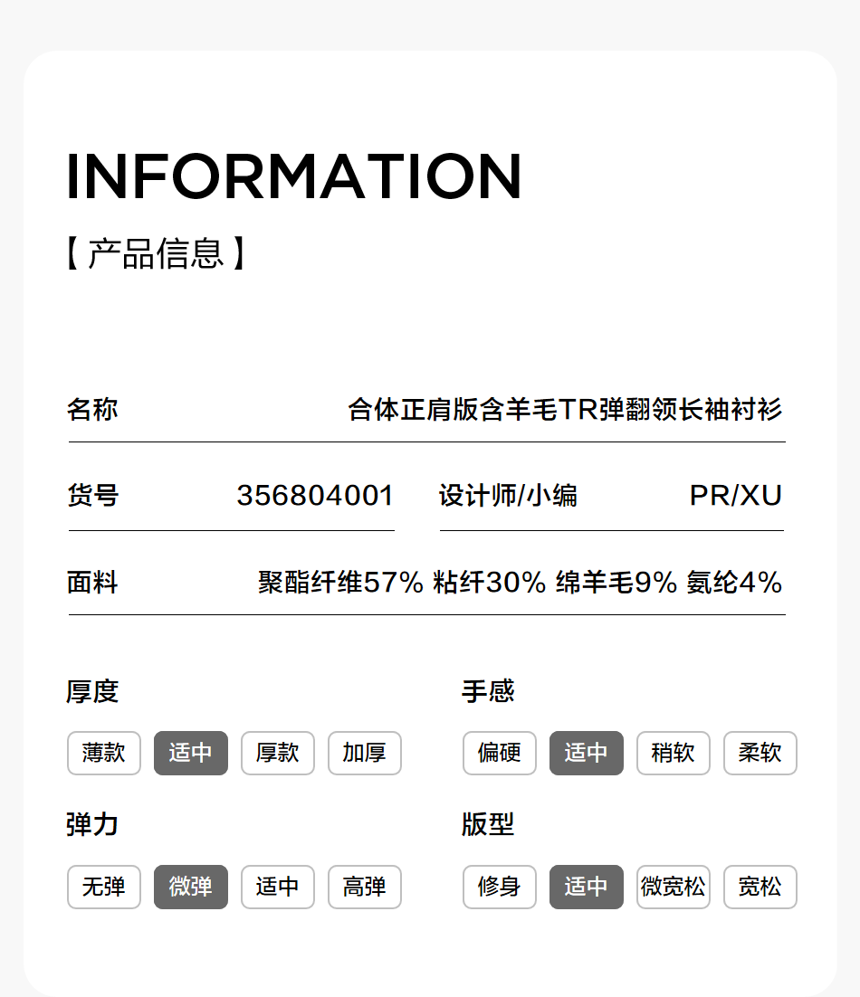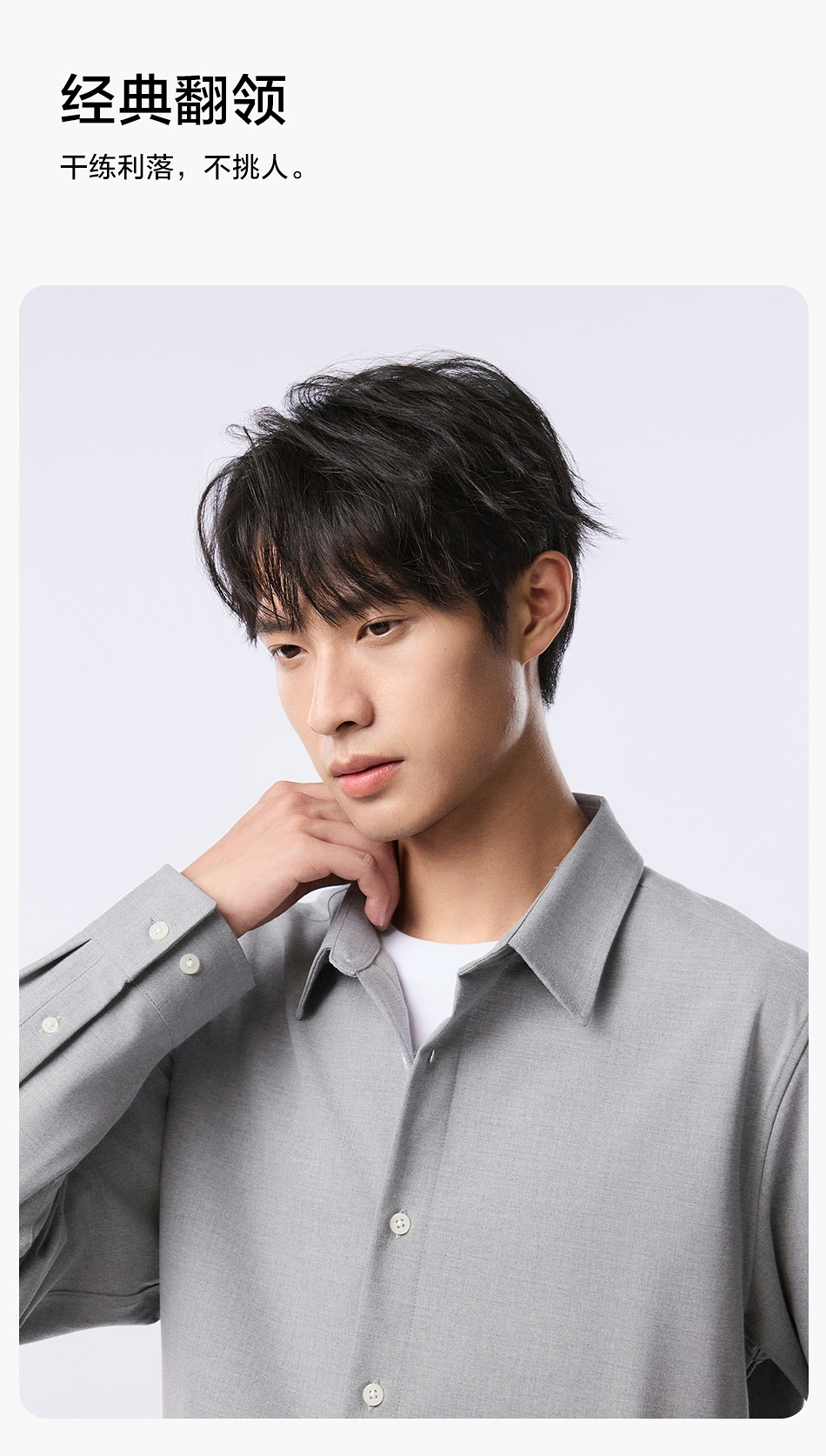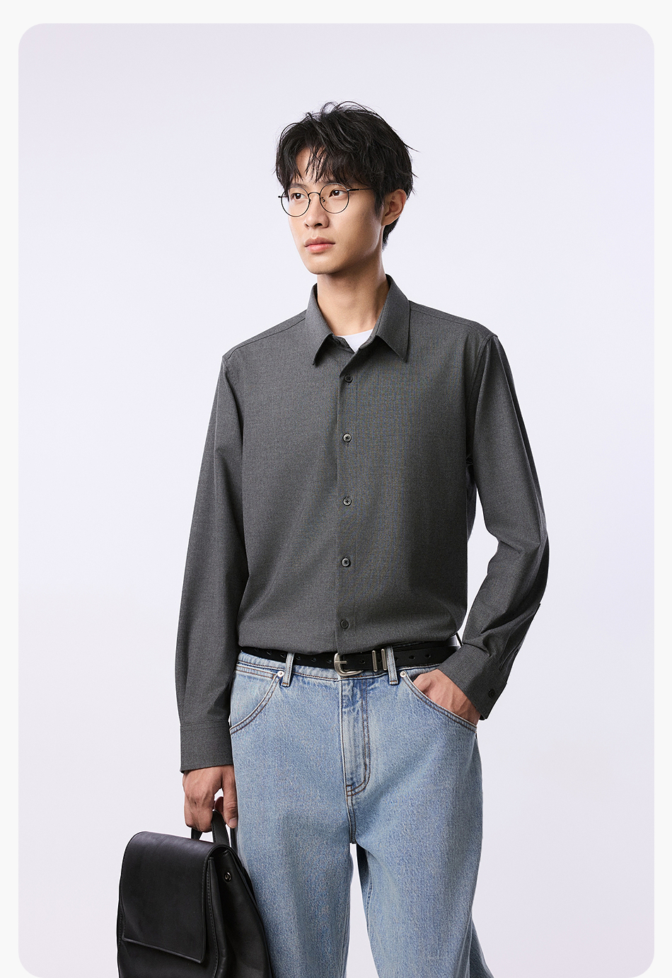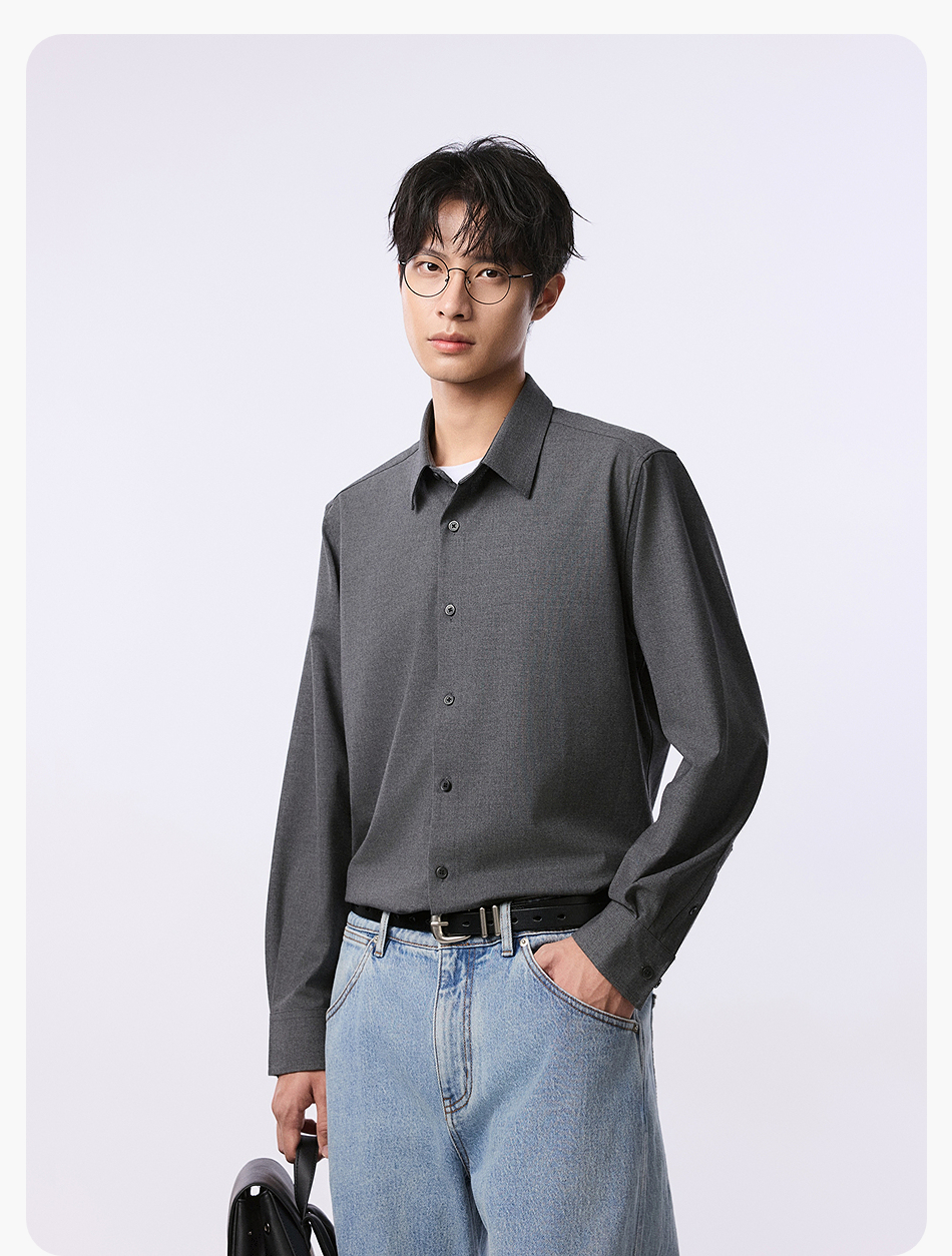 棉仓356804001-合体正肩版含羊毛TR弹翻领长袖衬衫