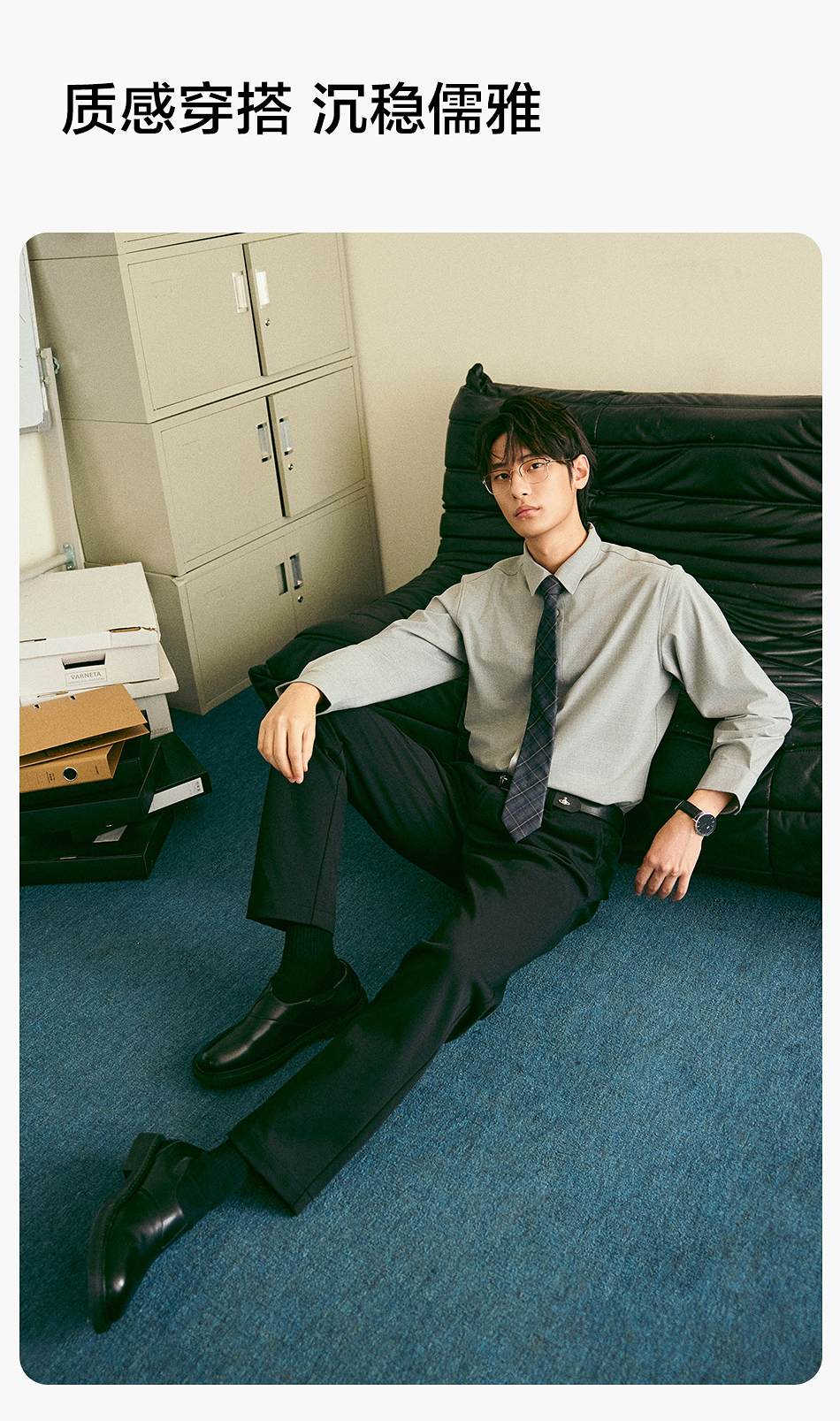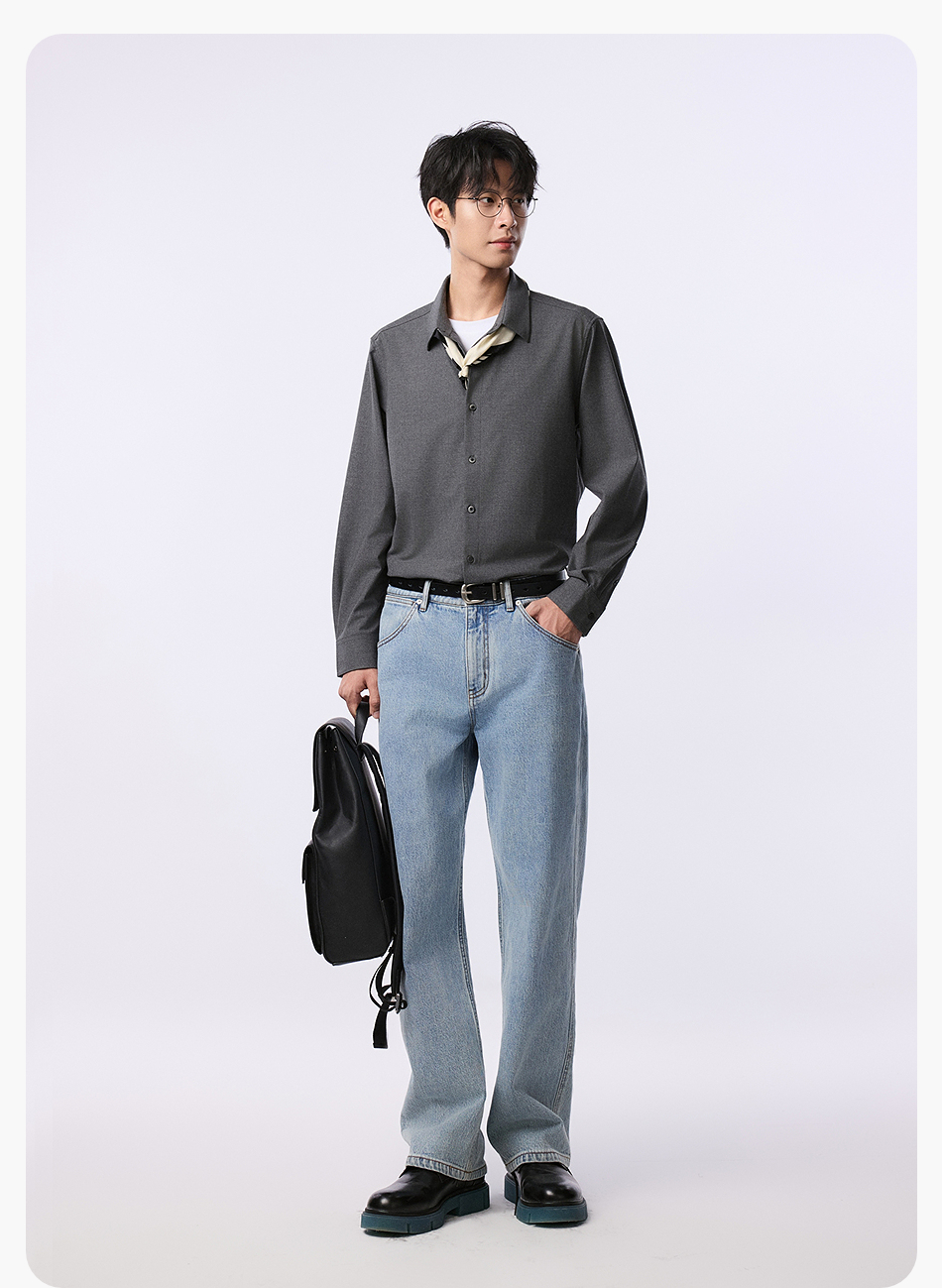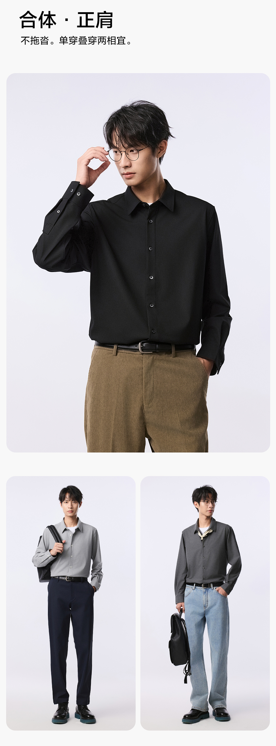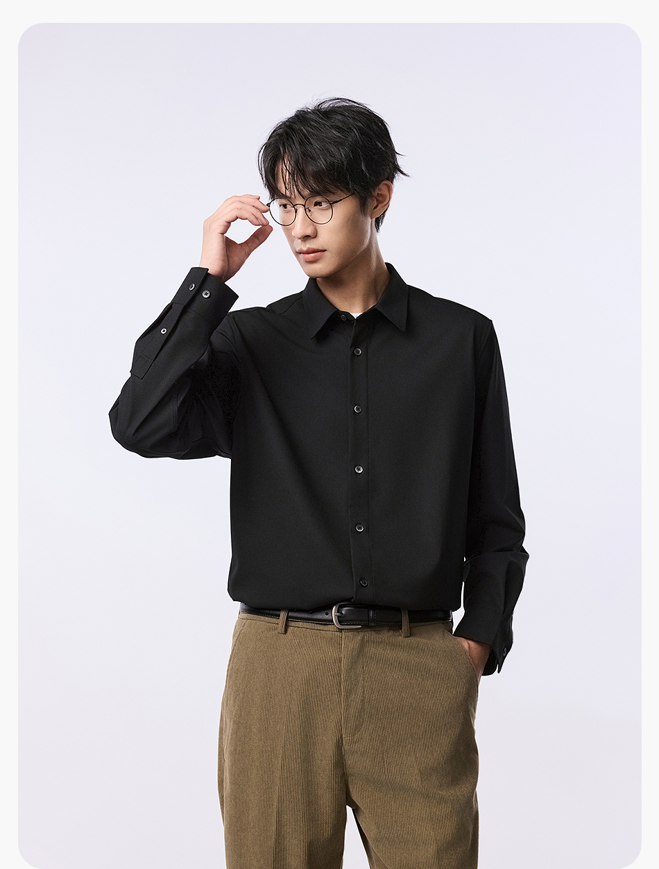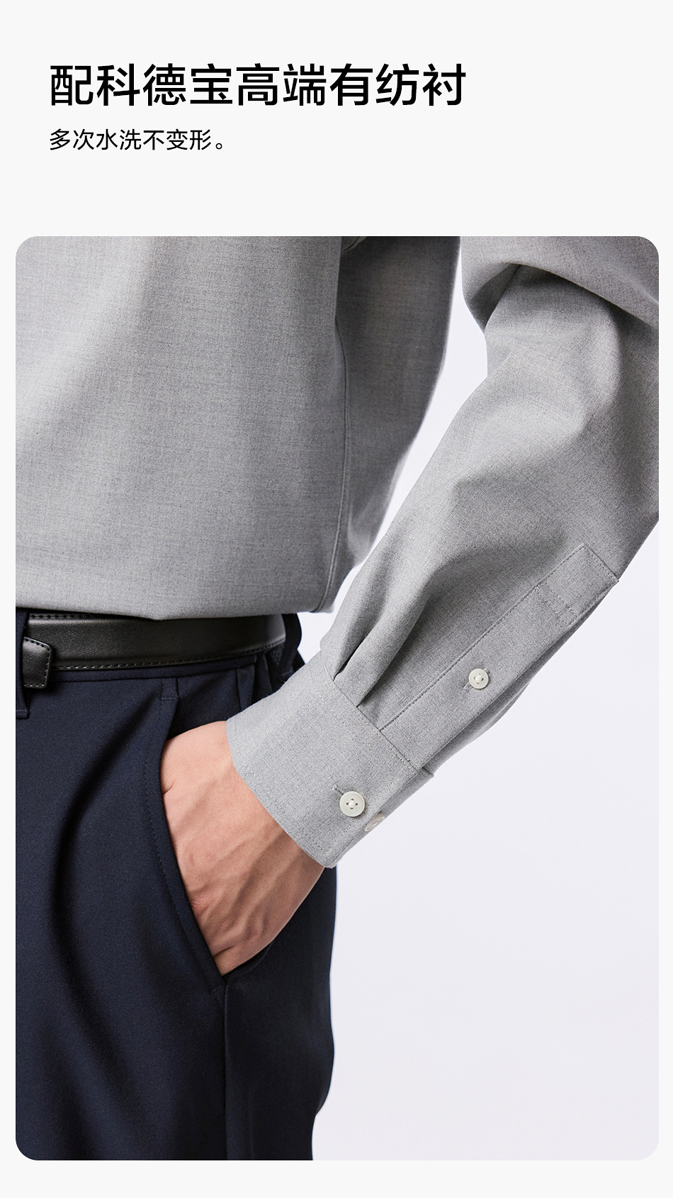 棉仓356804001-合体正肩版含羊毛TR弹翻领长袖衬衫