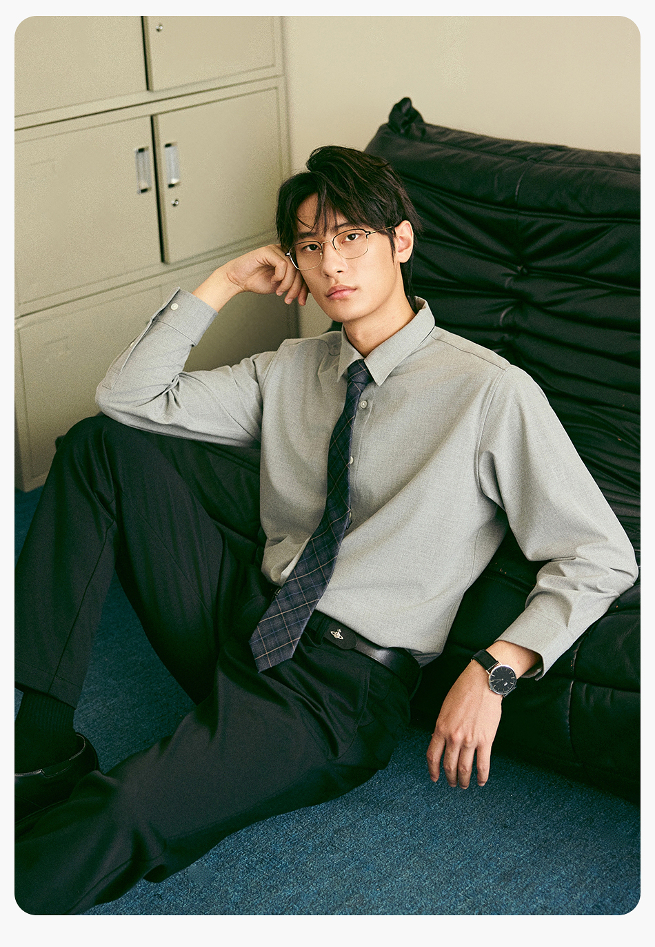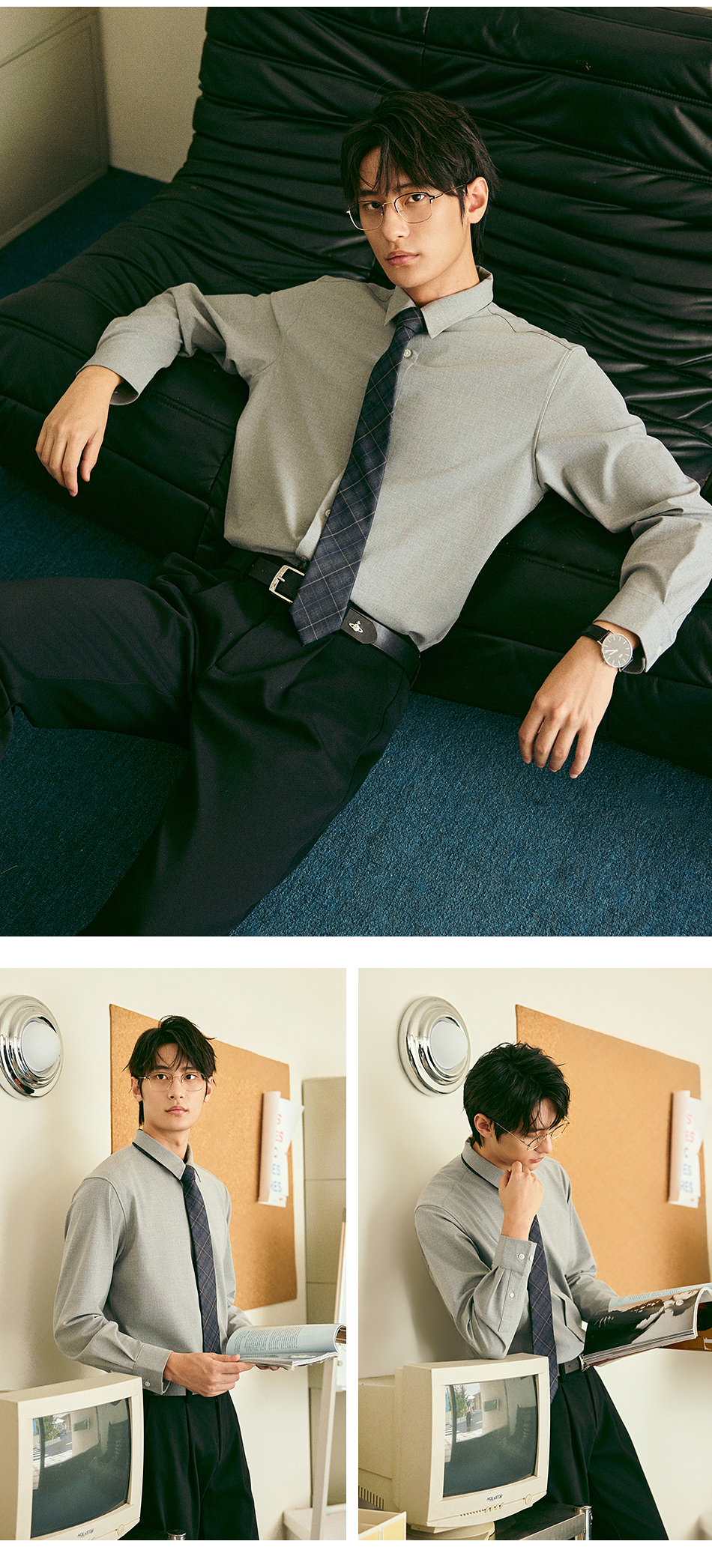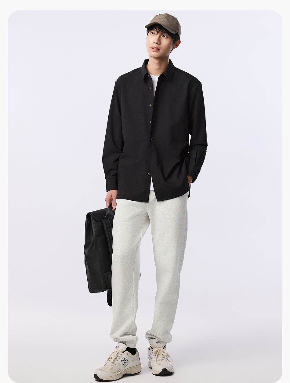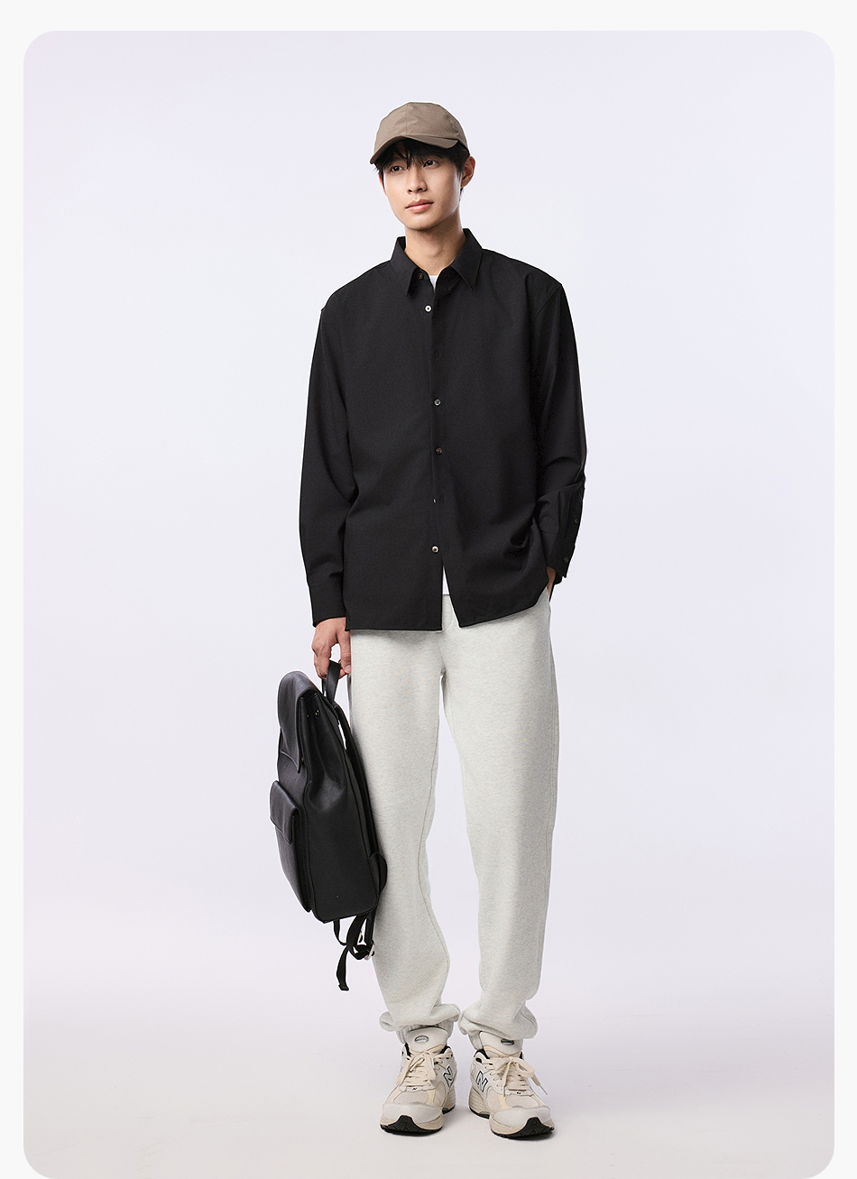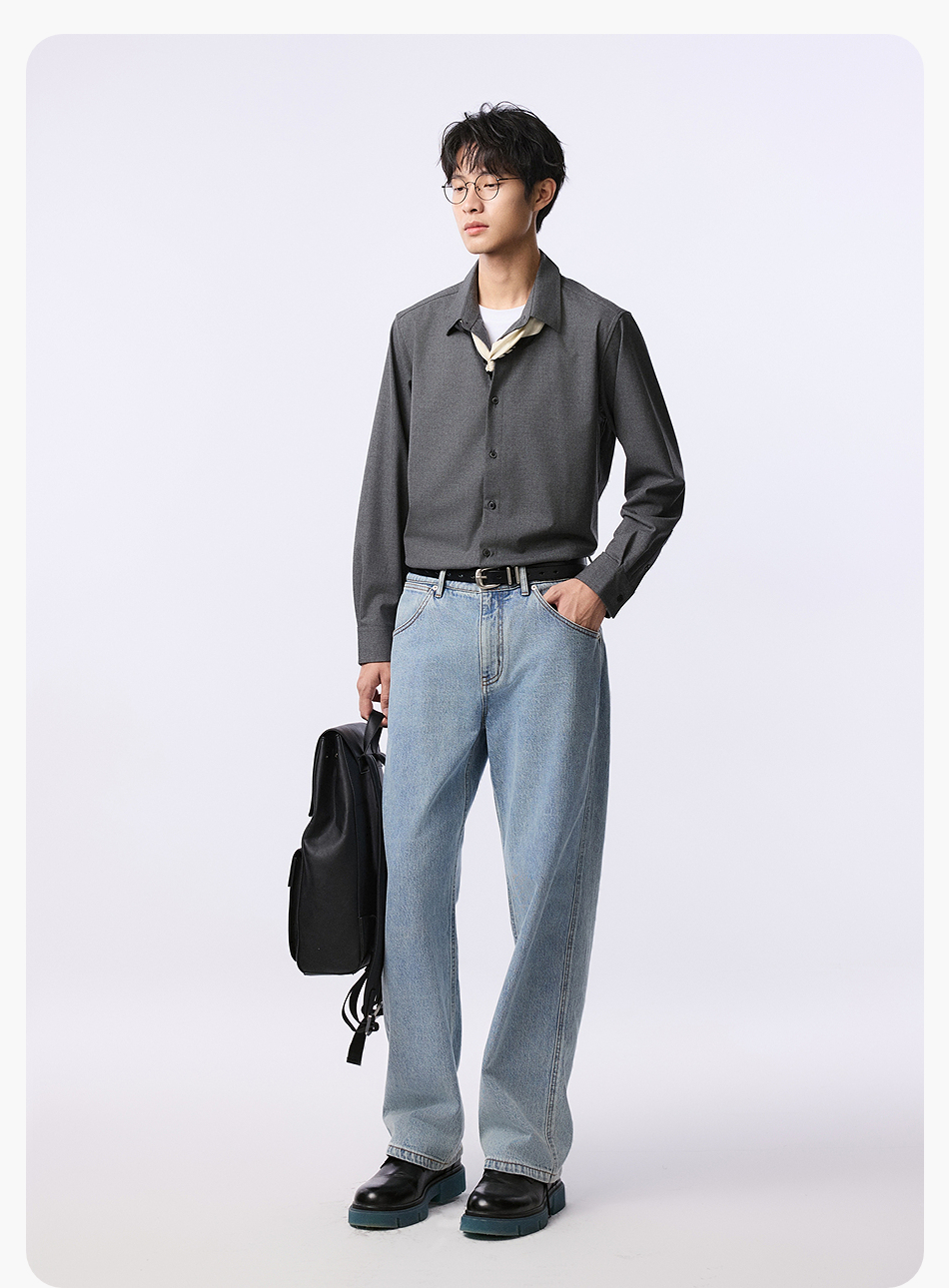 棉仓356804001-合体正肩版含羊毛TR弹翻领长袖衬衫