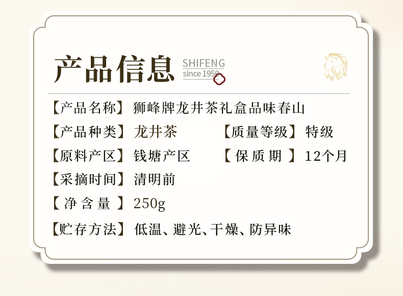 2026年新茶预定狮峰牌龙井茶品味特级5A 250g纸包
