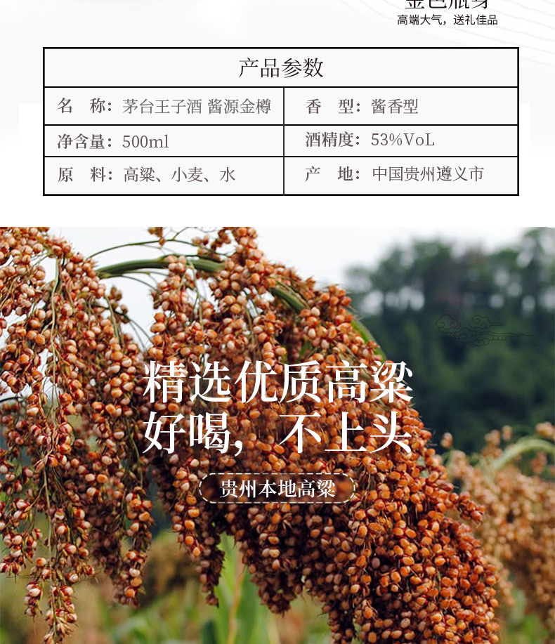 茅台王子 酒酱源金樽 酱香型白酒 500ml 53度