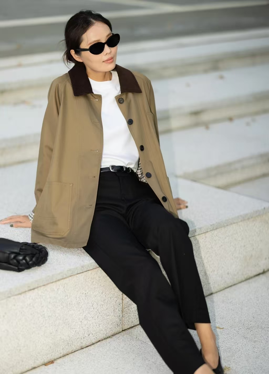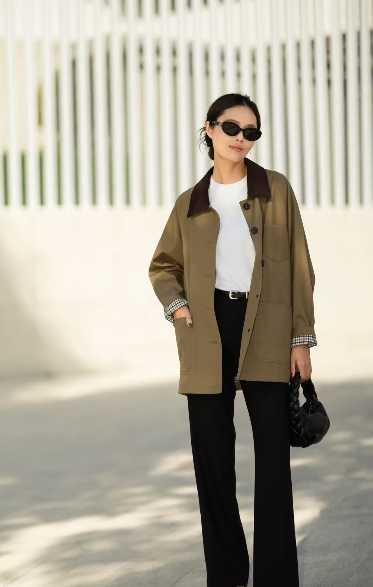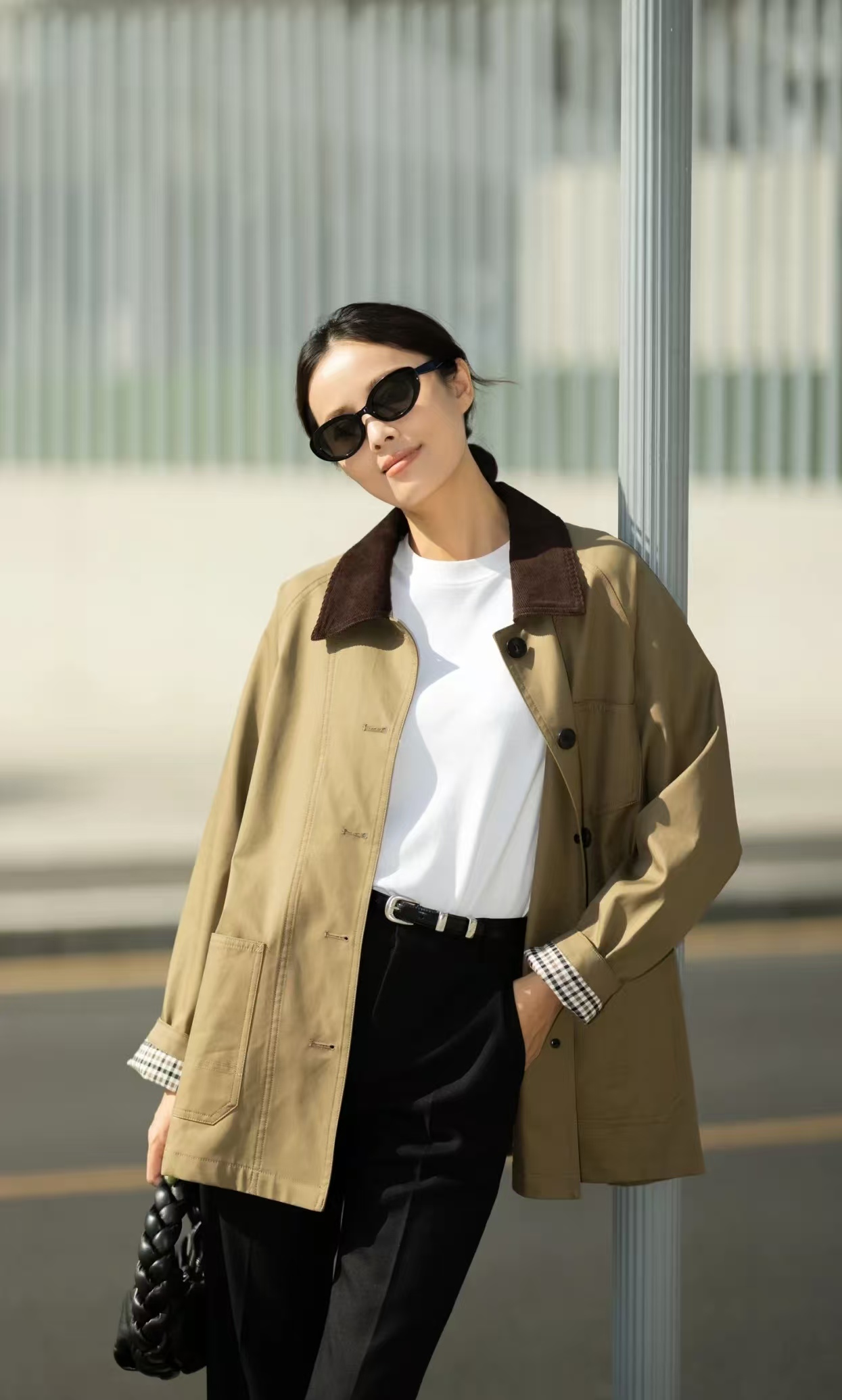 小翻领的设计简约大气修饰出纤细的脖颈与精致的小V脸