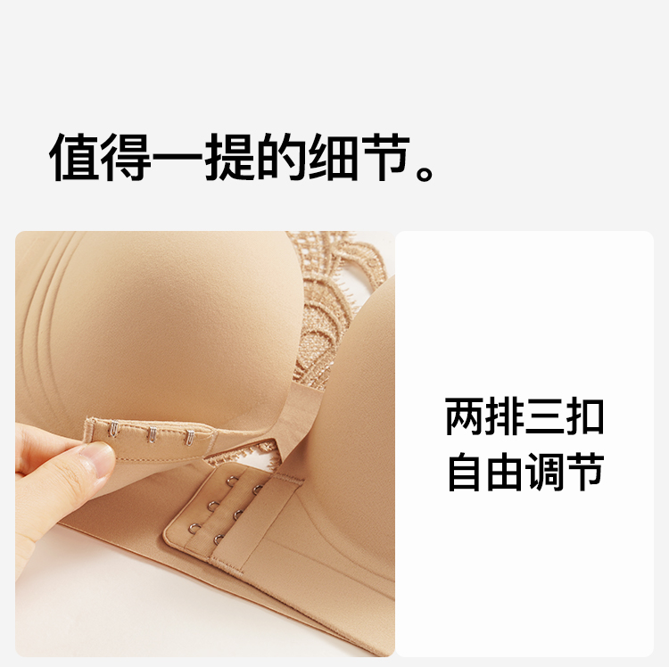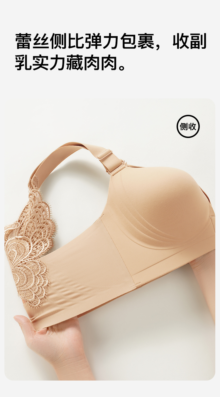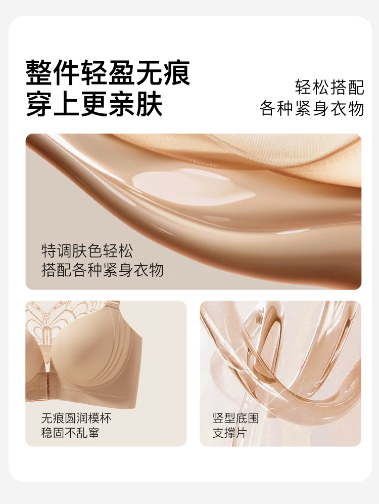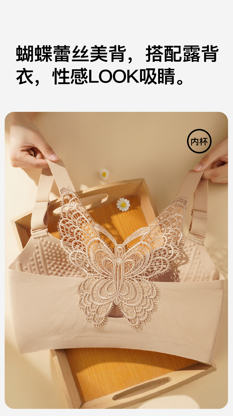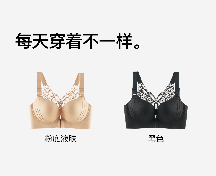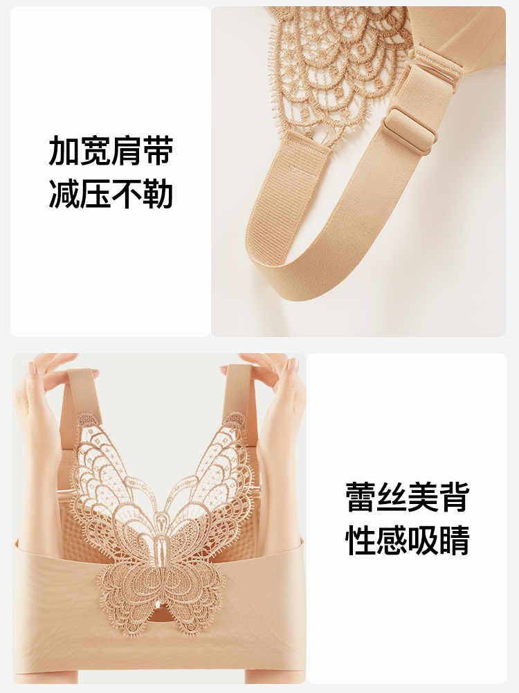【隐形粉底液】内衣女大码前扣性感蝴蝶蕾丝美背文胸舒压按摩杯盈然花语