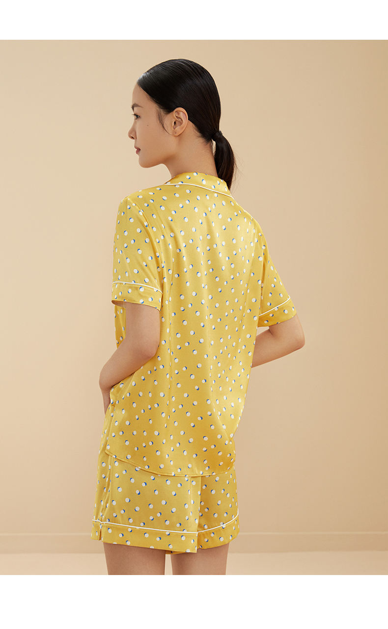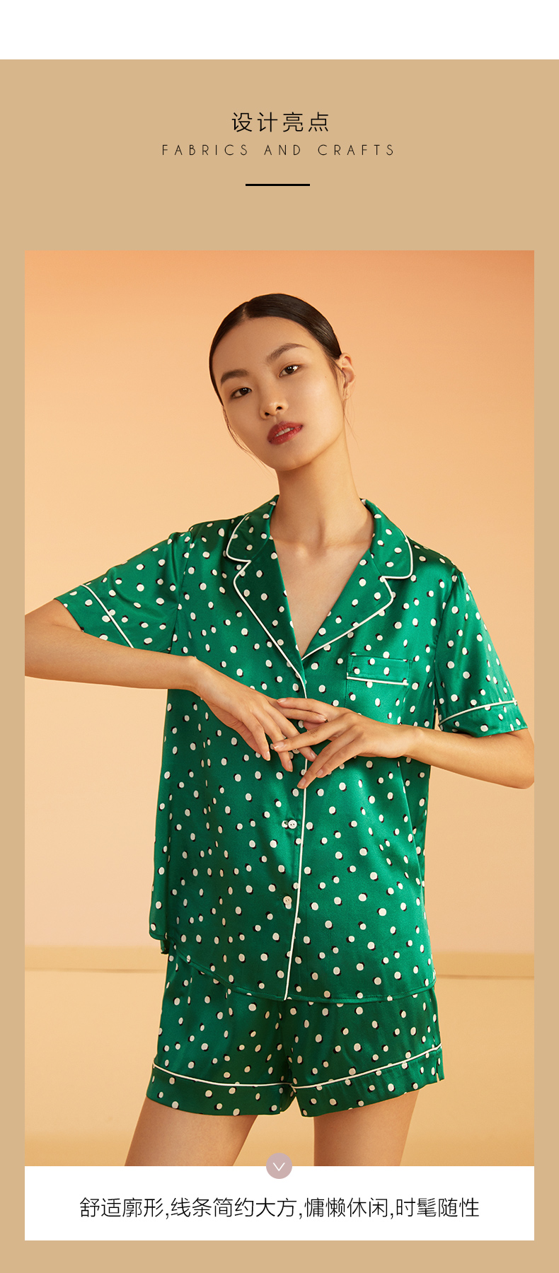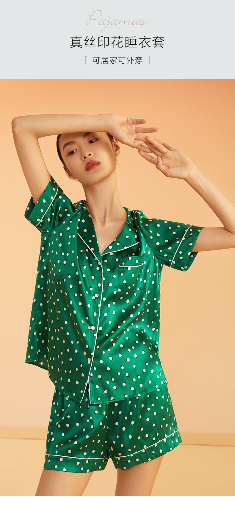 金三塔桑蚕丝新品弹力印花可外穿小翻领衣裤套短袖短裤睡衣女YSFBB411