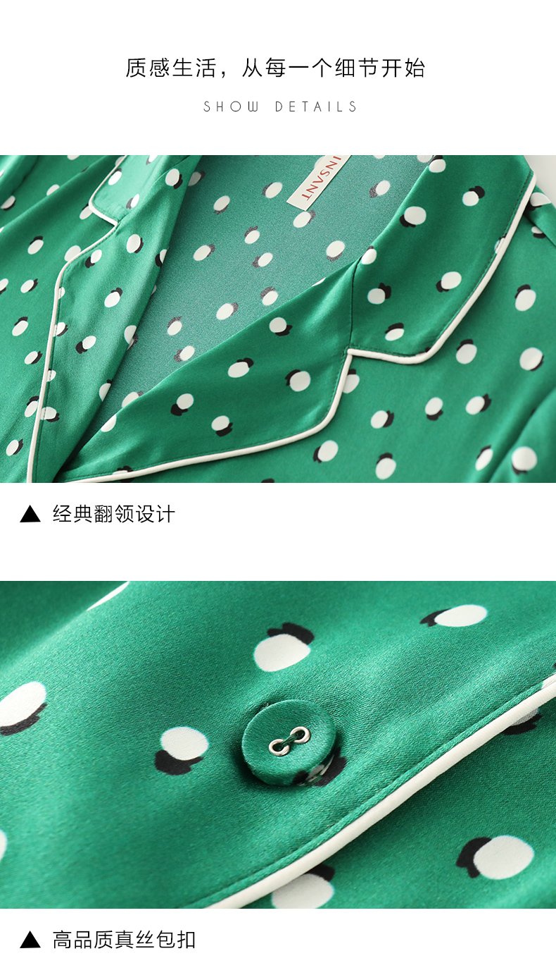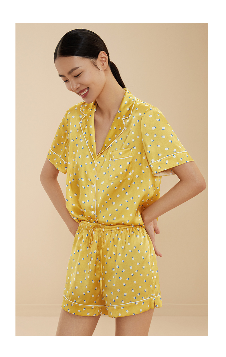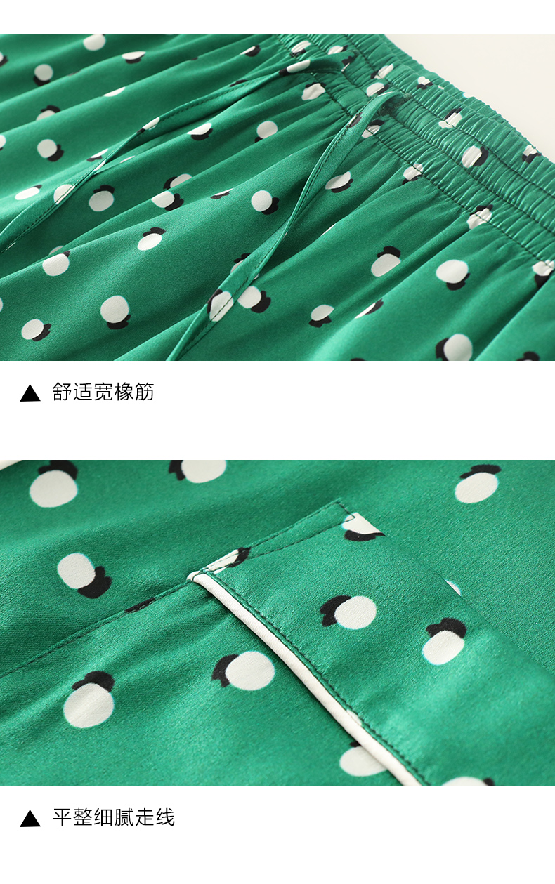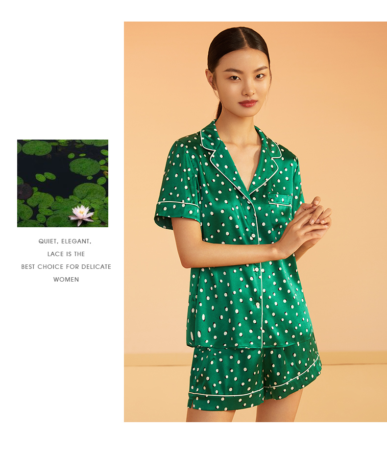 金三塔桑蚕丝新品弹力印花可外穿小翻领衣裤套短袖短裤睡衣女YSFBB411