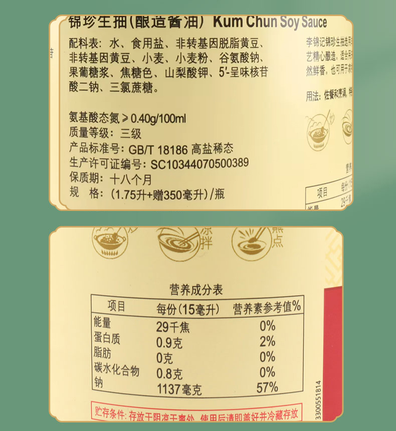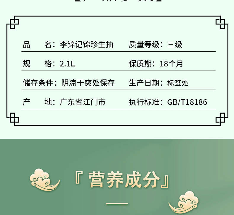 李锦记锦珍生抽2.1升加量装酿造酱油家炒菜凉拌提鲜调味料
