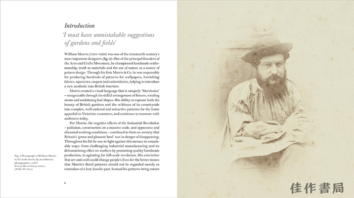这本设计精美、价格实惠的礼品书提供了 Morris 的丰富设计,其中鲜花是主要主题。文字追溯了莫里斯以花卉为基础的设计的起源:他在肯特郡红房子的自己的花园;16 世纪和 17 世纪的草药;插图中世纪手稿;中世纪晚期和文艺复兴时期的挂毯;以及莫里斯在南肯辛顿博物馆(现为维多利亚和阿尔伯特博物馆)研究的一系列装饰物品,特别是来自伊斯兰世界的装饰物品。