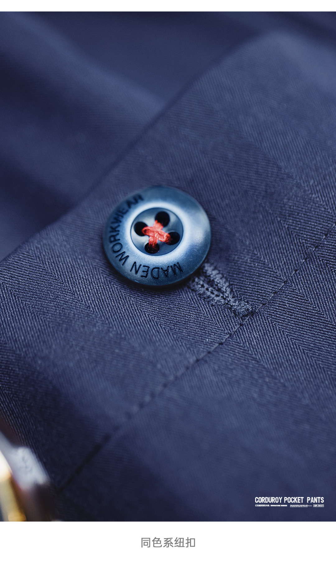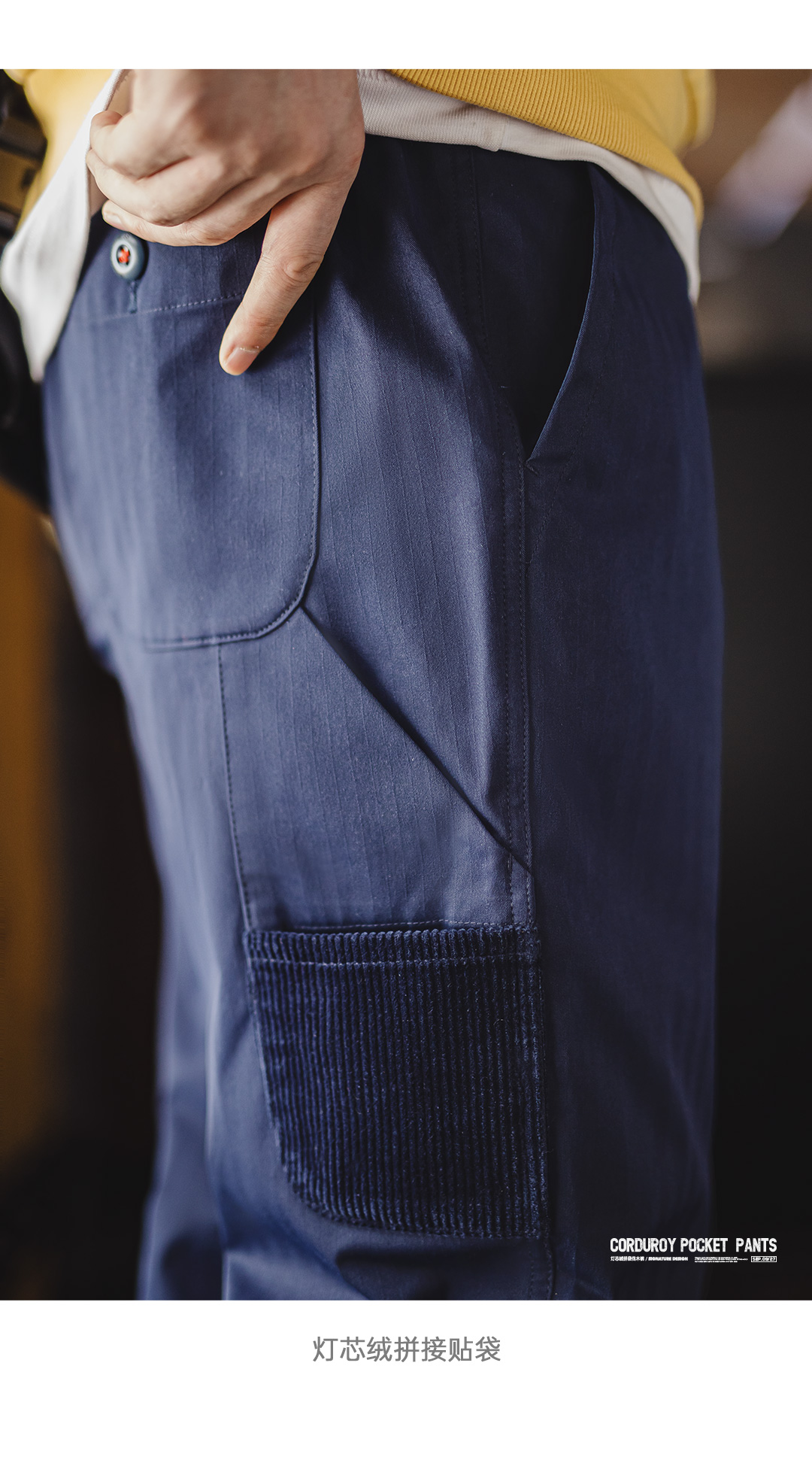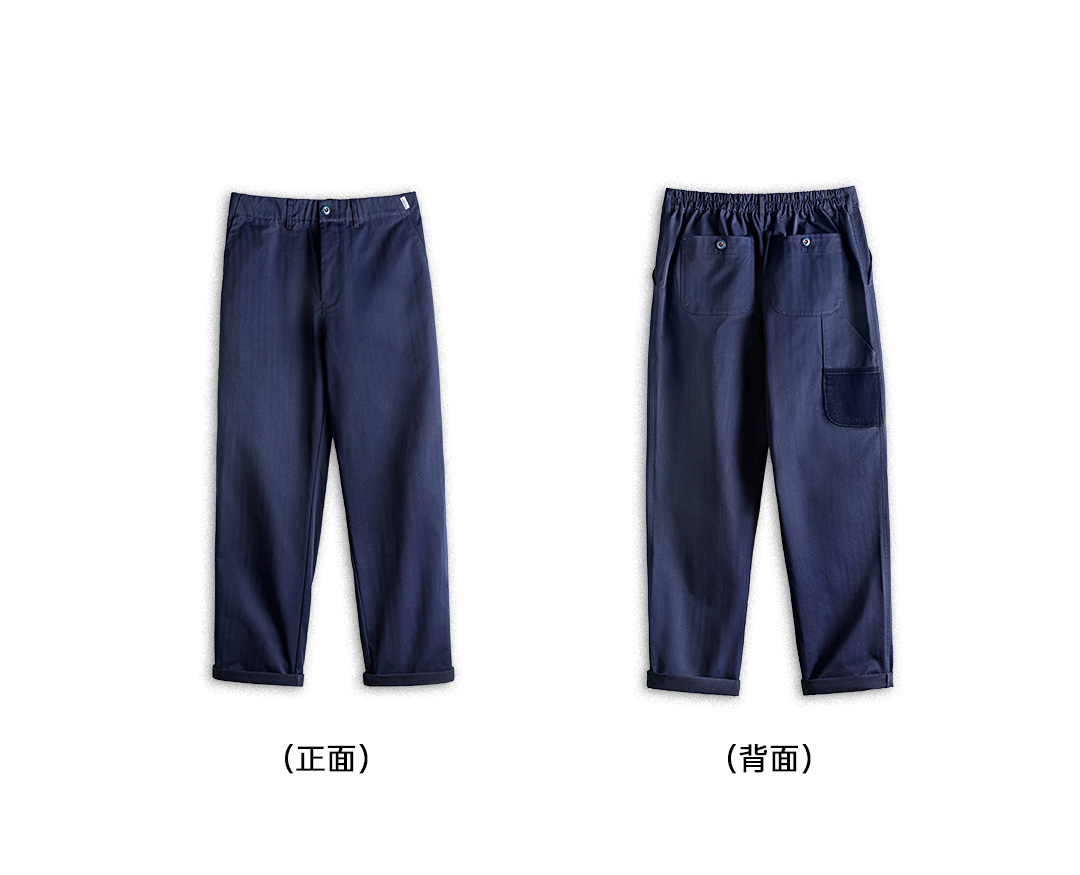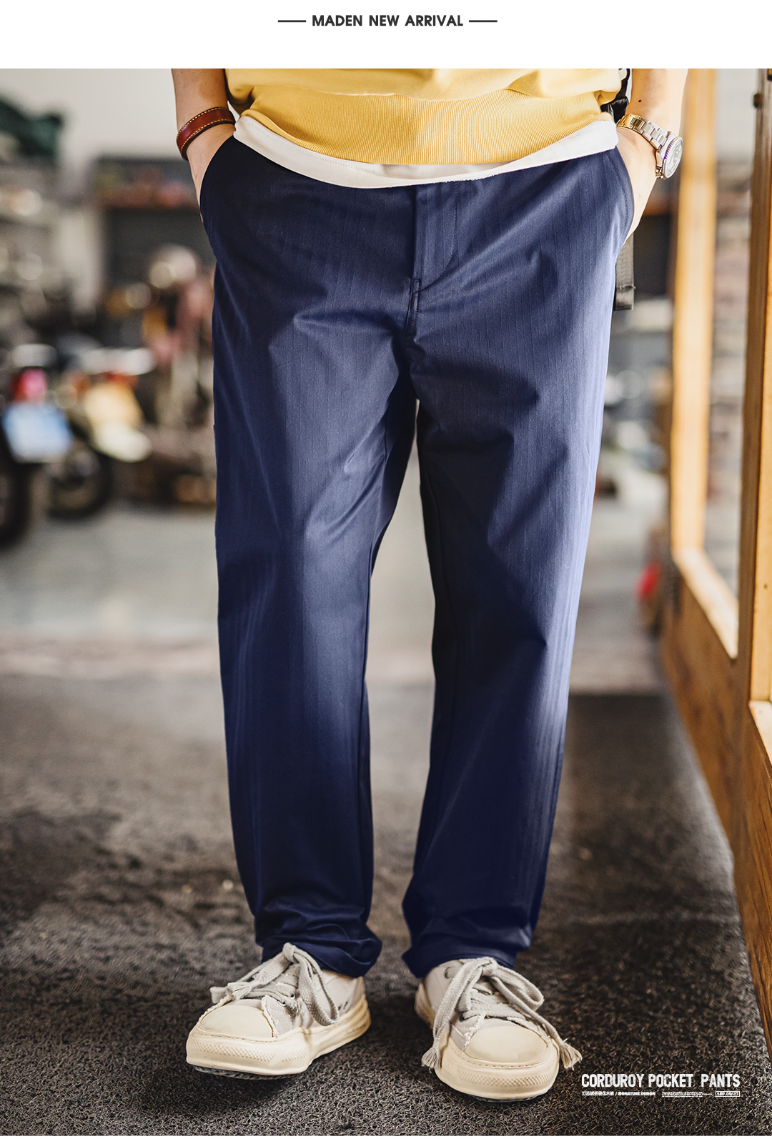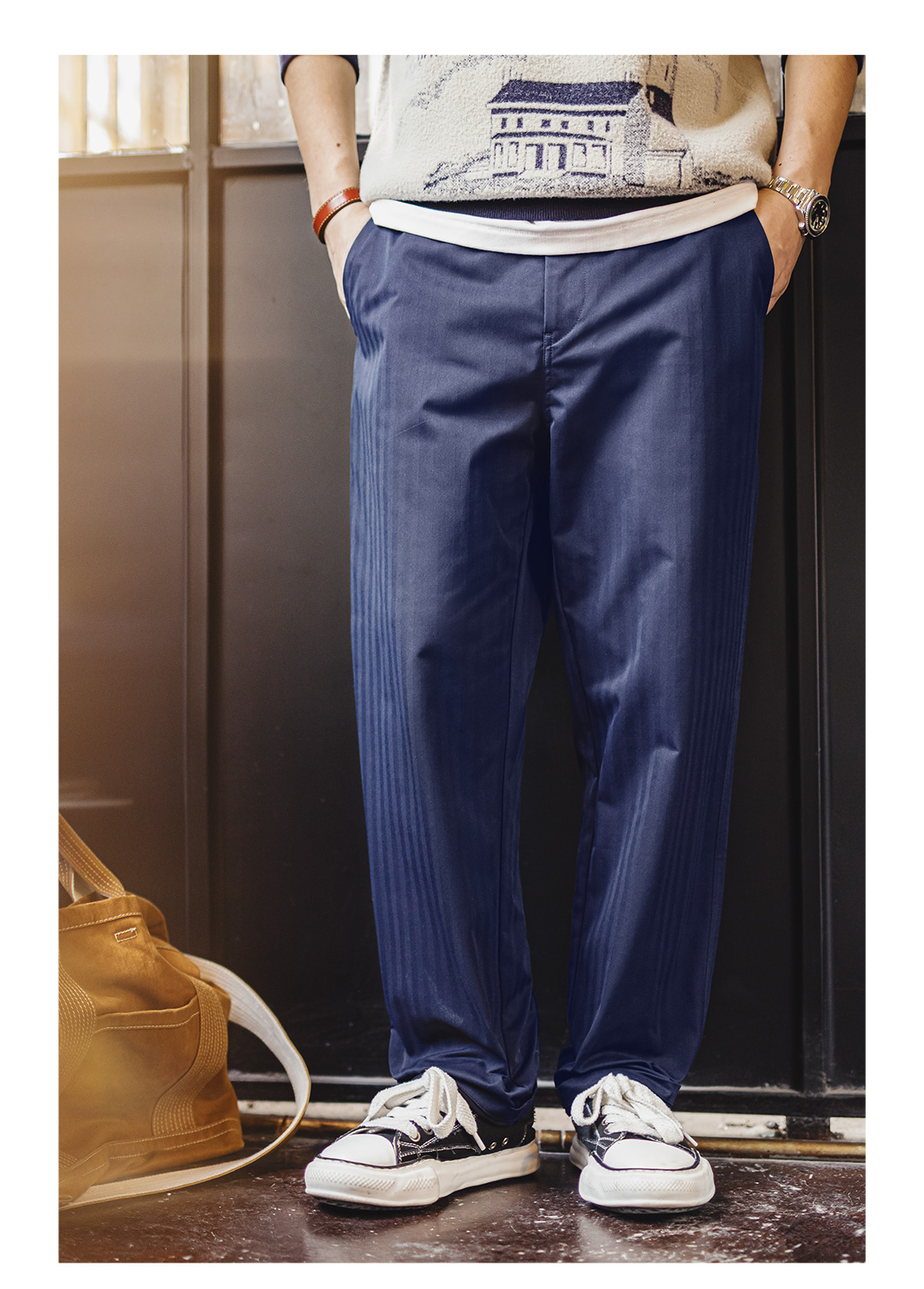 马登工装美式复古蓝色伐木裤直筒微锥松紧腰人字纹休闲长裤子男秋