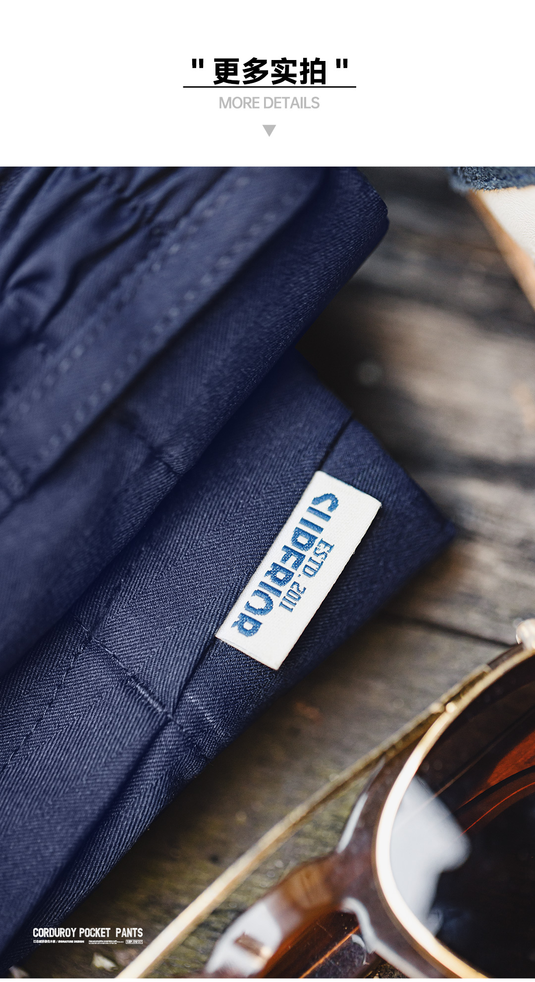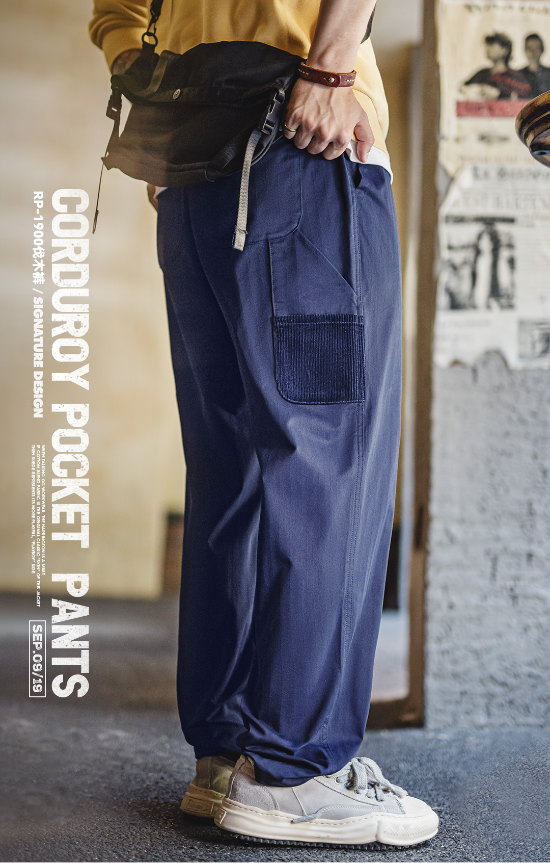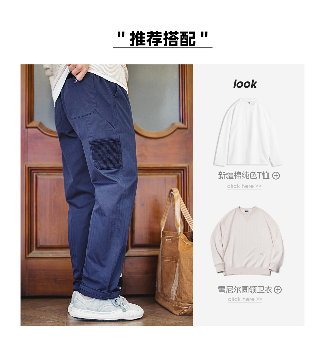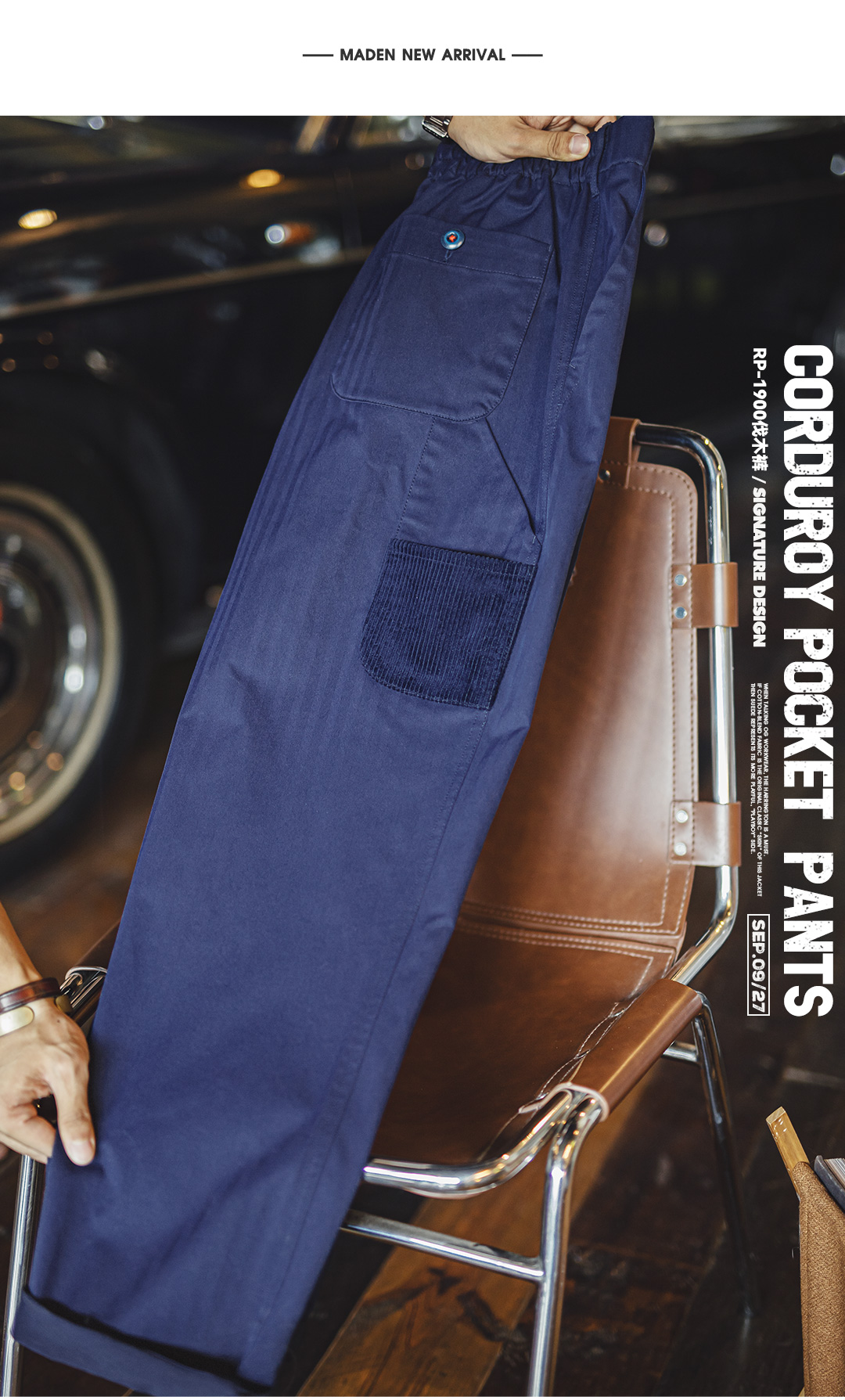 马登工装美式复古蓝色伐木裤直筒微锥松紧腰人字纹休闲长裤子男秋