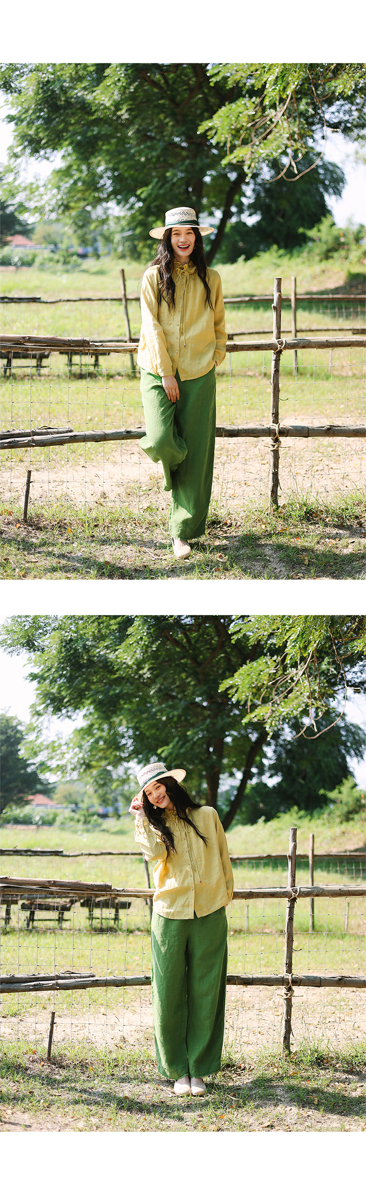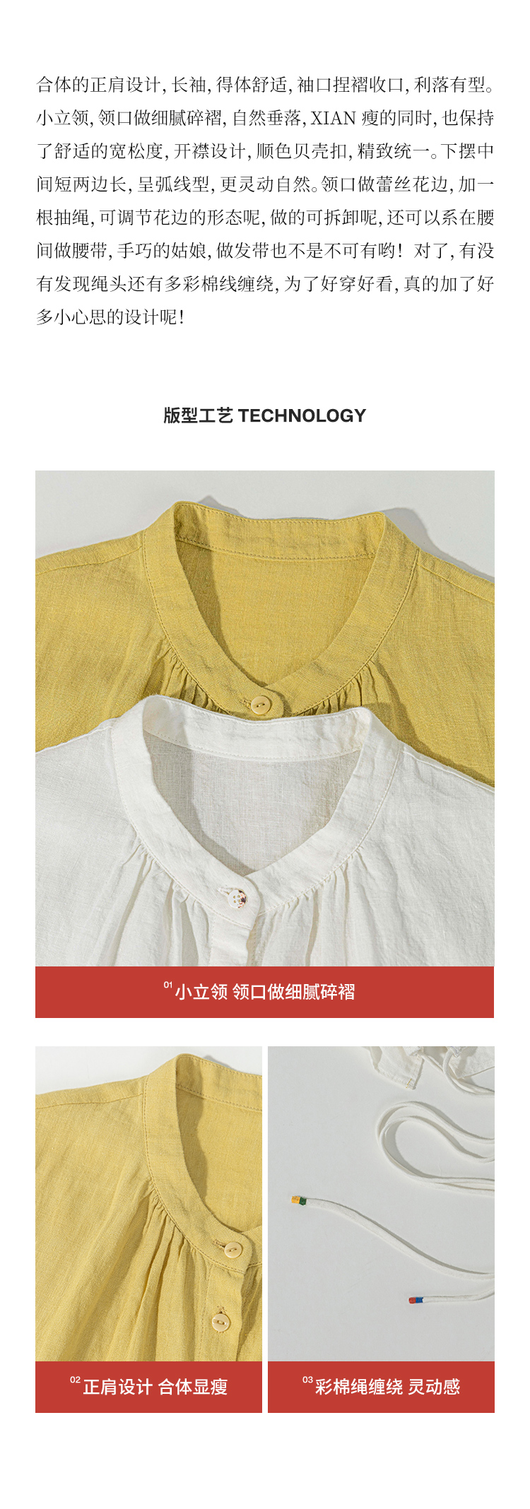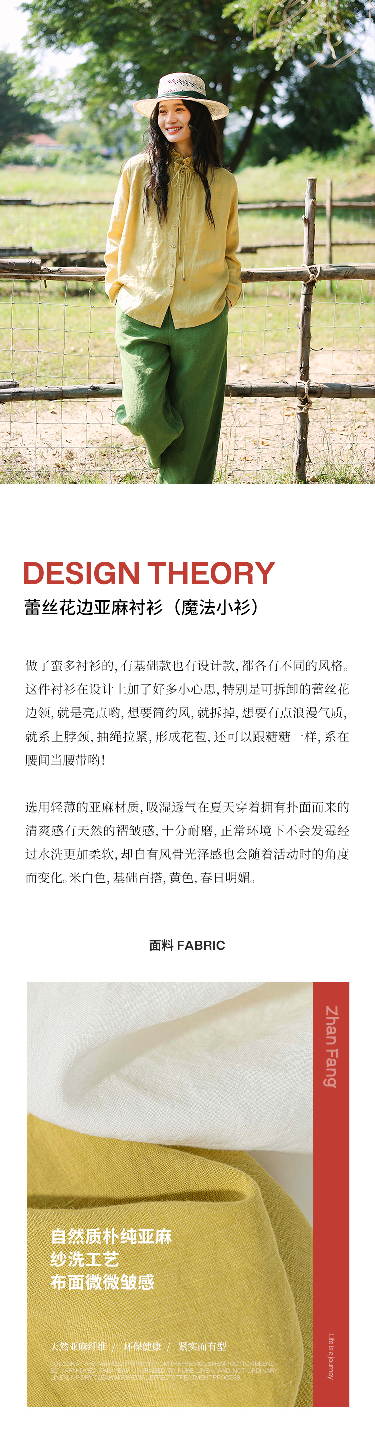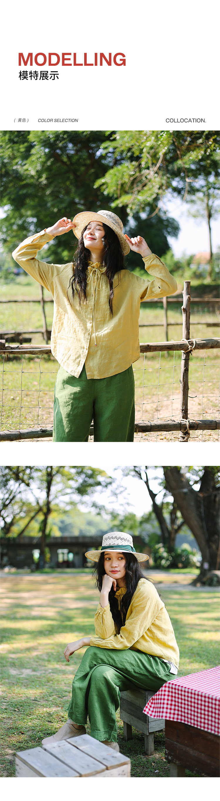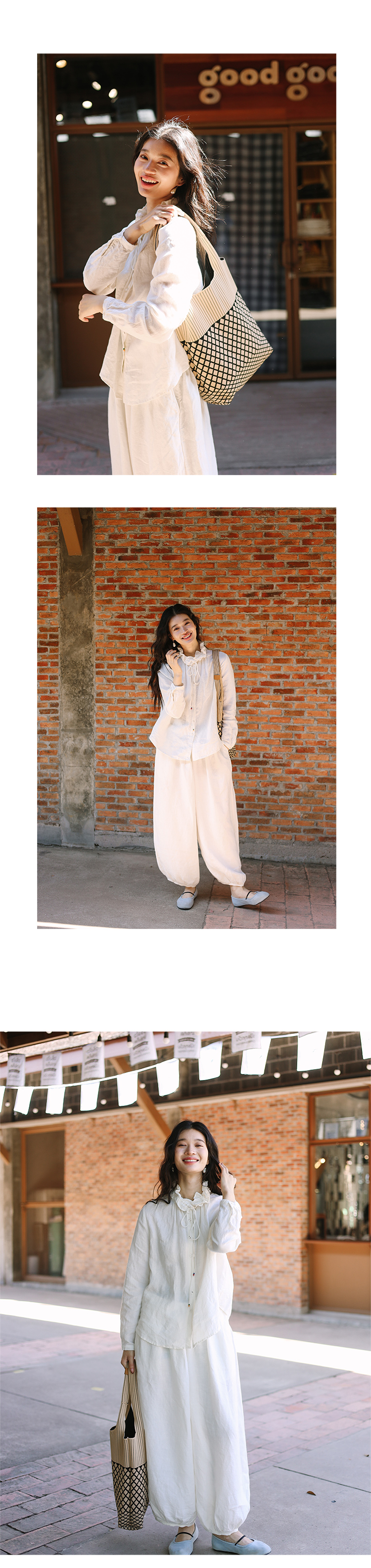 绽放旅行女装108朵/亚麻可拆卸蕾丝花边领正常肩长袖开襟简约衬衫