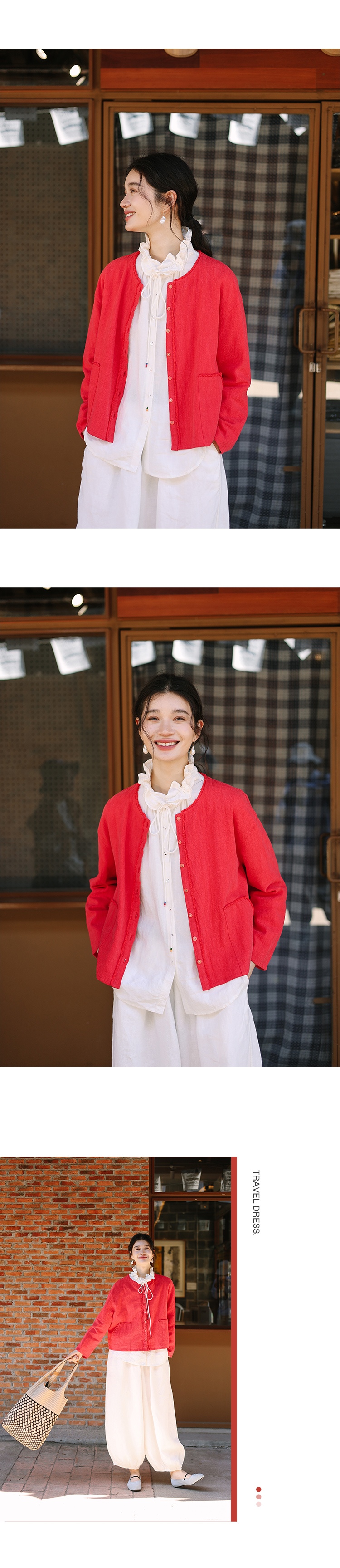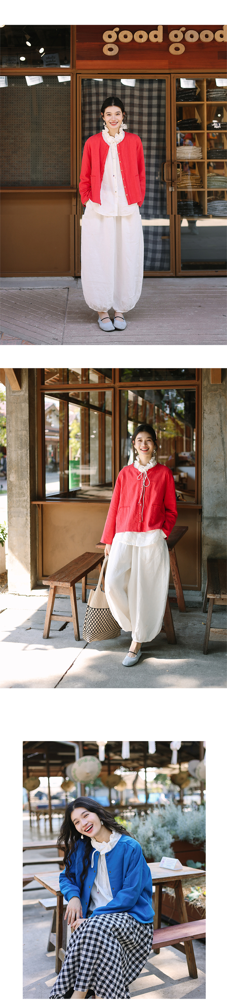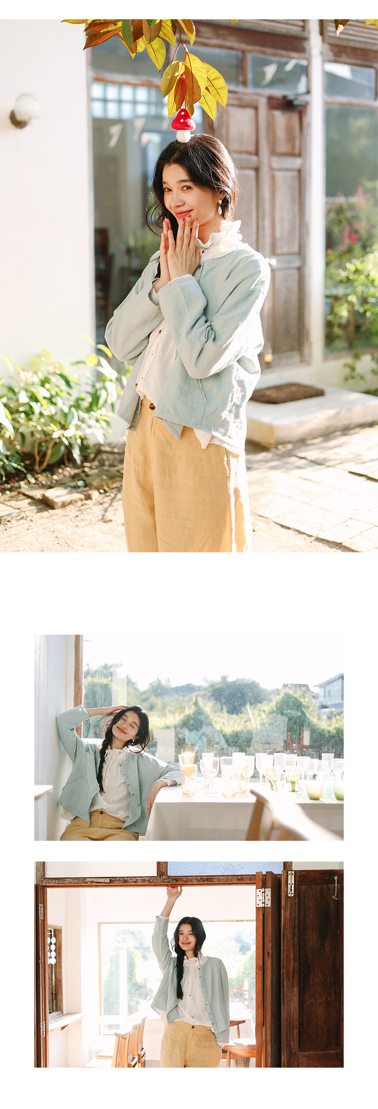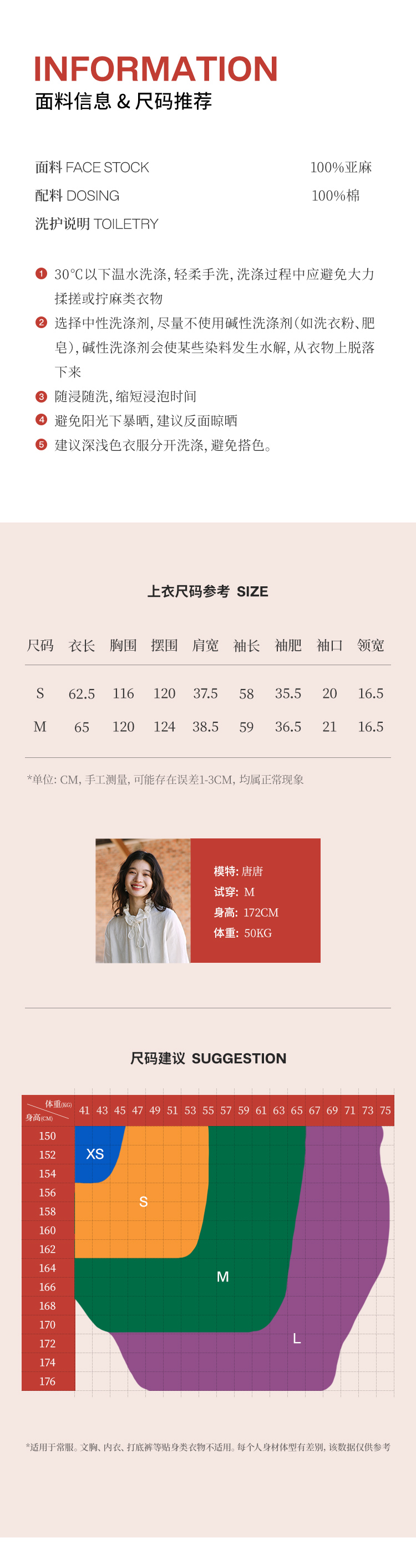 绽放旅行女装108朵/亚麻可拆卸蕾丝花边领正常肩长袖开襟简约衬衫