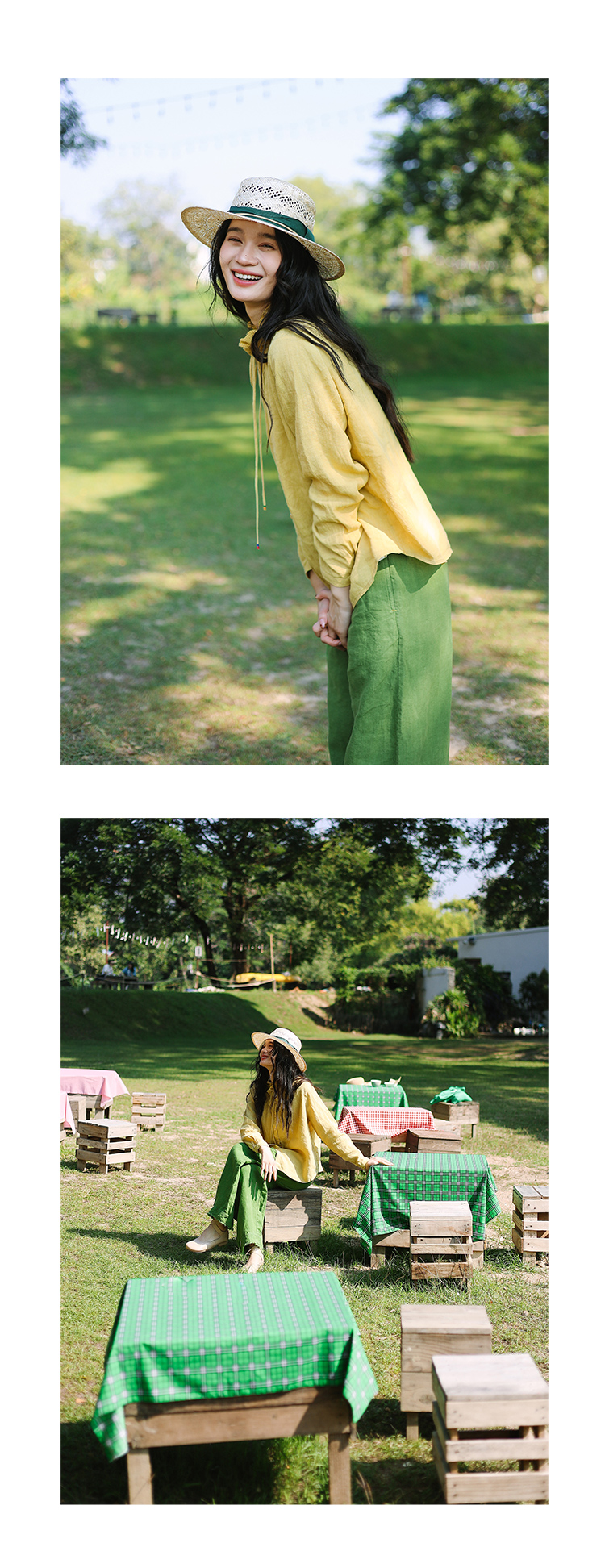 以天然亚麻为载体,融合热烈色彩与自在剪裁为身在城市、心怀远方的女性提供兼具美学与舒适的旅行着装