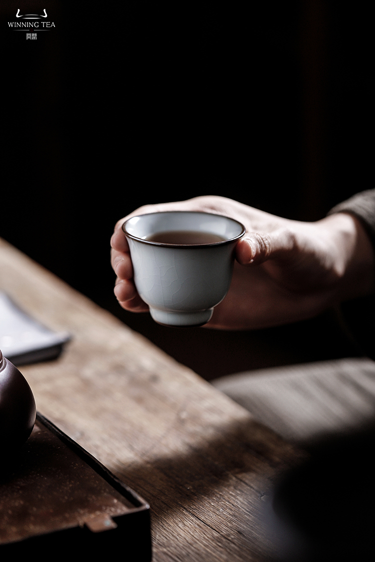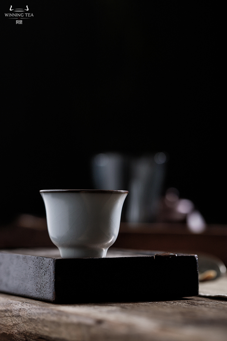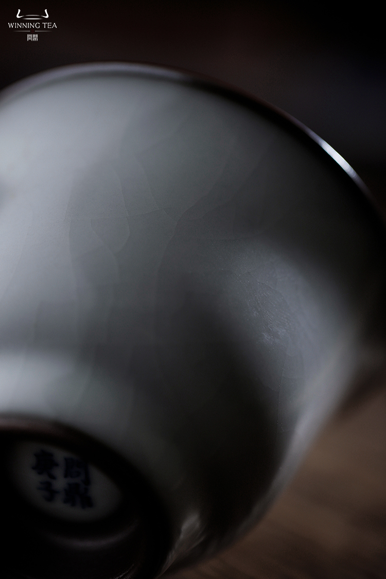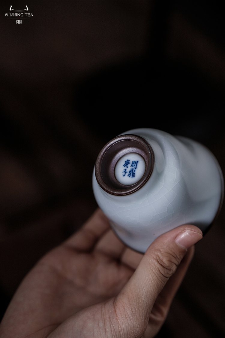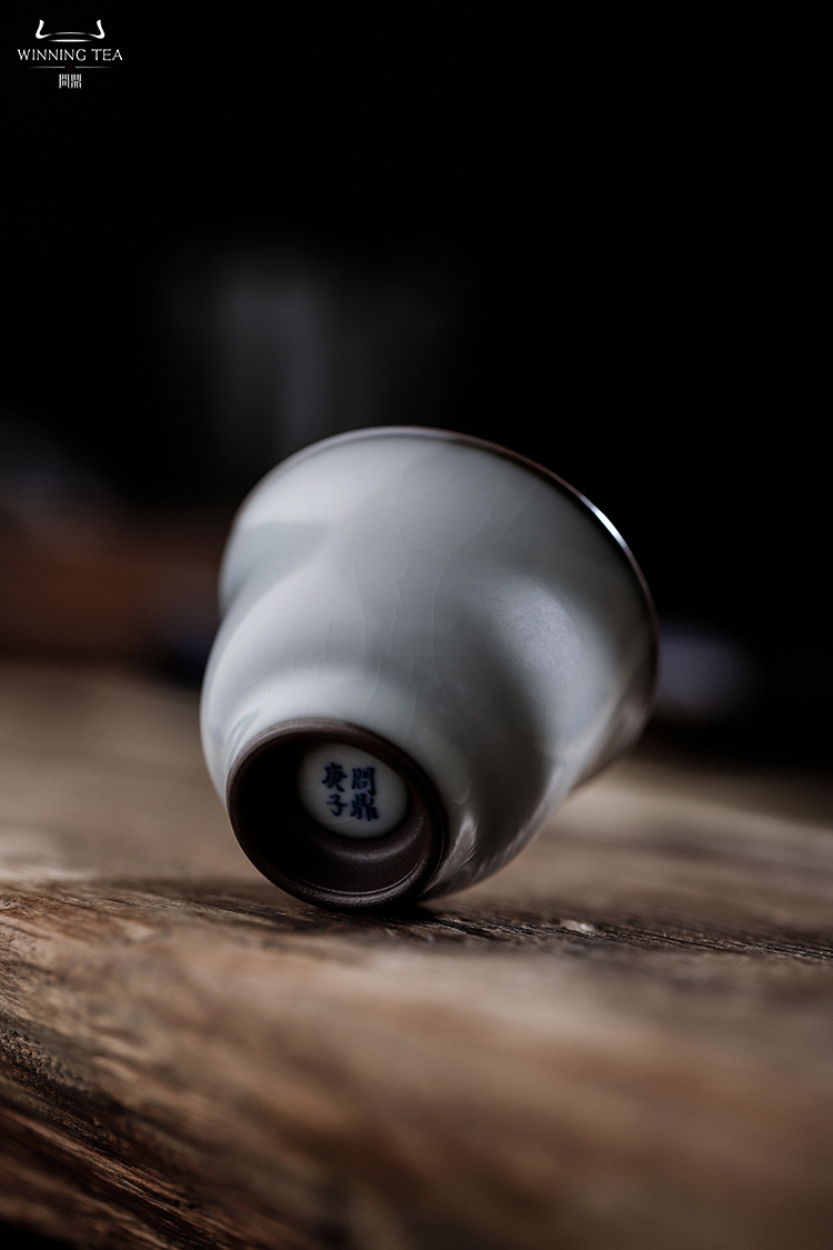 问鼎留青天青精工款听泉杯大(柴窑绘画描金鱼跃龙门)