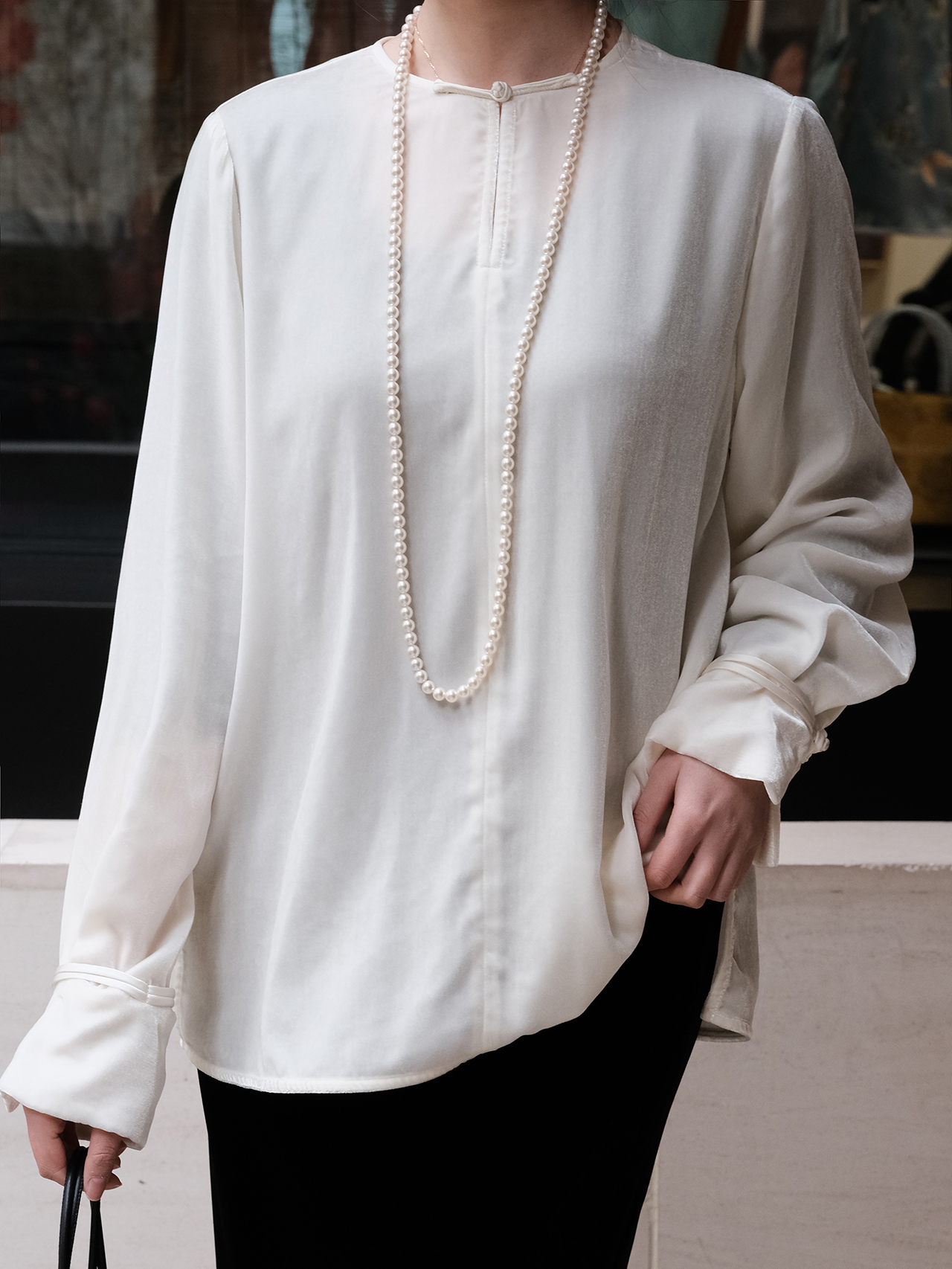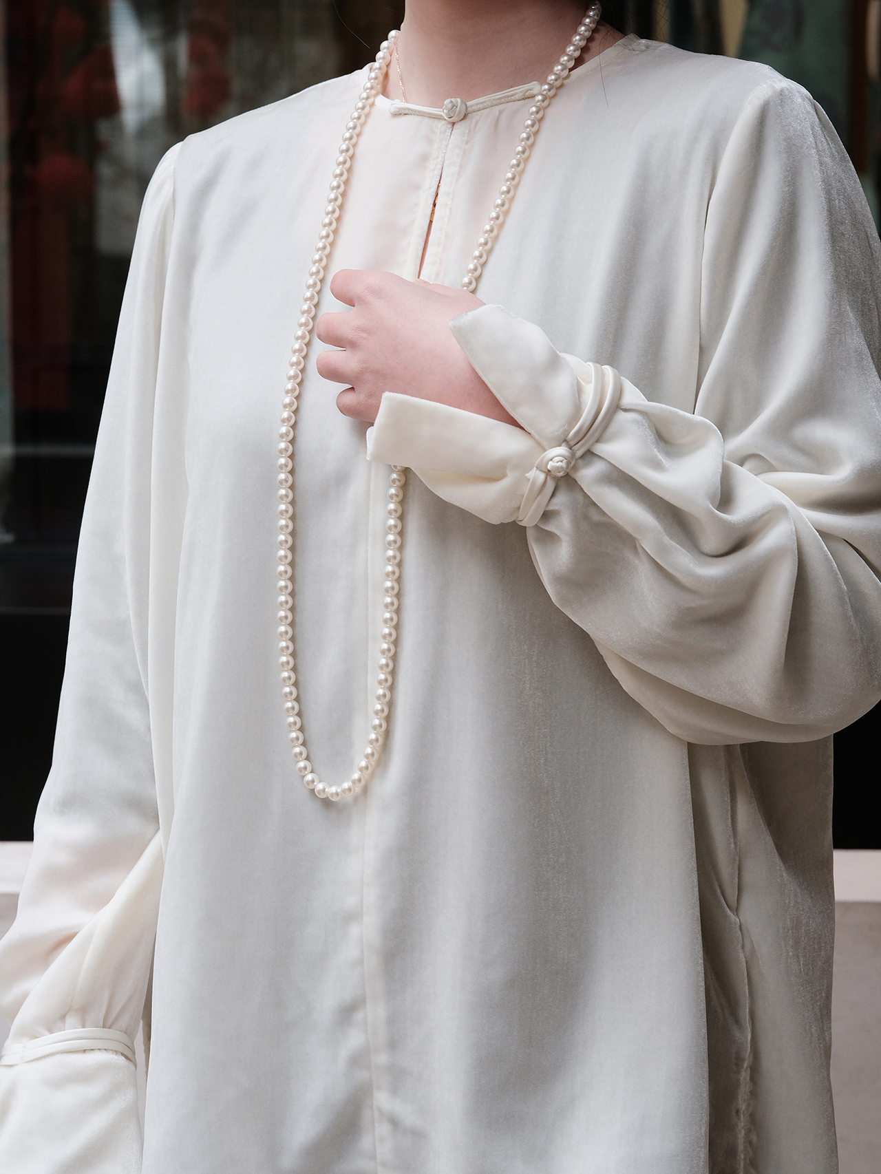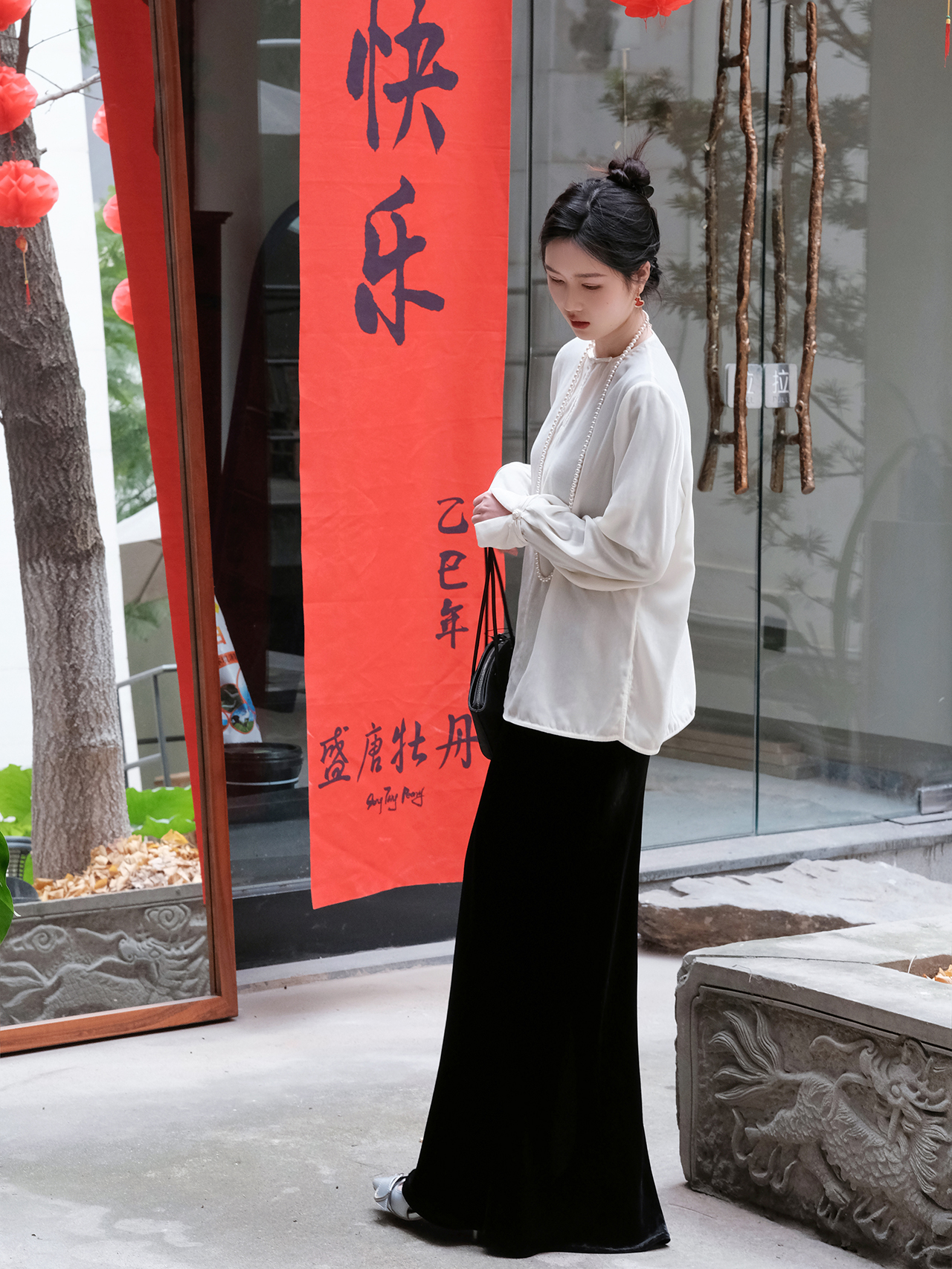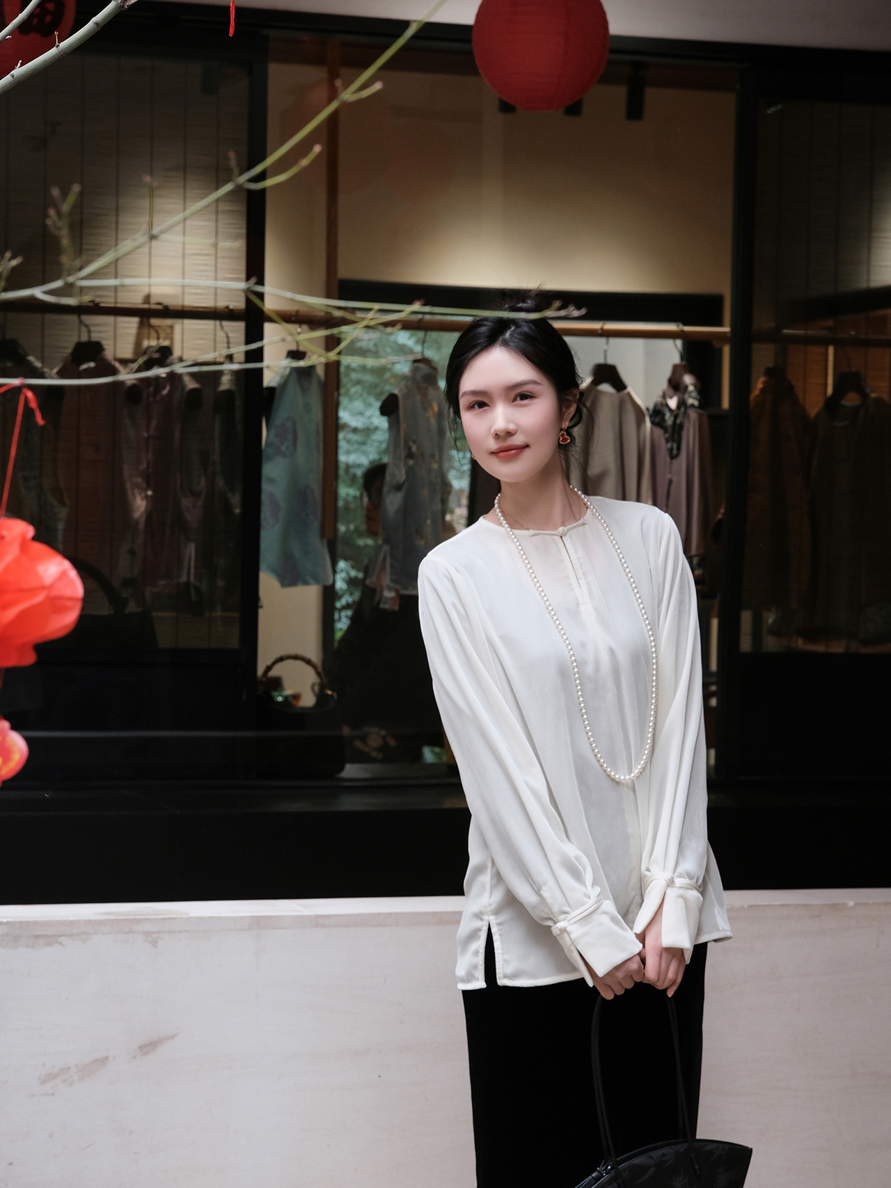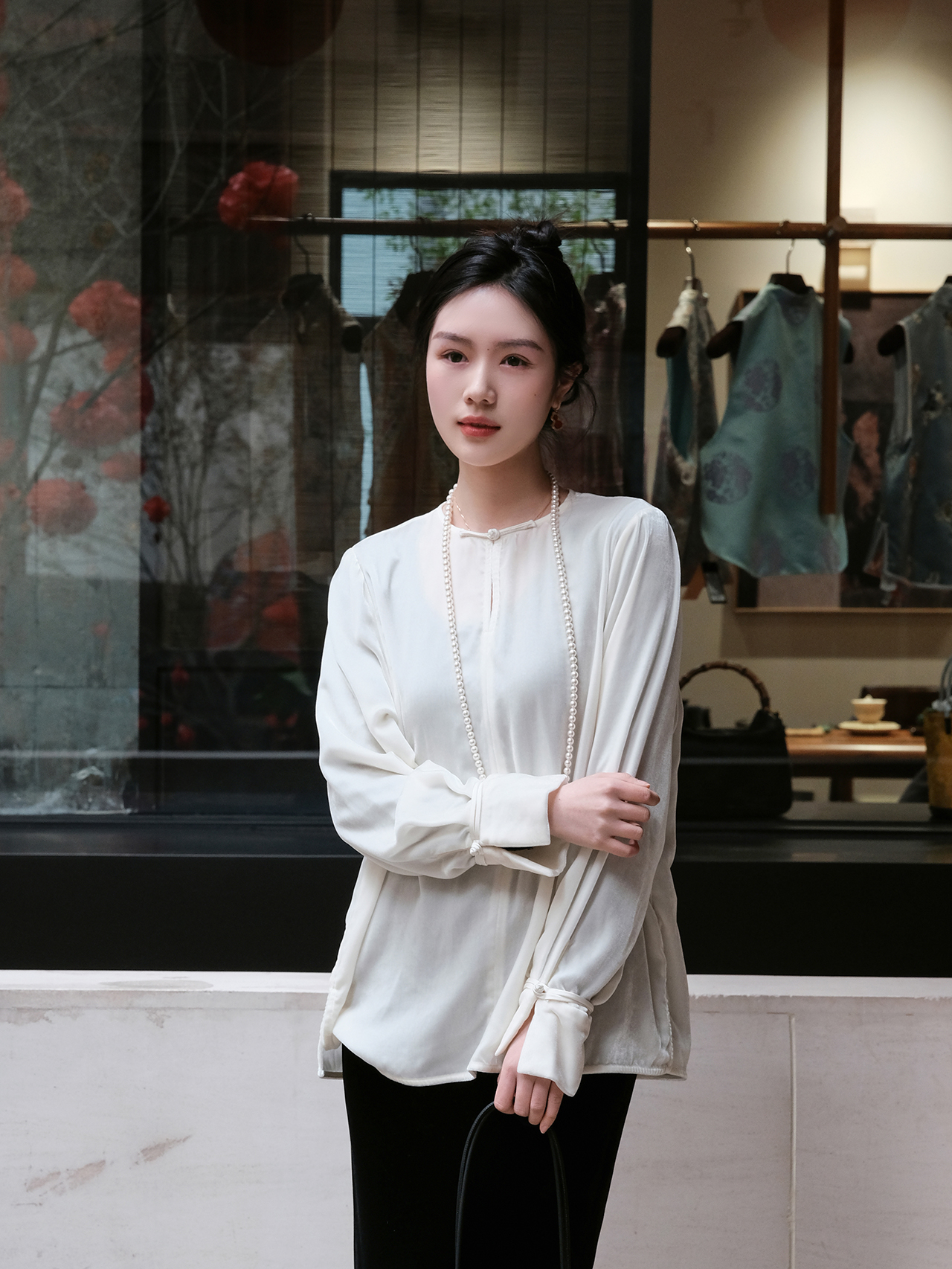 盛唐婧| 新中式真丝丝绒上衣-白色