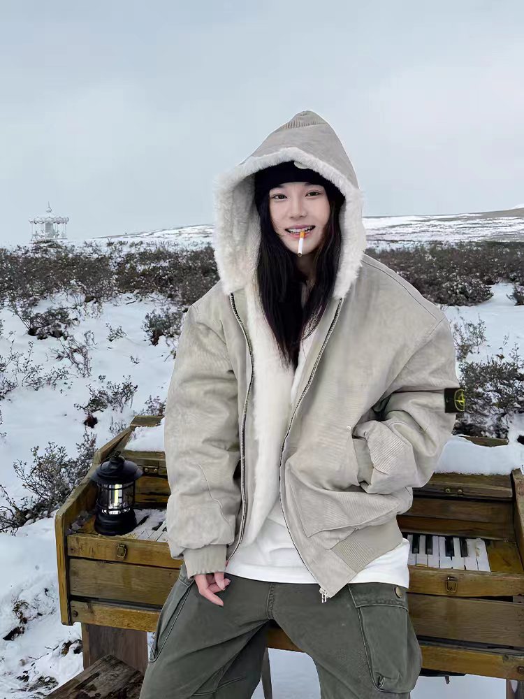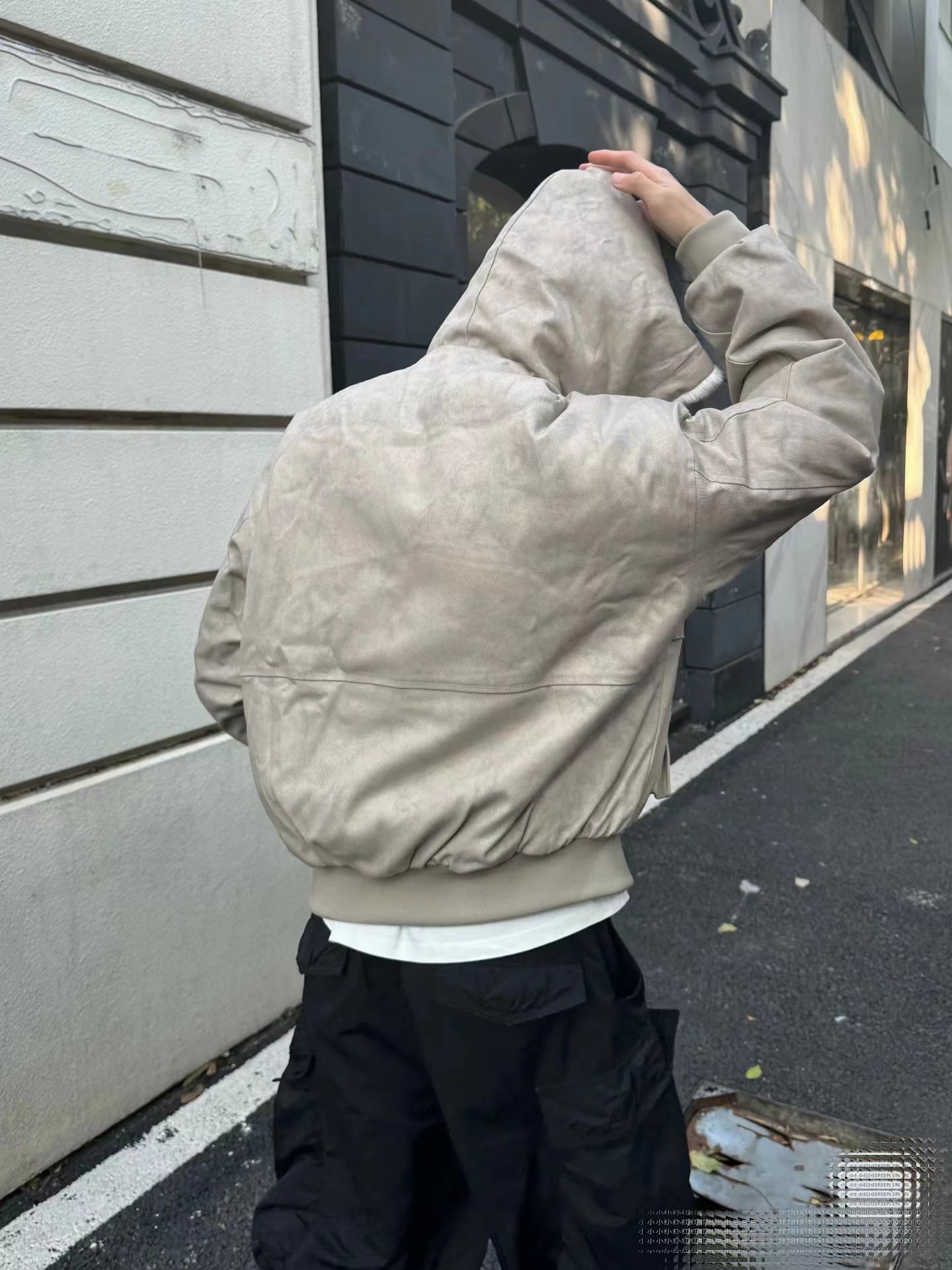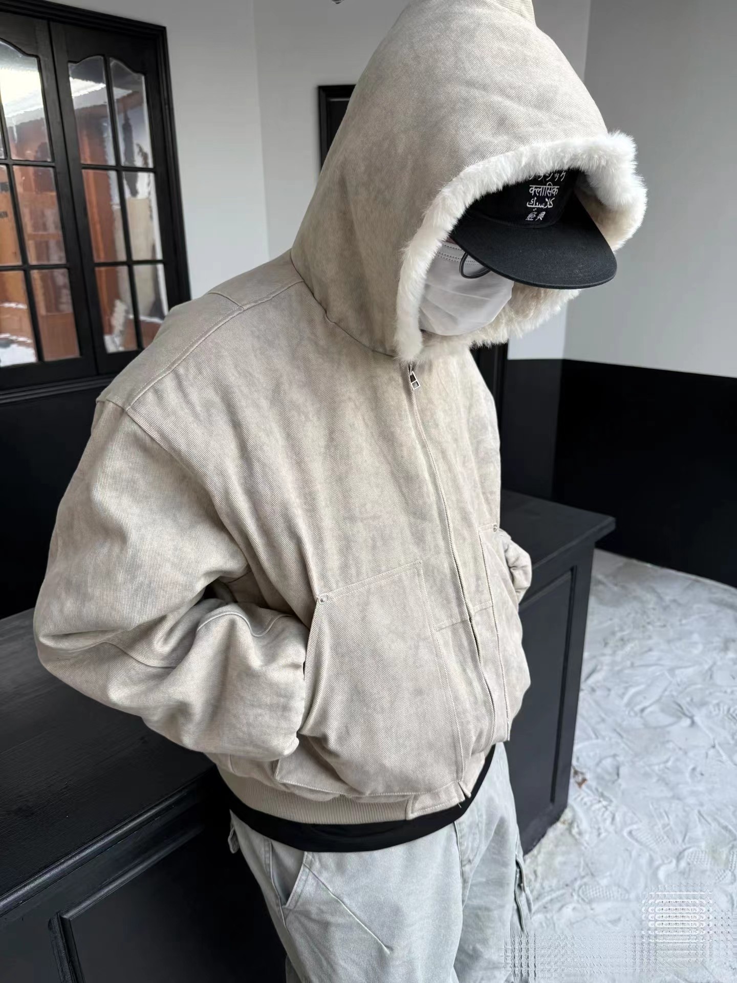 新款“一件过冬”1500g仿水貂毛大理石座山雕连帽棉服cleanfit重磅帆布水洗夹克外套棉衣男女同款 面料选用我们精典的370克大理石暗纹斜纹全棉布,质感挺阔,纹理自然独特,成衣洗水处理,固位均匀褪色做旧面料更为粗旷/厚实/紧密,抗风保暖性更强 内里贴合1500克重磅精品人造水留毛,手感厚实,毛感柔顺亲肤 采用更为宽松的廓形版型,大体重福音 宽松连帽版型,满足通勤穿搭多种需求,兼顾造型感与保暖性