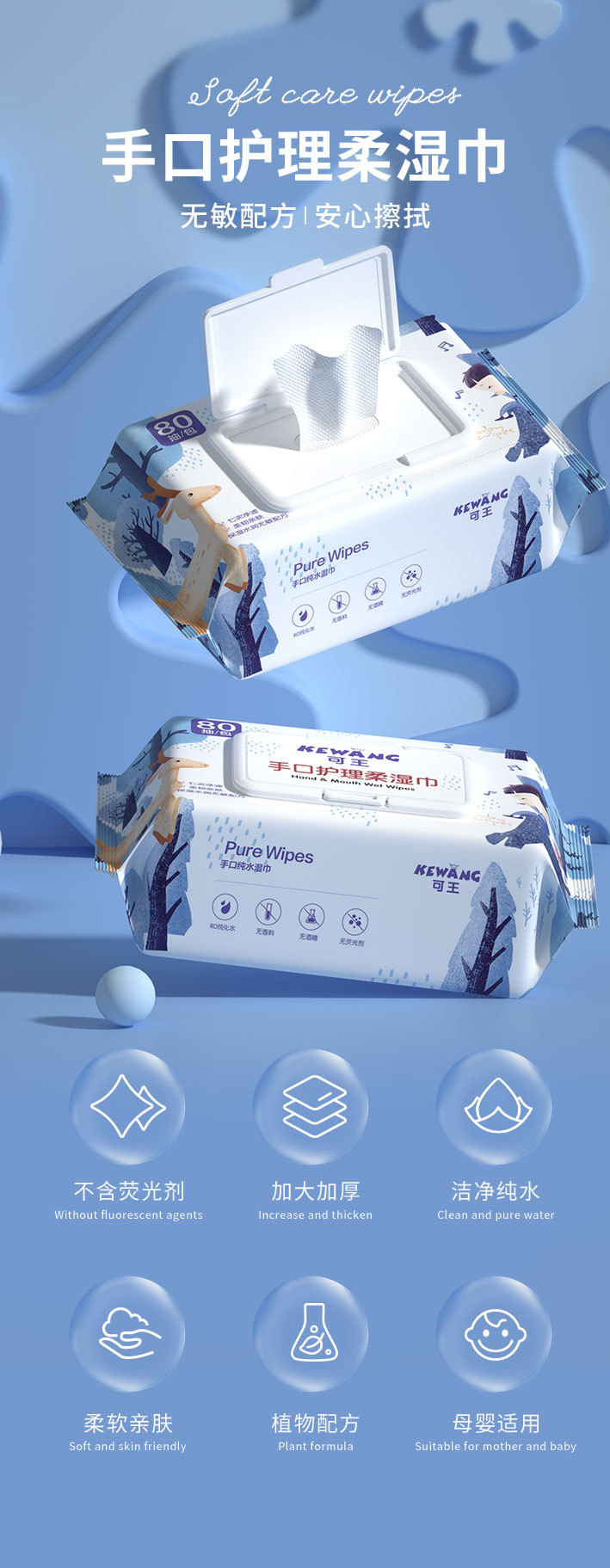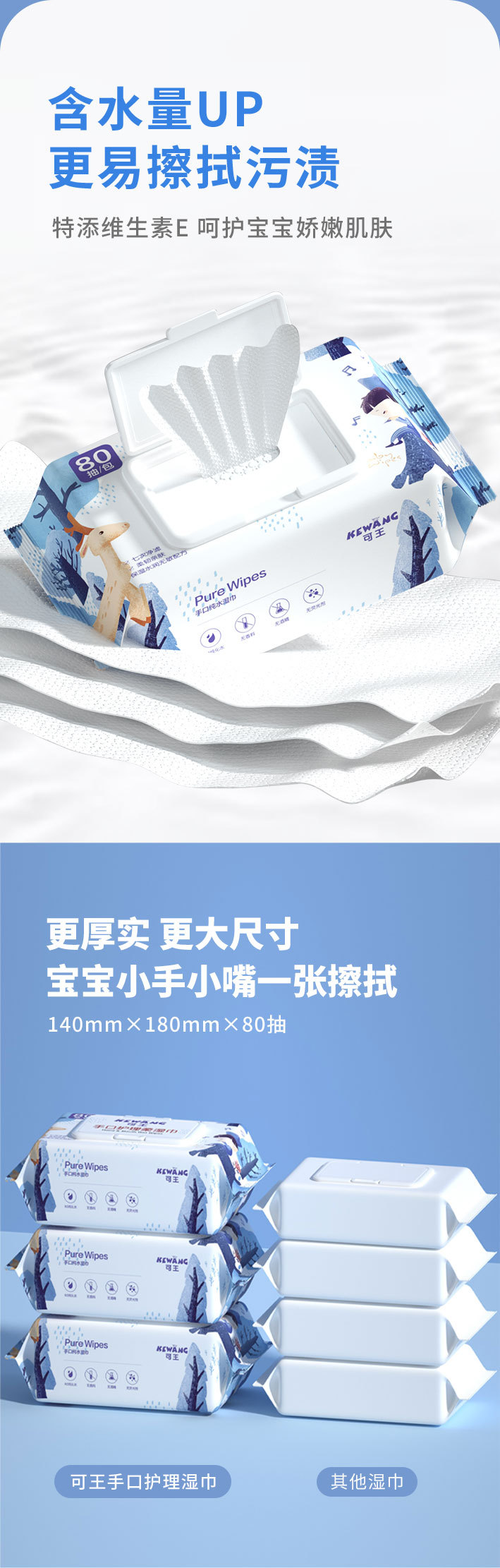 80抽大包湿巾手口清洁护理纯水婴儿湿巾纸一次性儿童宝宝湿纸巾