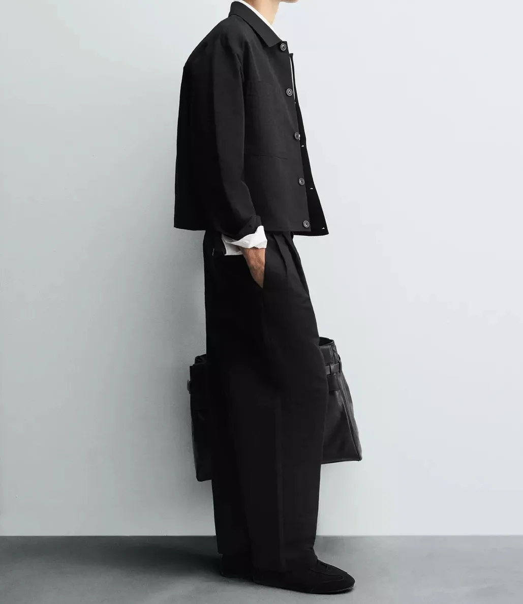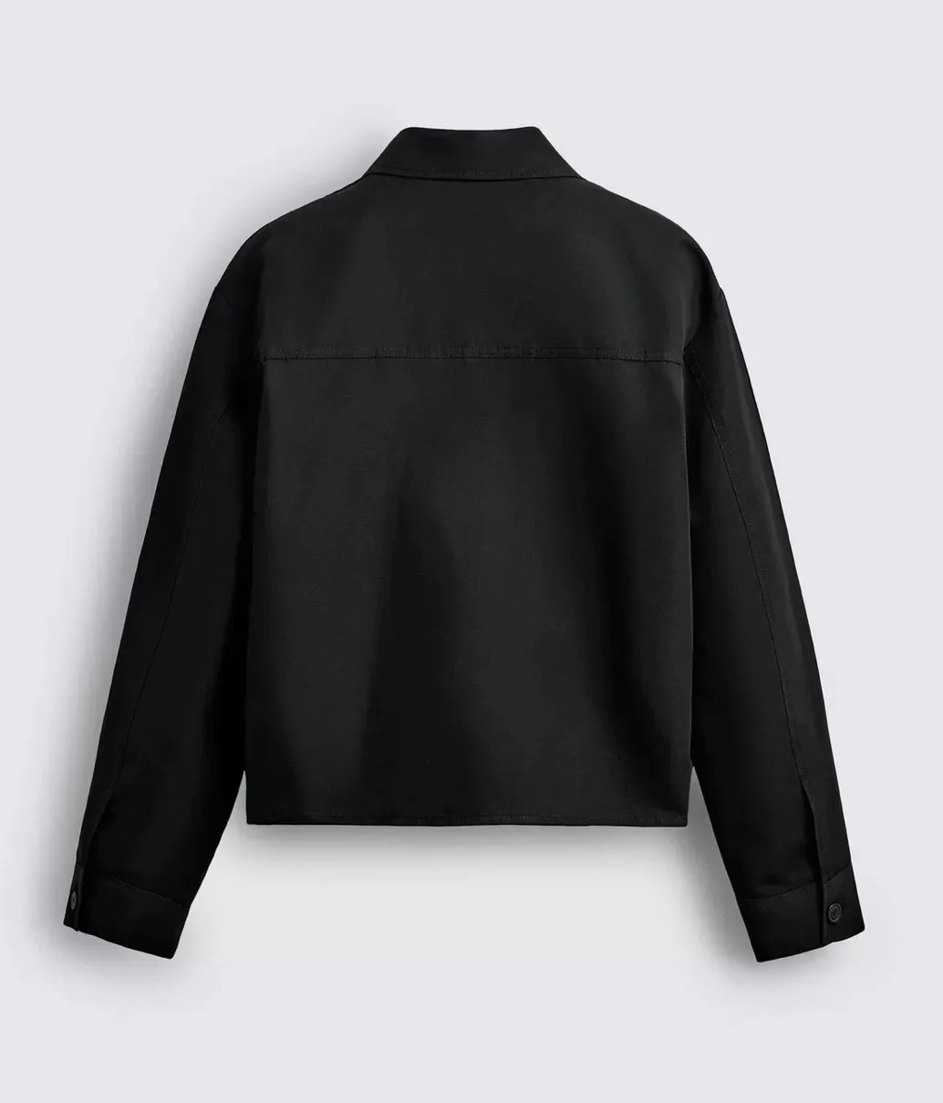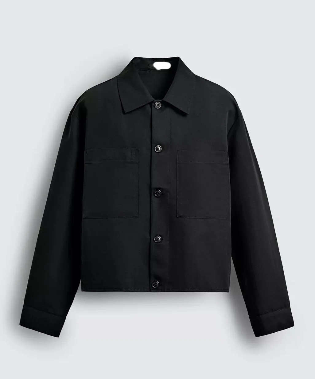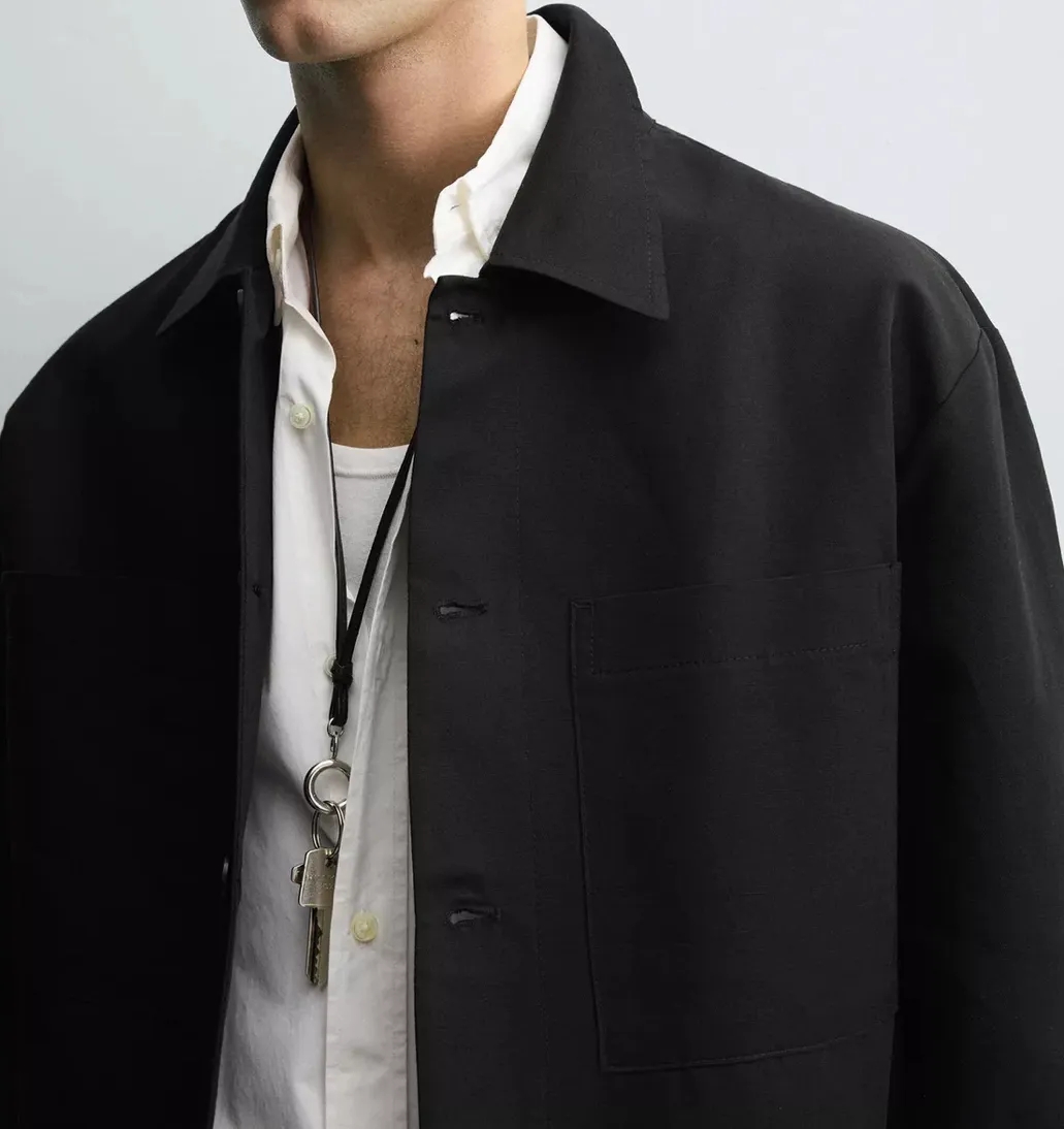 采用斜纹腈棉面料制成的宽松版型衬衫外套