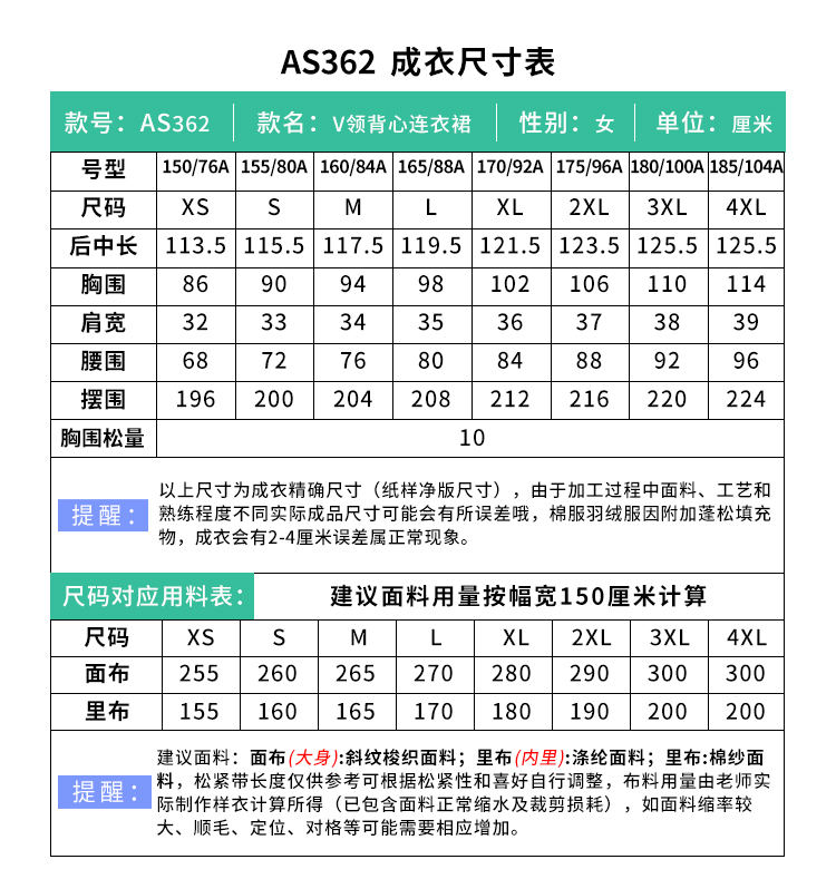裁缝学苑AS362高级感V领背心连衣裙纸样马甲裙女装叠穿显瘦中长款打版裁剪样板